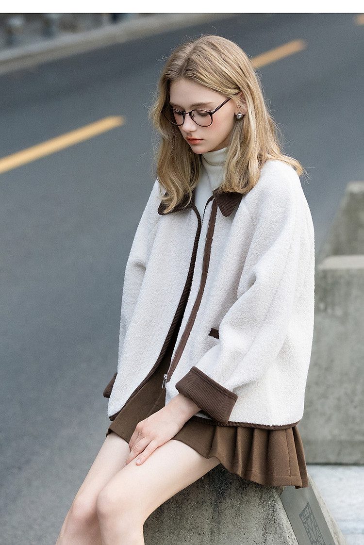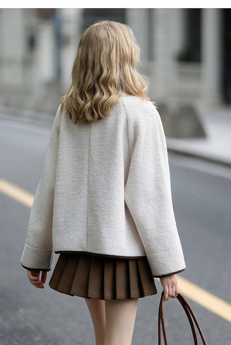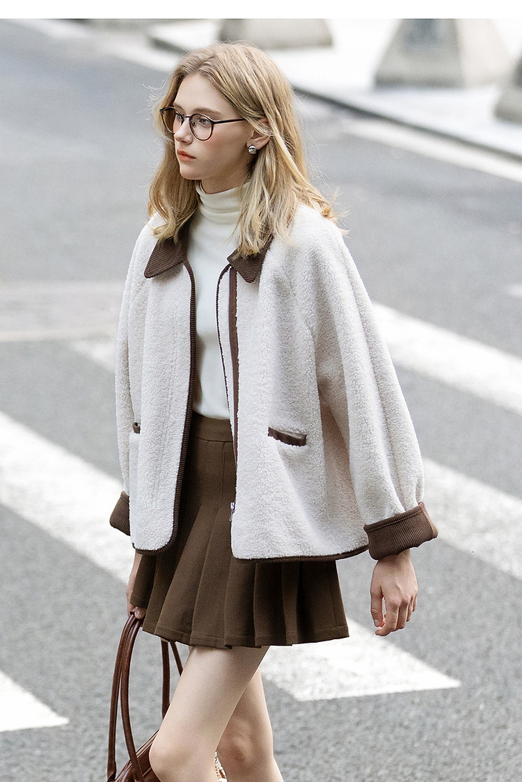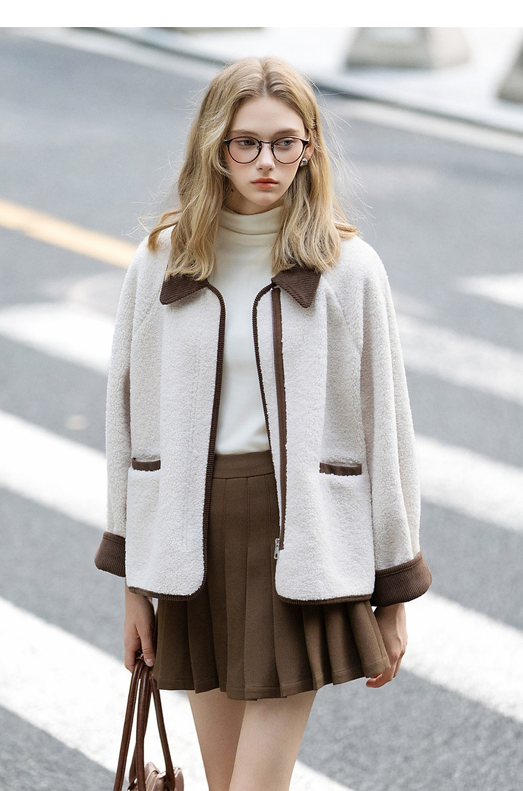 唐狮2025春秋季外套女仿羊羔绒短款上衣灯芯绒小众设计感上衣百搭