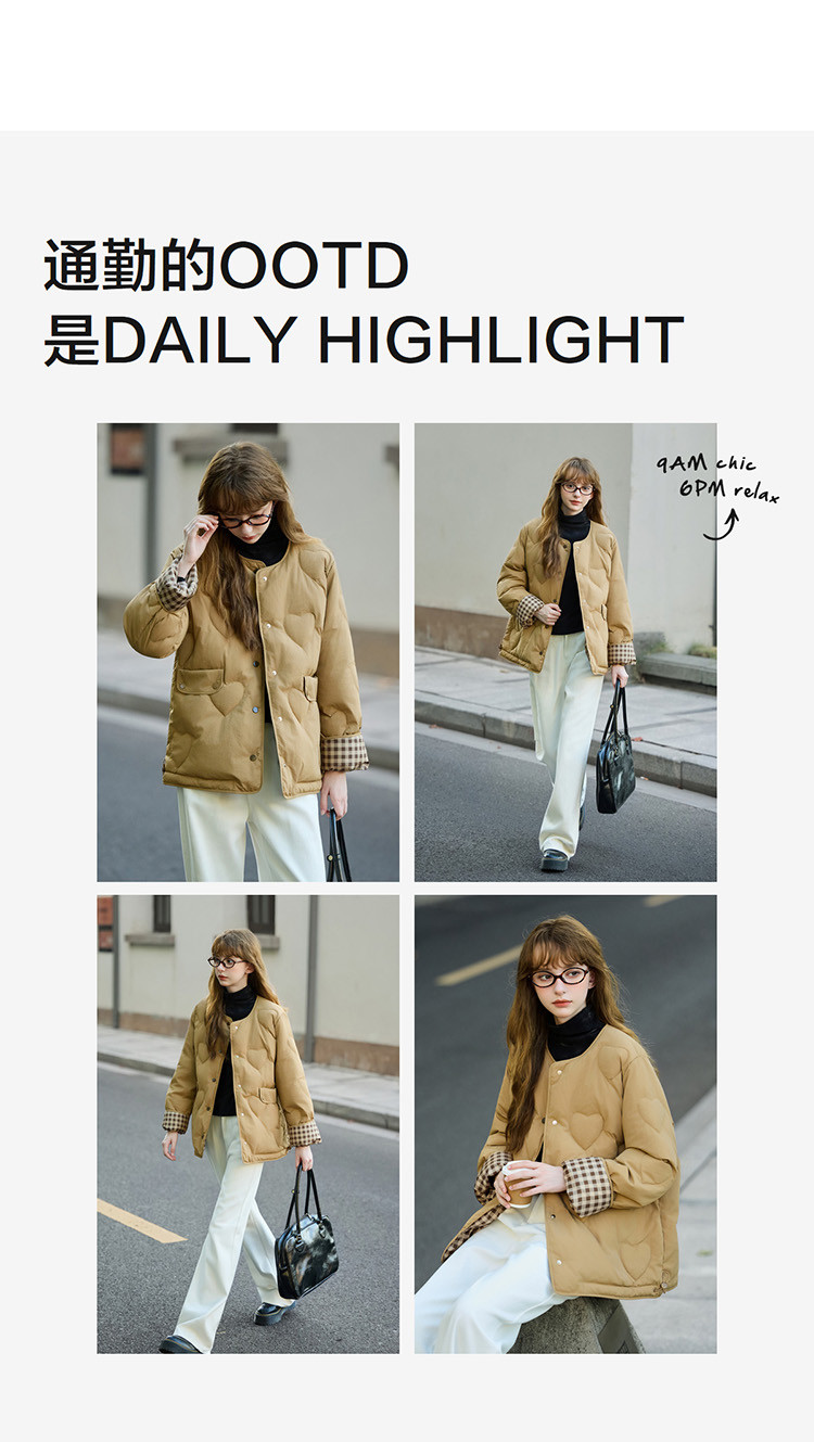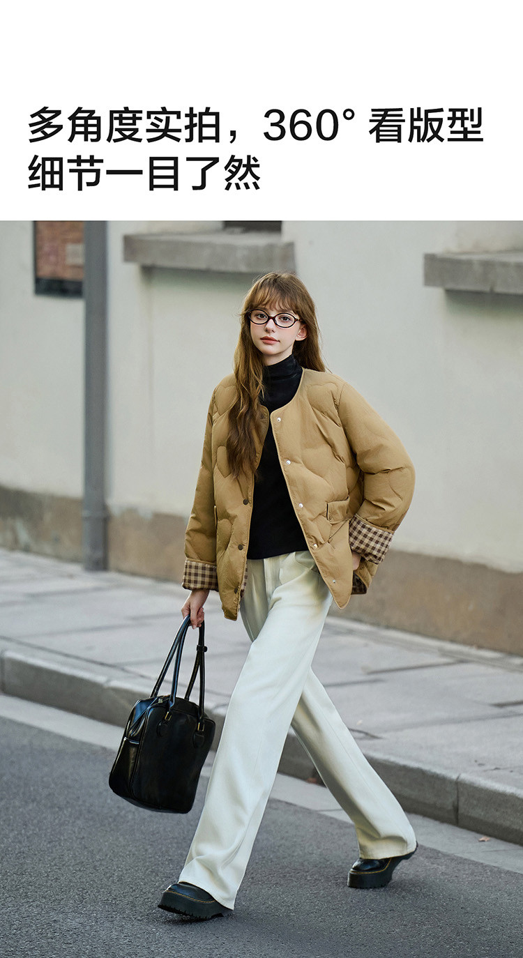 唐狮2026秋冬款女士羽绒服短款羽绒女圆领绗线短款羽绒服高级感