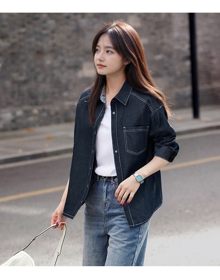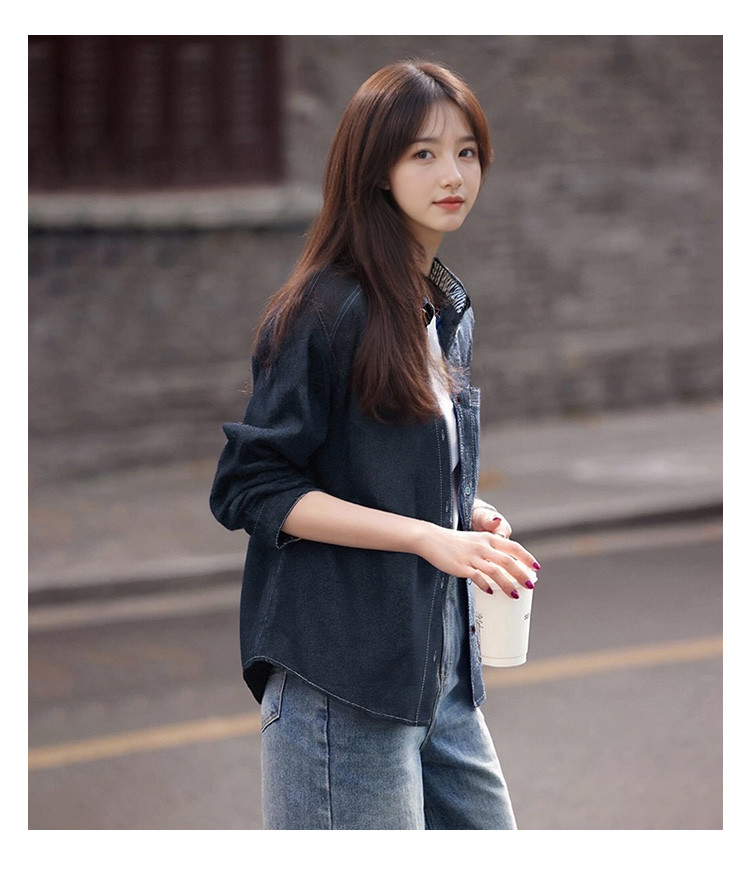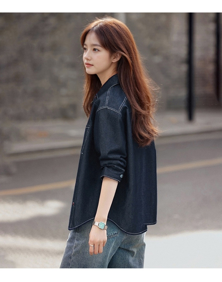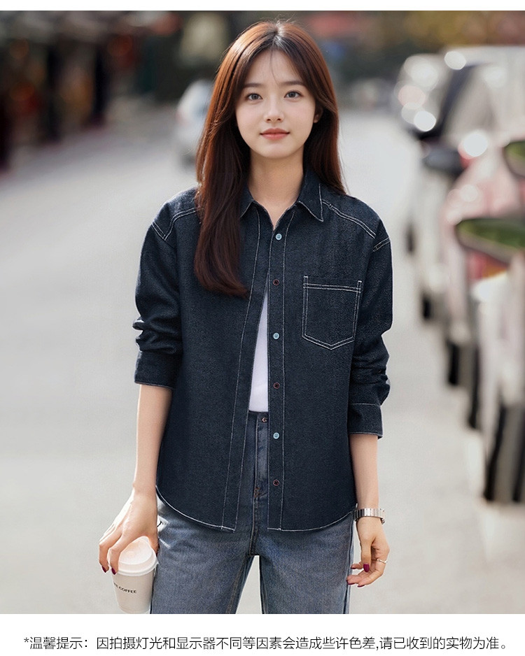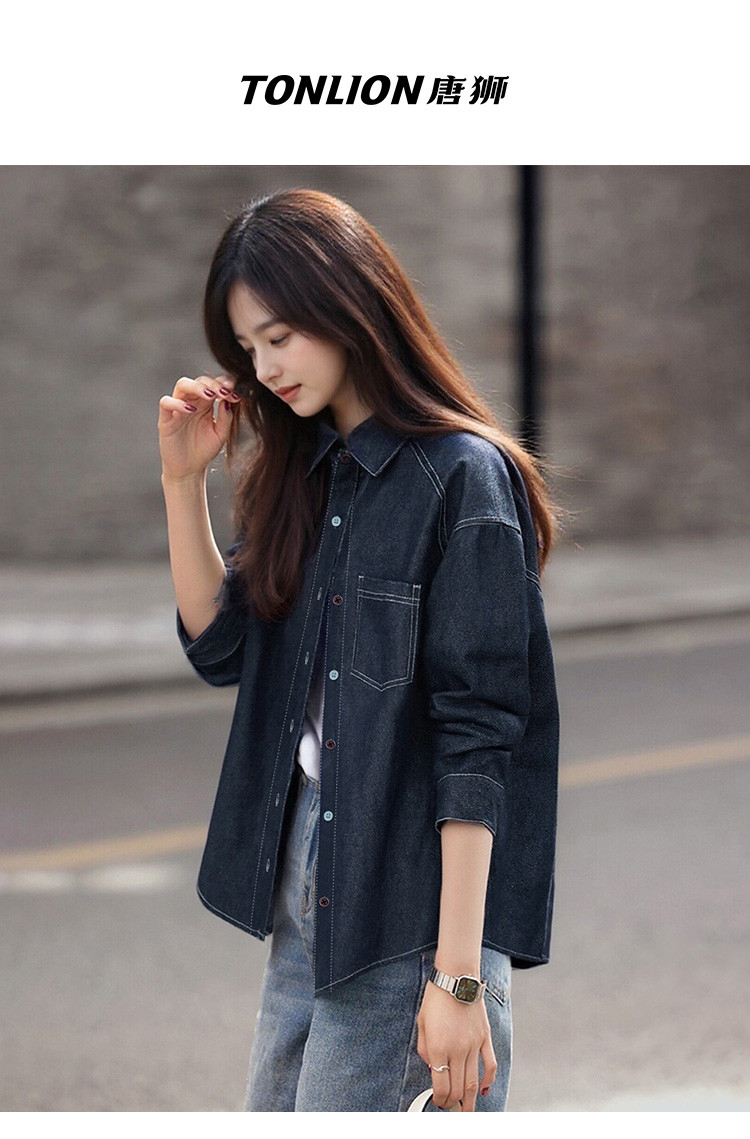 唐狮2026衬衣女春秋长袖港风复古女士休闲明线设计牛仔长袖衬衫