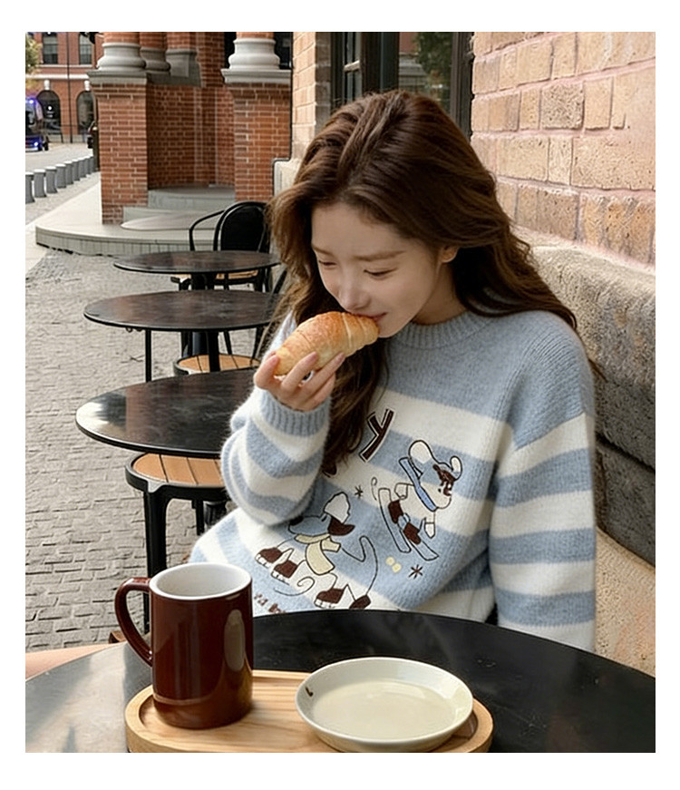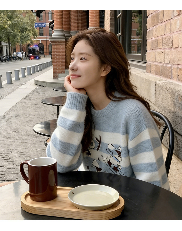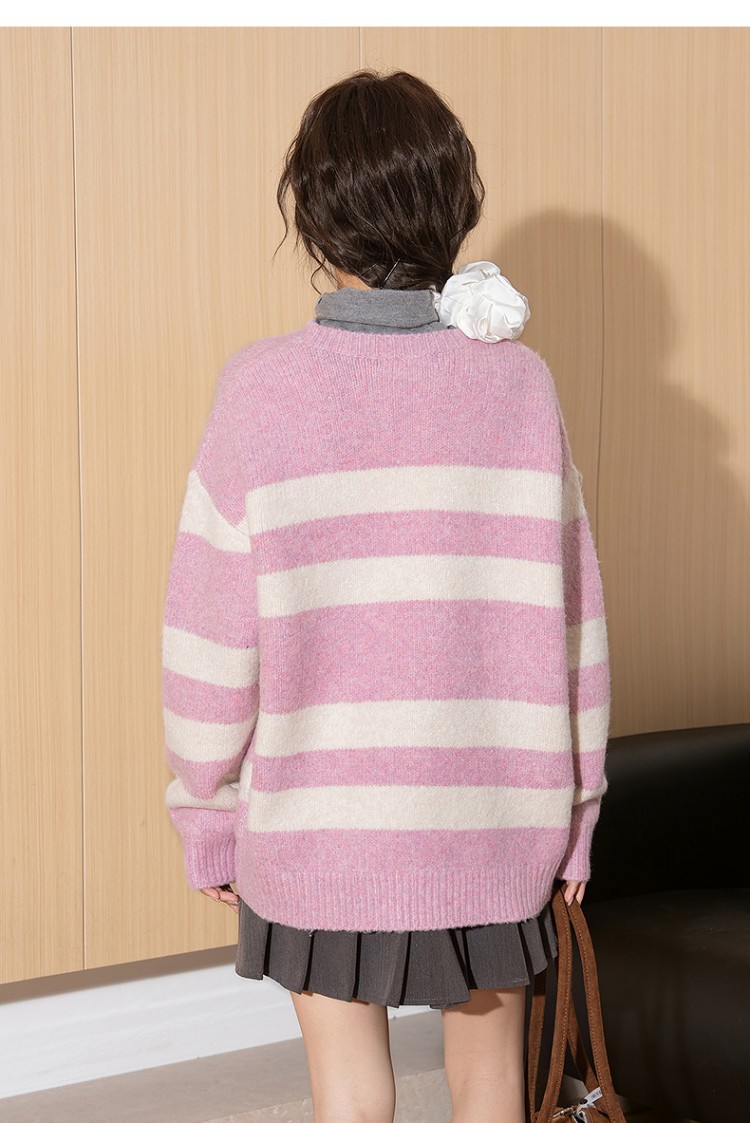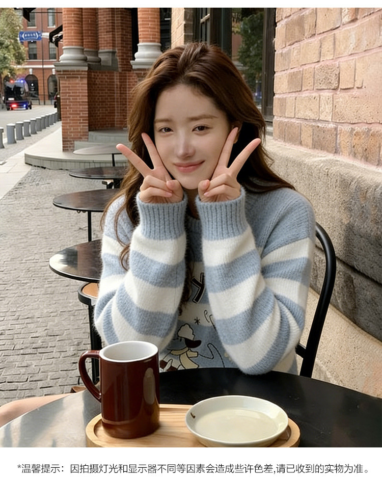 唐狮2026秋季新款毛线衫女圆领条纹套头超好看早秋穿搭甜美毛线衫