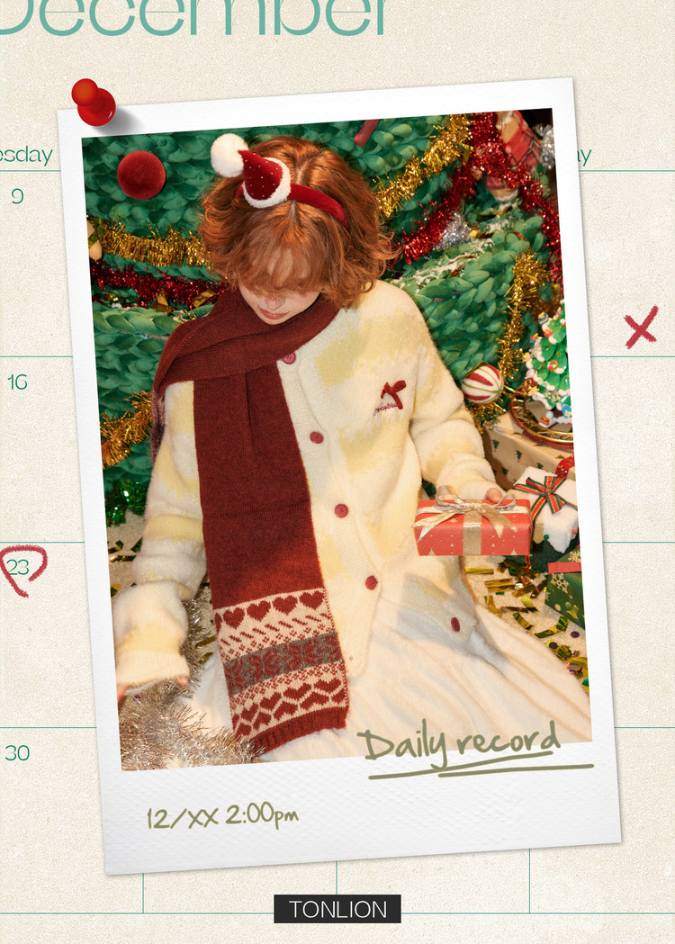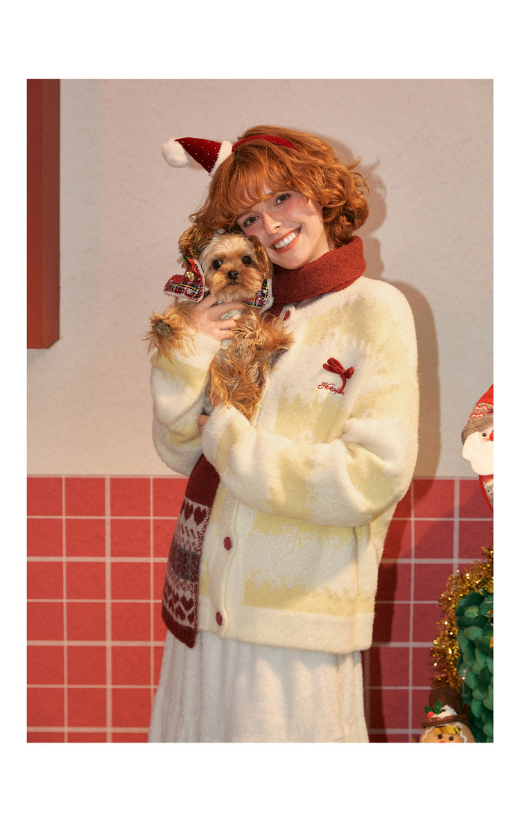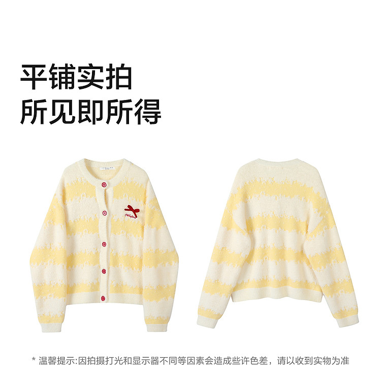 唐狮2026秋冬季女毛衣圆领双色渐变提花可爱蝴蝶结甜美约会穿搭