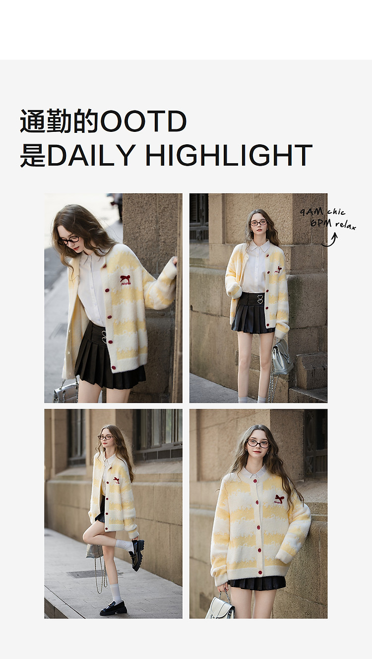 唐狮2026秋季毛衣女外穿翻领条纹衬衫假两件开衫毛线衫设计学院风