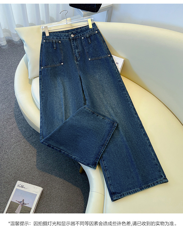 唐狮2026秋冬牛仔长裤女宽松渐变设计感阔腿直筒裤美式复古潮流