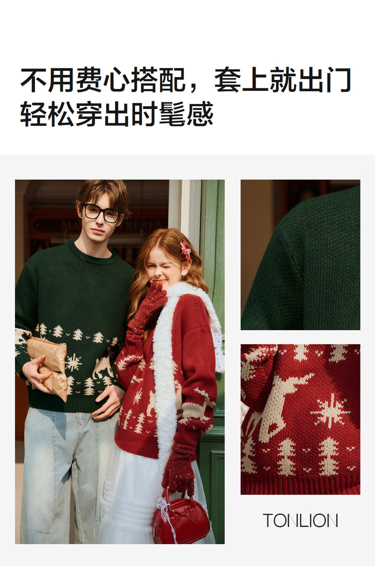 唐狮2026秋冬毛衣情侣款圆领套头费尔岛提花节日氛围毛线衫超好看