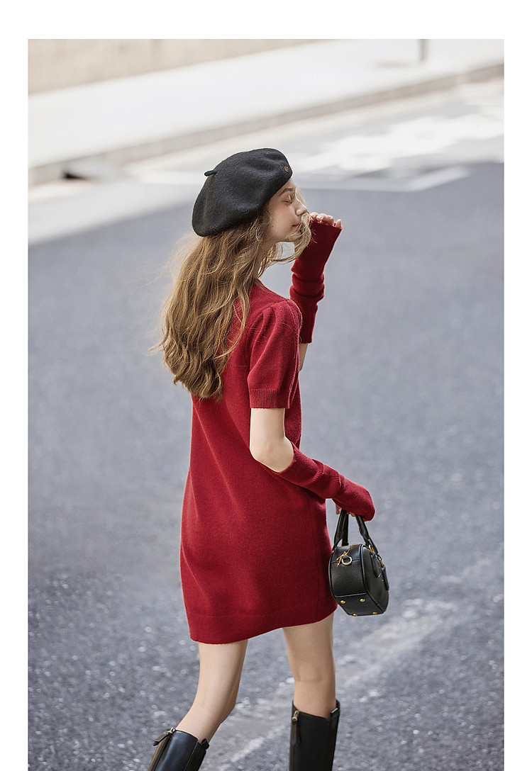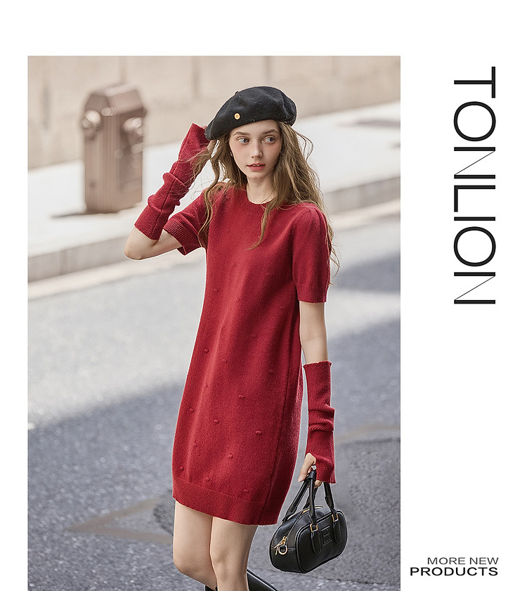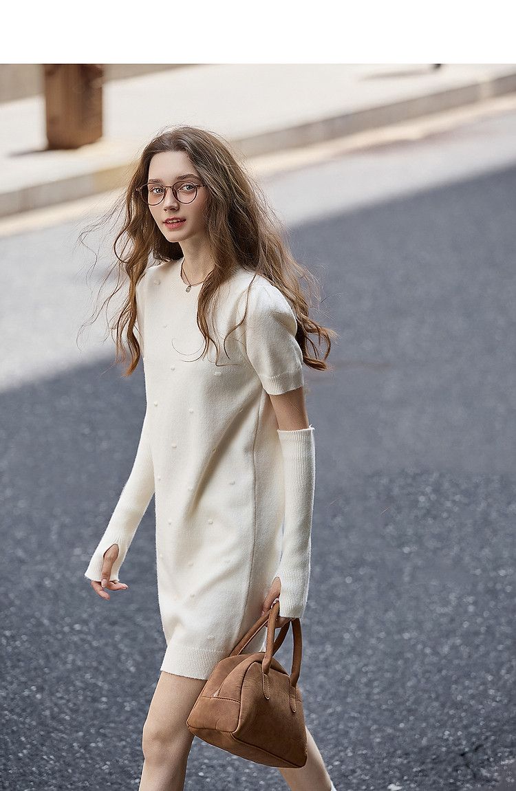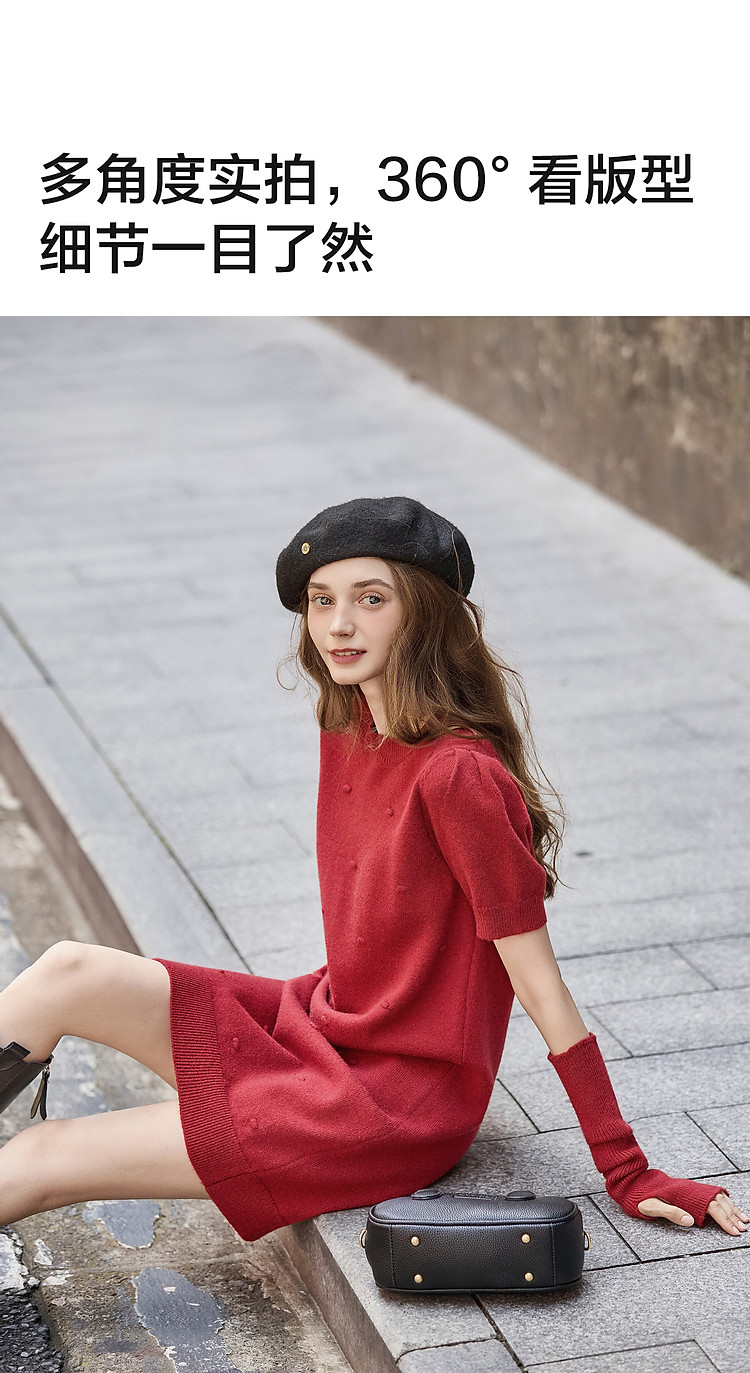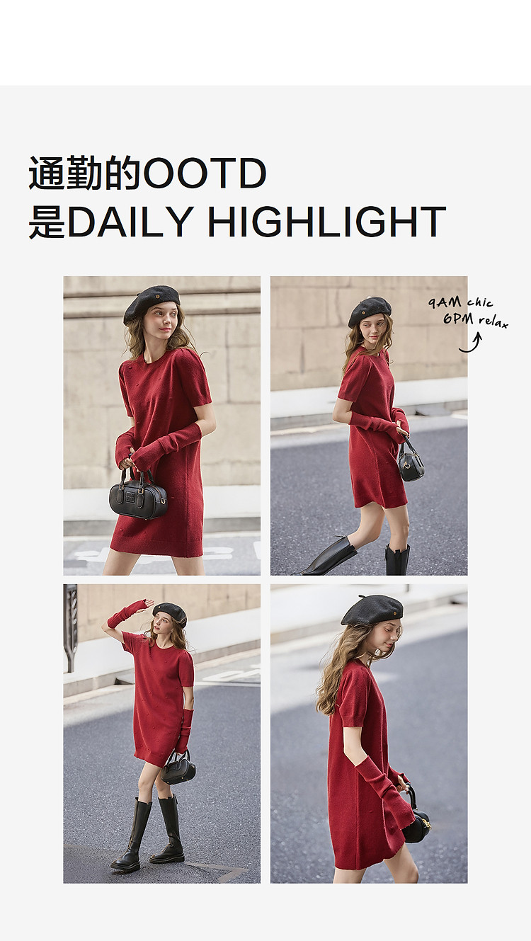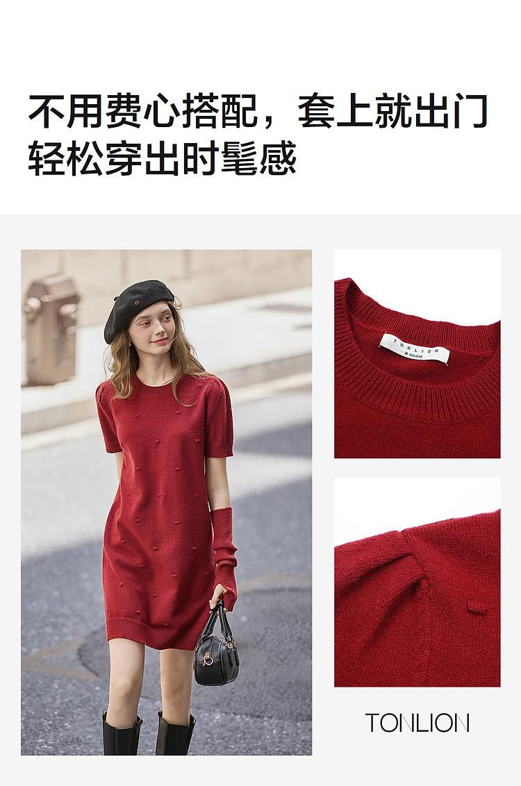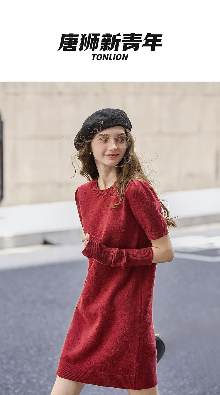 唐狮2026秋冬新款连衣裙女圆领镂空长袖设计气质慵懒针织毛衣裙X2