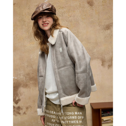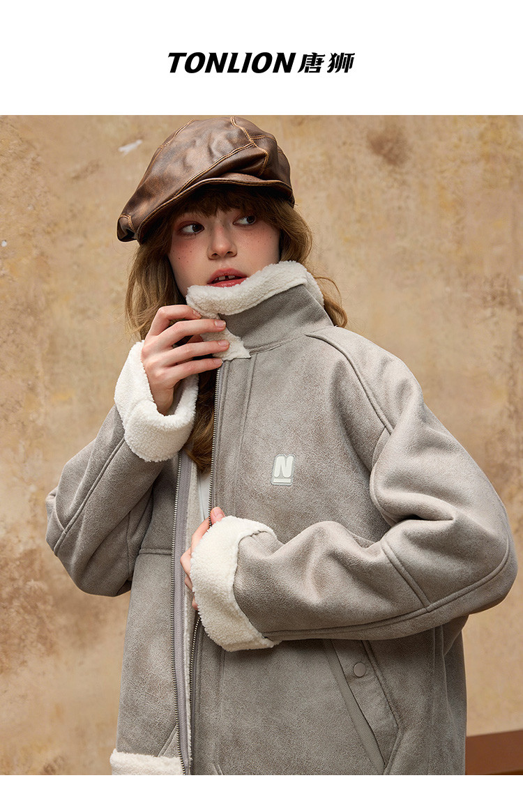 唐狮2026秋冬季情侣仿羔毛领加厚款外套防寒保暖机车风潮流百搭
