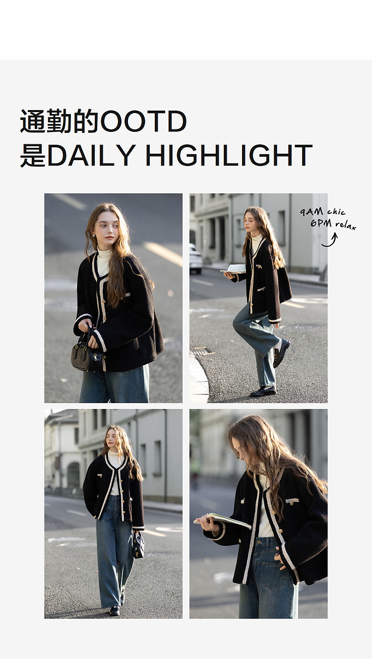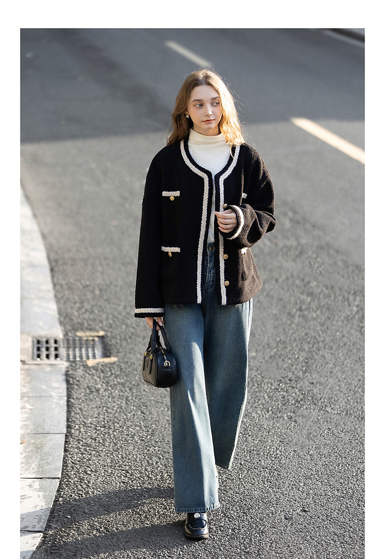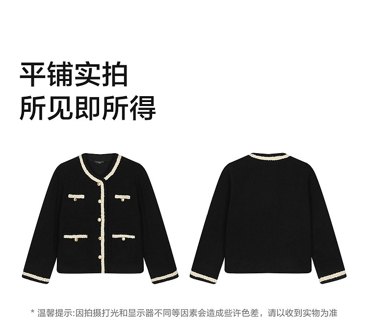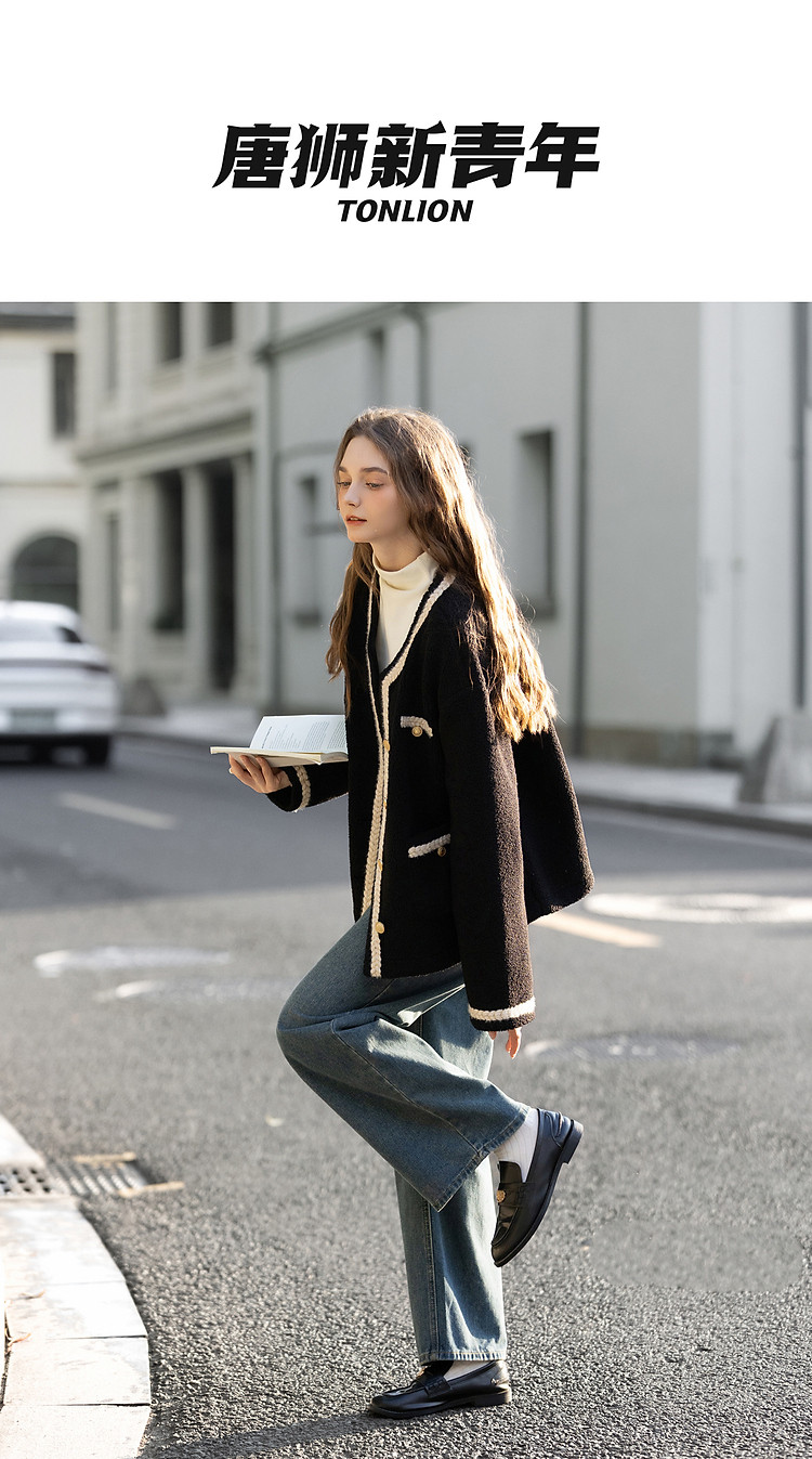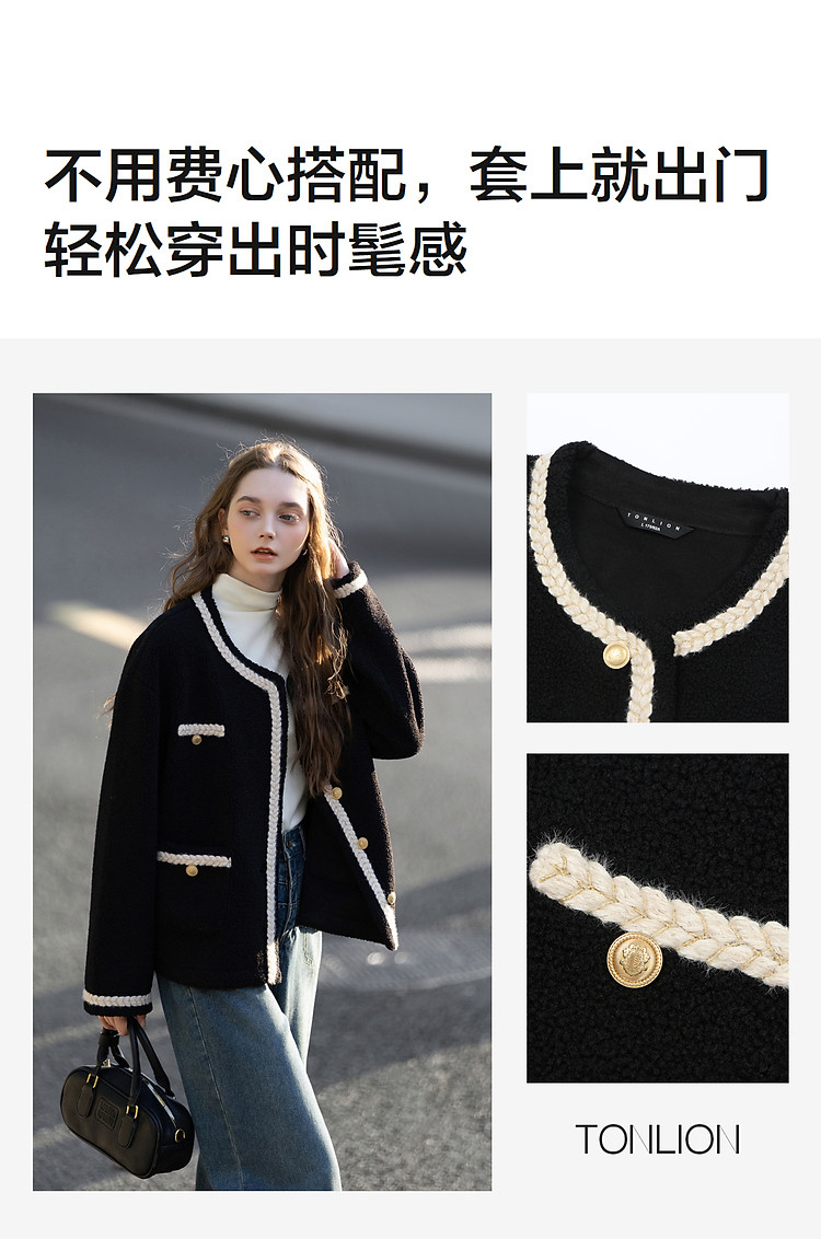 唐狮2026秋冬外套女高级轻奢女圆领撞色小香风皮毛一体短款外套