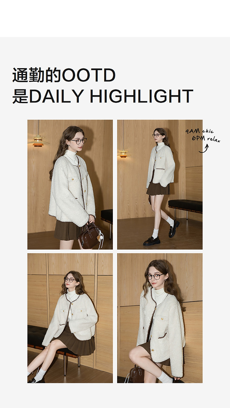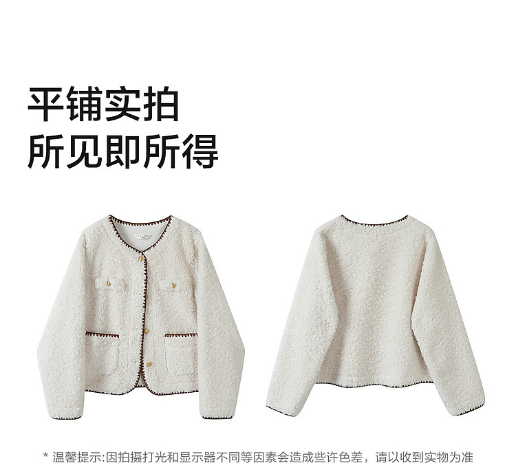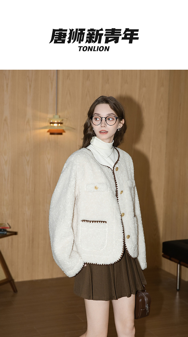 唐狮2026秋冬季短款加厚外套女圆领小香风仿羊羔毛超好看气质淑女