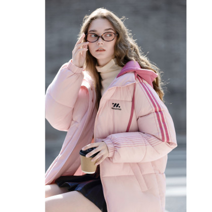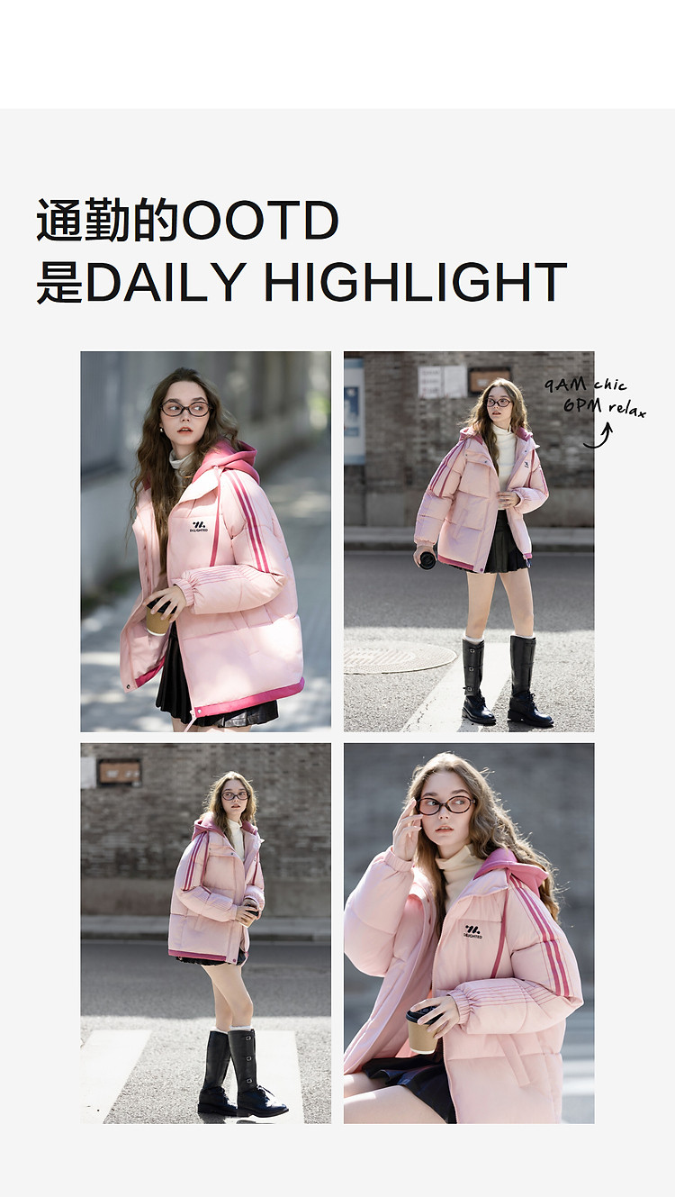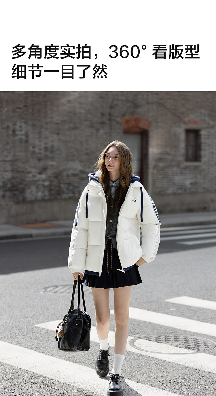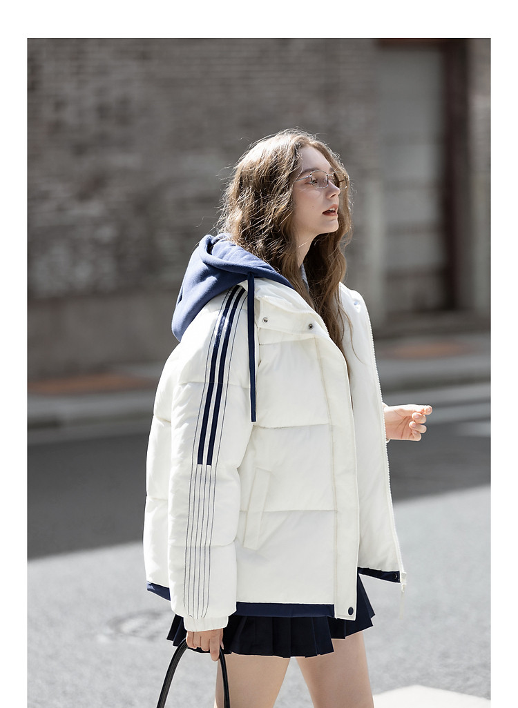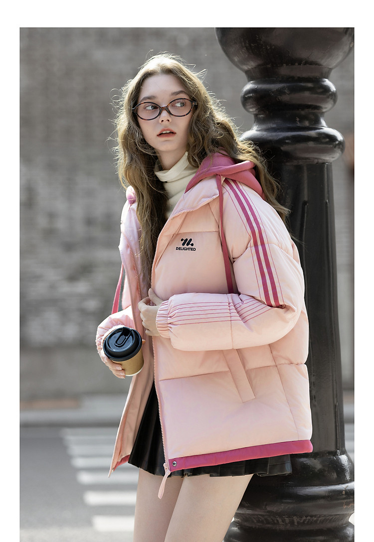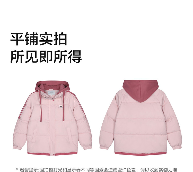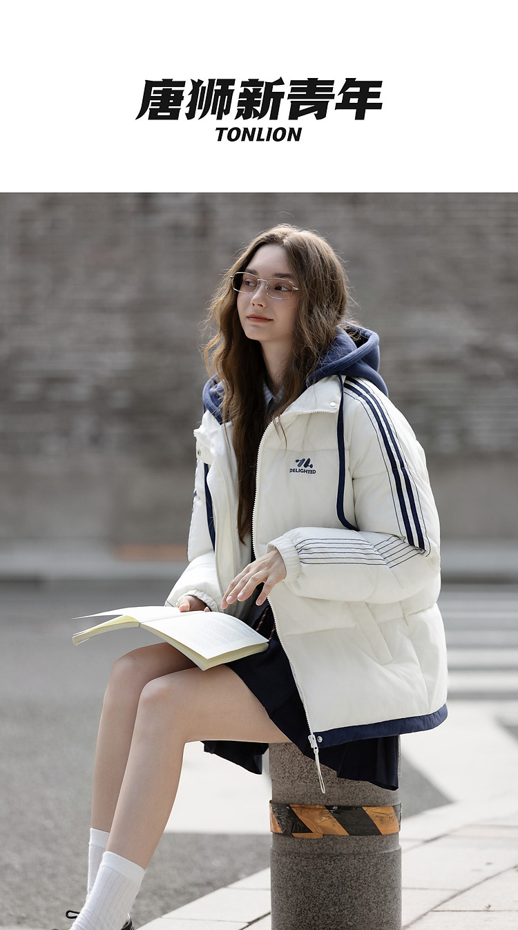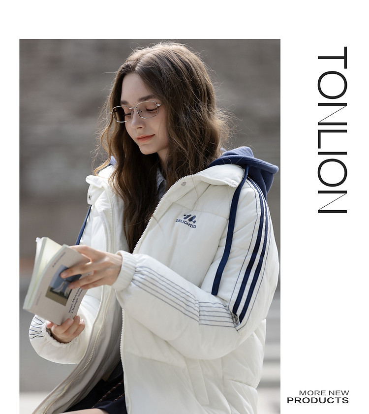 唐狮2026秋冬季棉衣女连帽假两件运动风撞色拼接短款简约百搭时尚