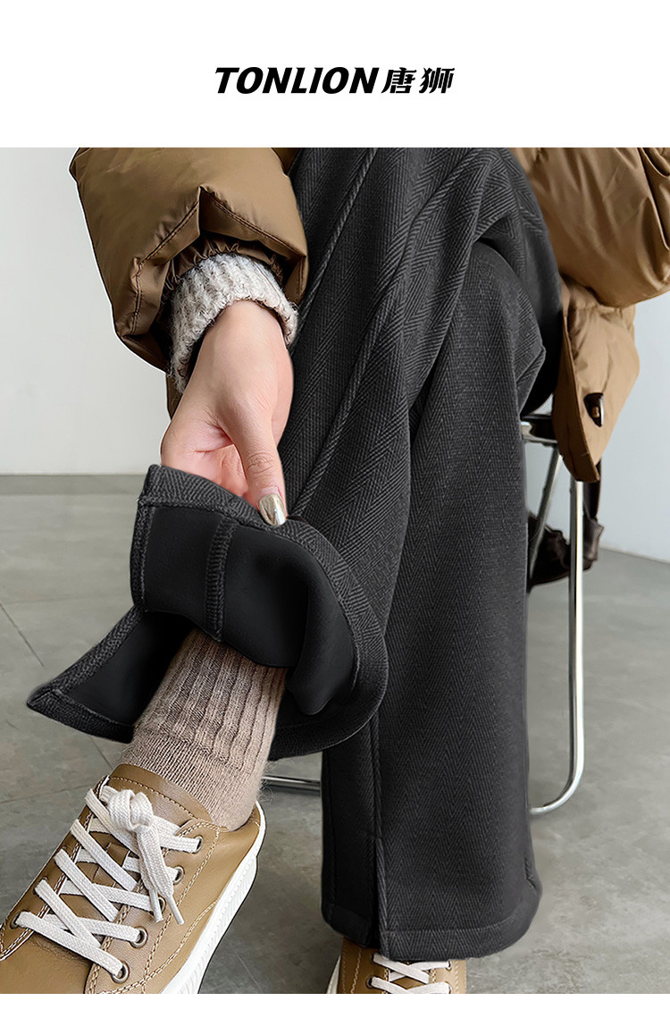 唐狮2026秋冬休闲长裤加绒款宽松毛呢裤高级感小个子女裤保暖