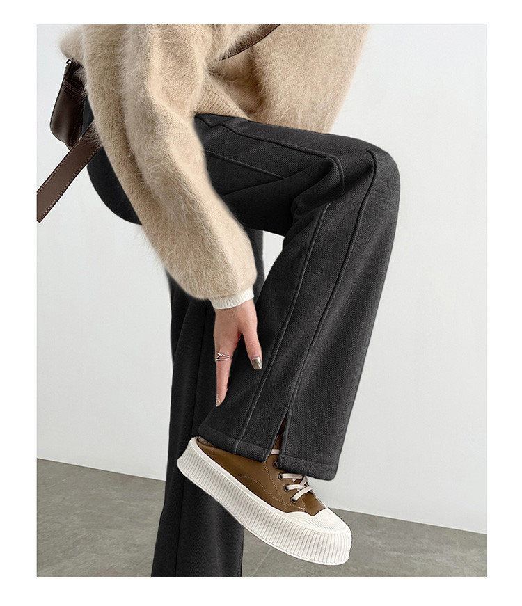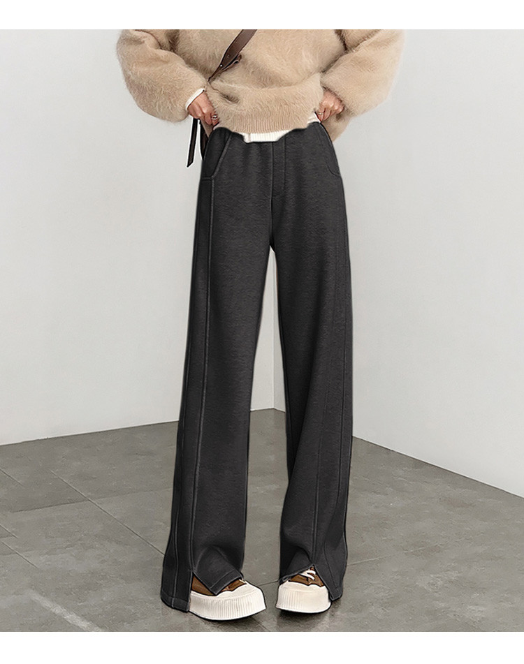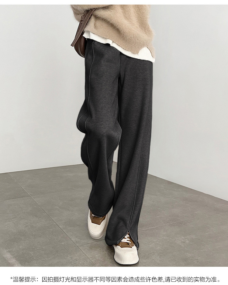 唐狮休闲裤2024秋冬新款加厚摇粒绒阔腿裤女黑色拼接设计感裤子kz