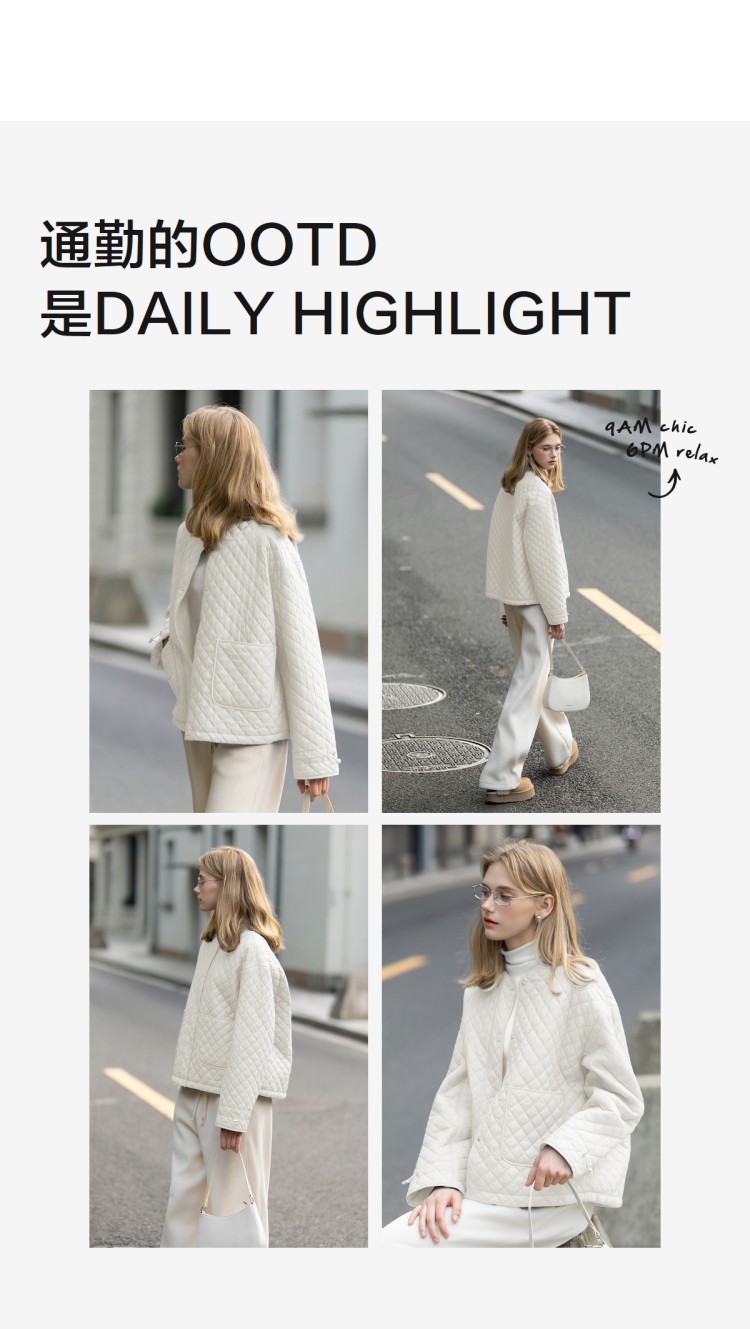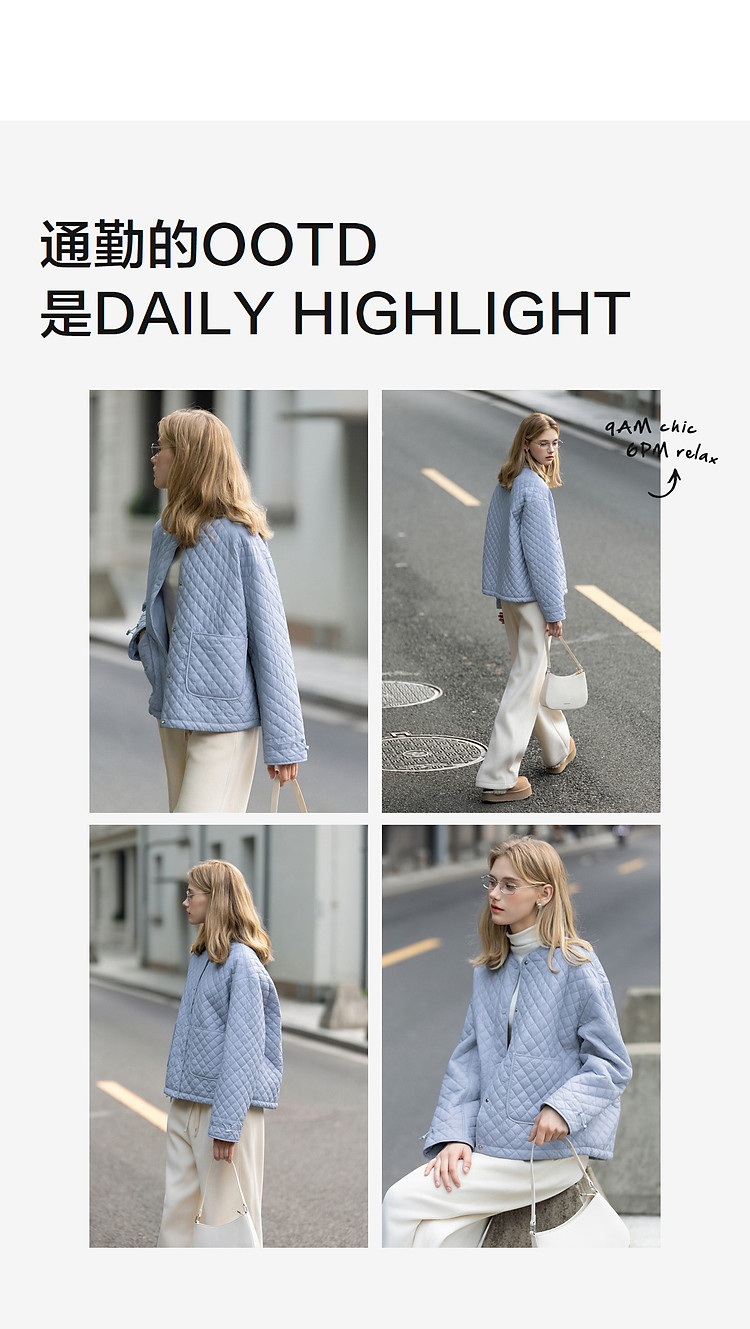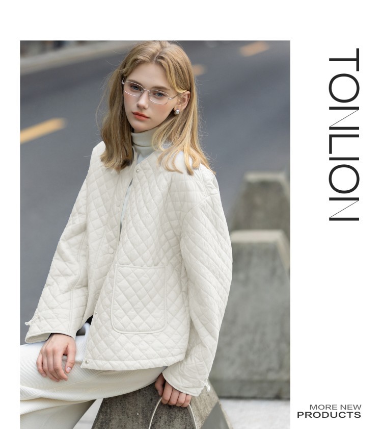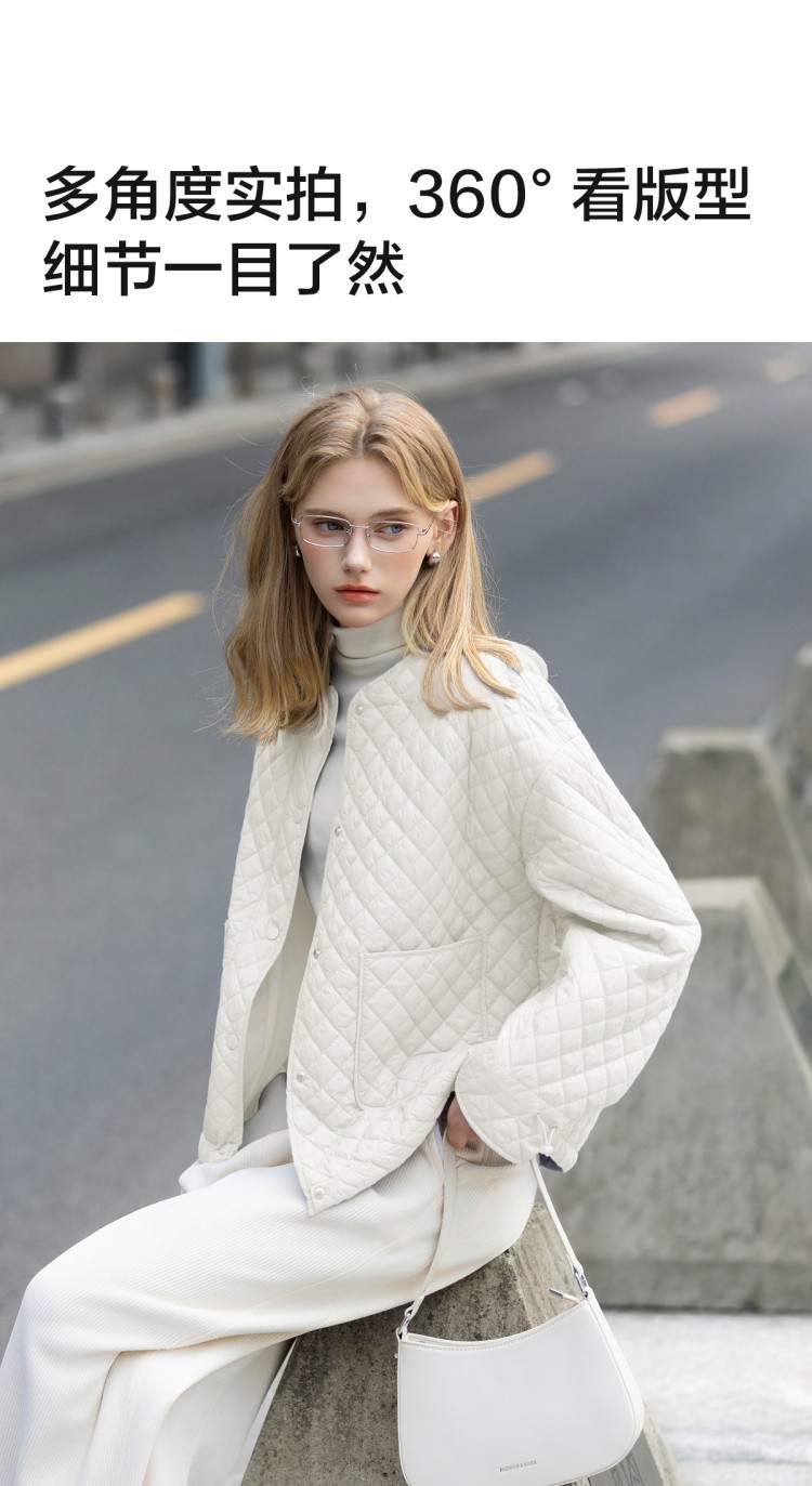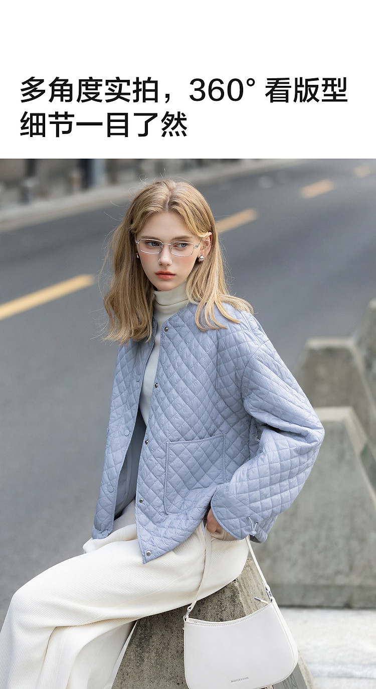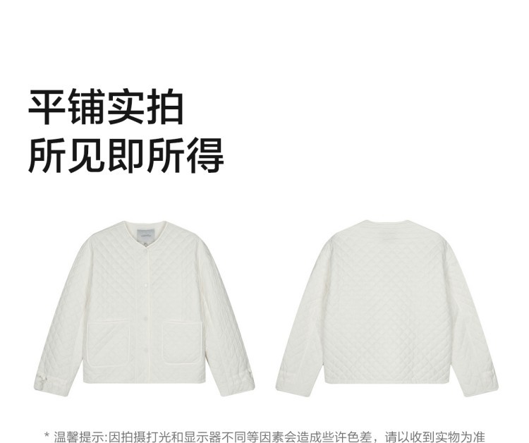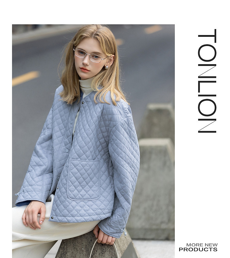 唐狮2026秋冬季女圆领短款轻薄棉衣内胆简约风菱格设计感小众独特