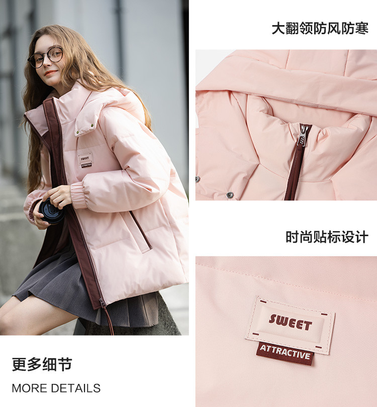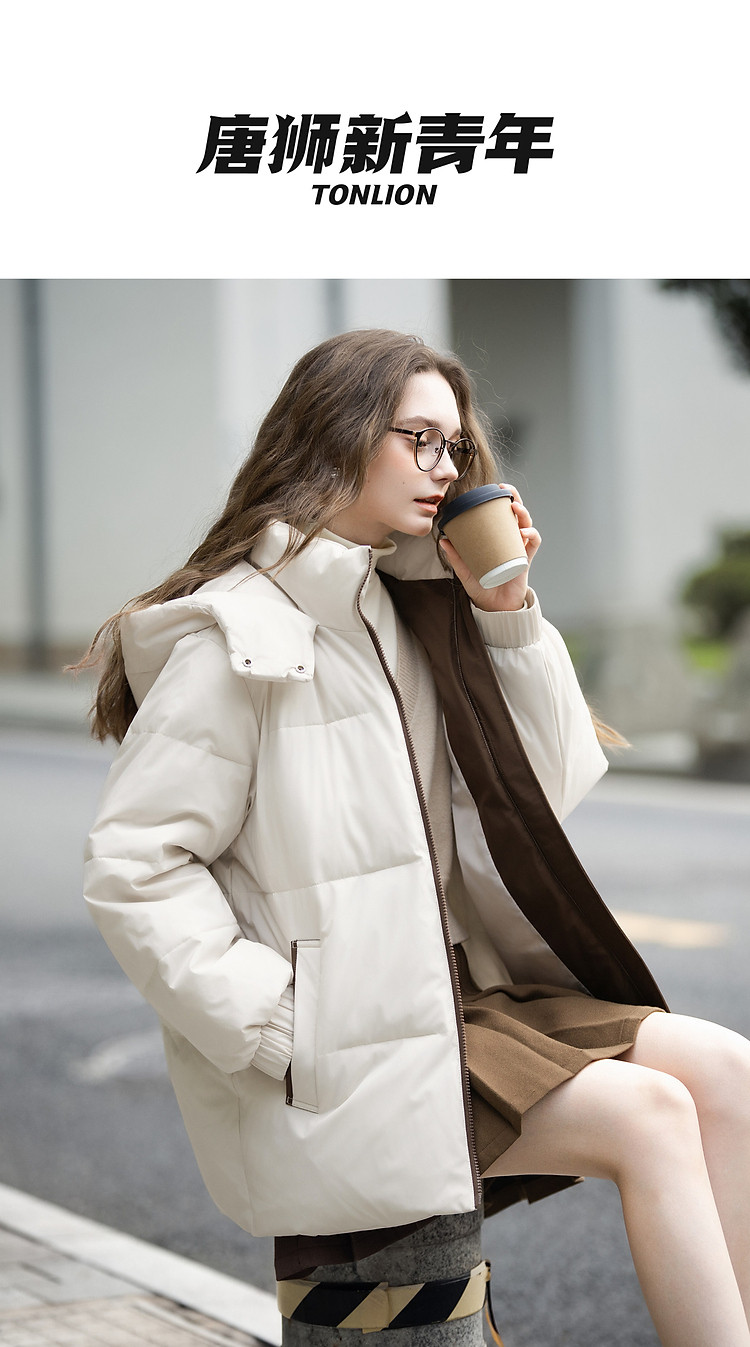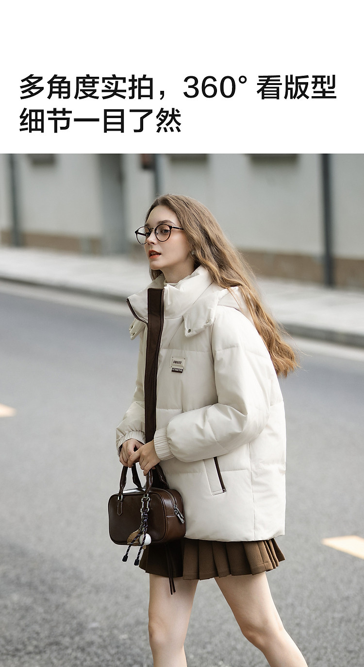 唐狮2025秋冬季短款棉衣女撞色简约风百搭时尚保暖防寒冬季穿搭