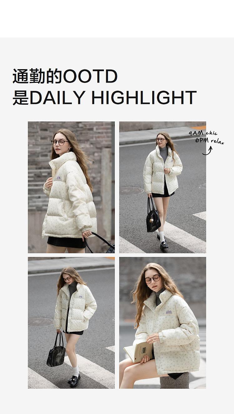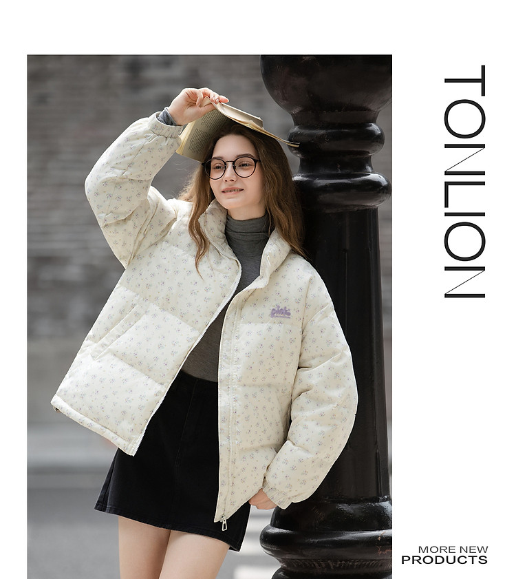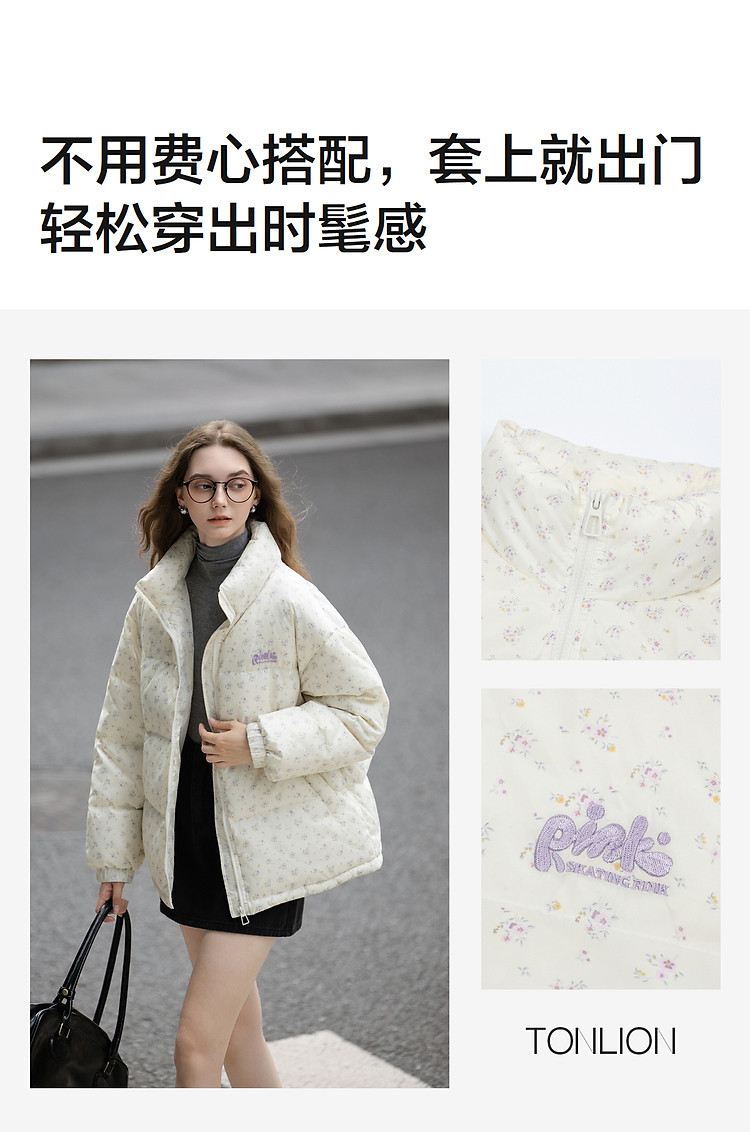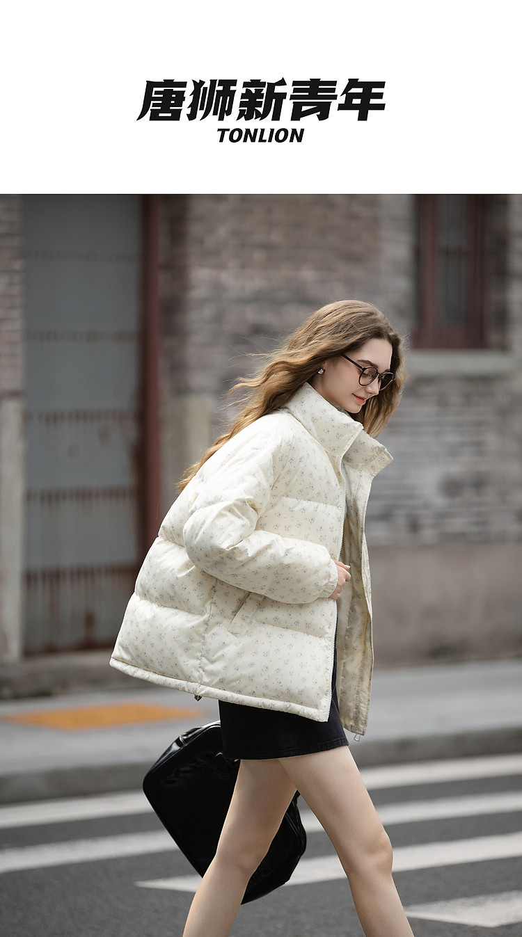 唐狮2026秋冬款女羽绒女立领满印前胸绣花短款羽绒服高级感减龄