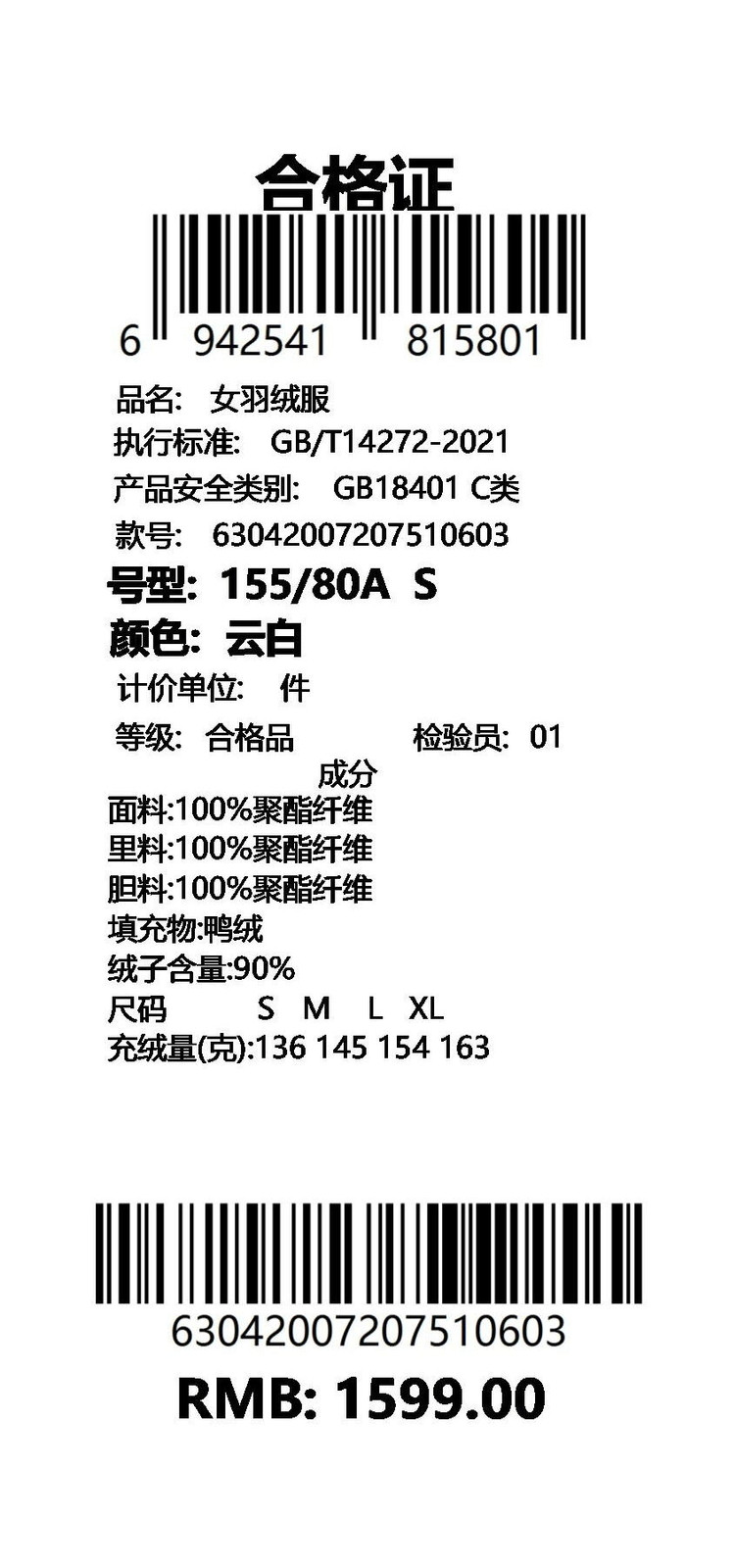 女童羽绒服