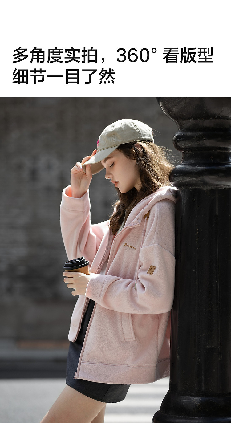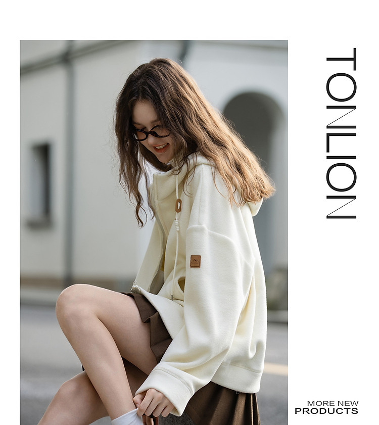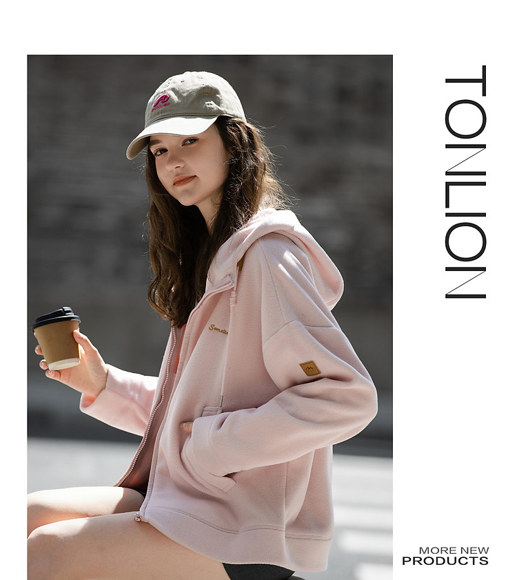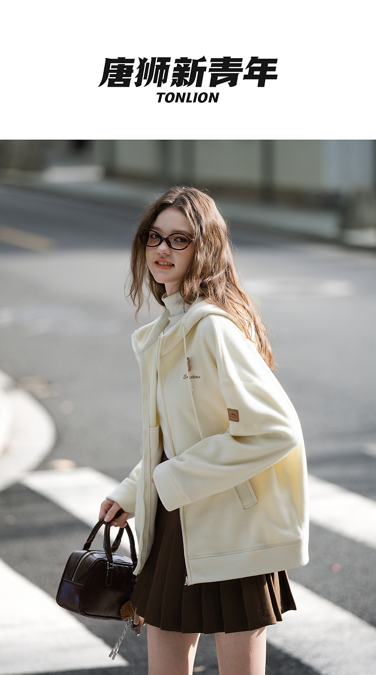唐狮2026秋冬季外套女连帽净色简约风摇粒绒短款保暖外套设计百搭
