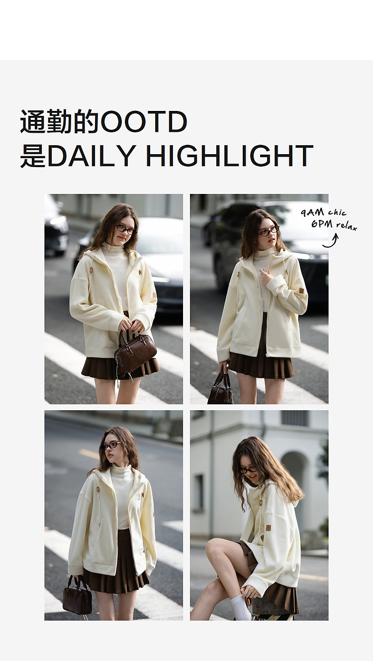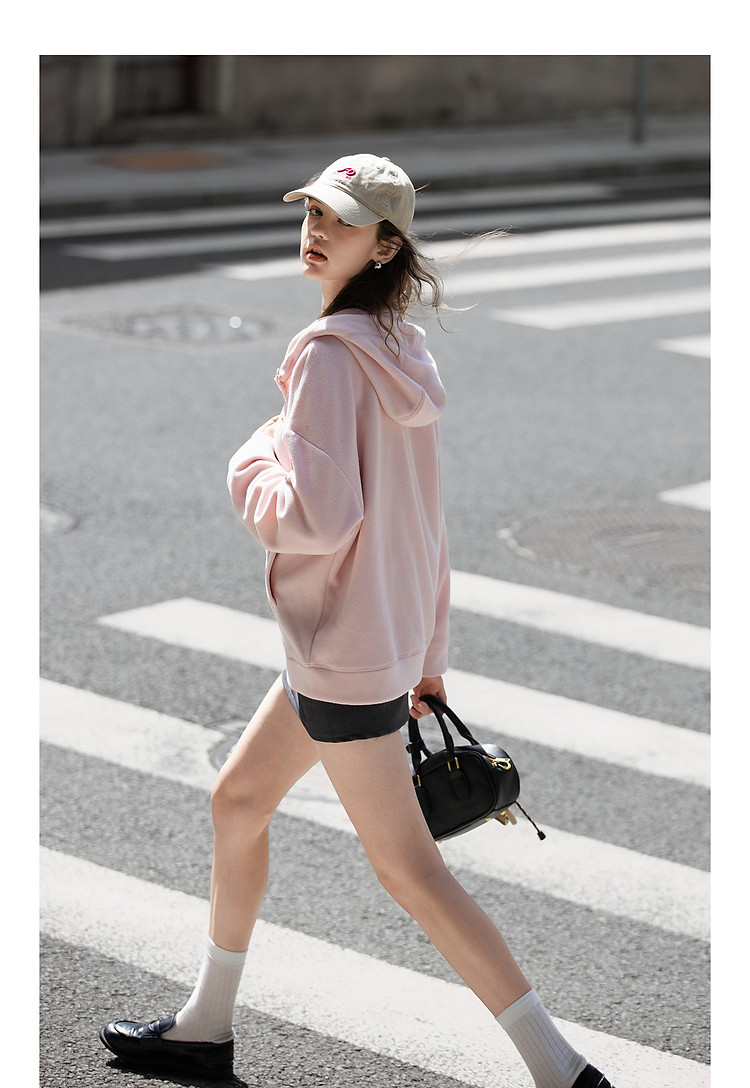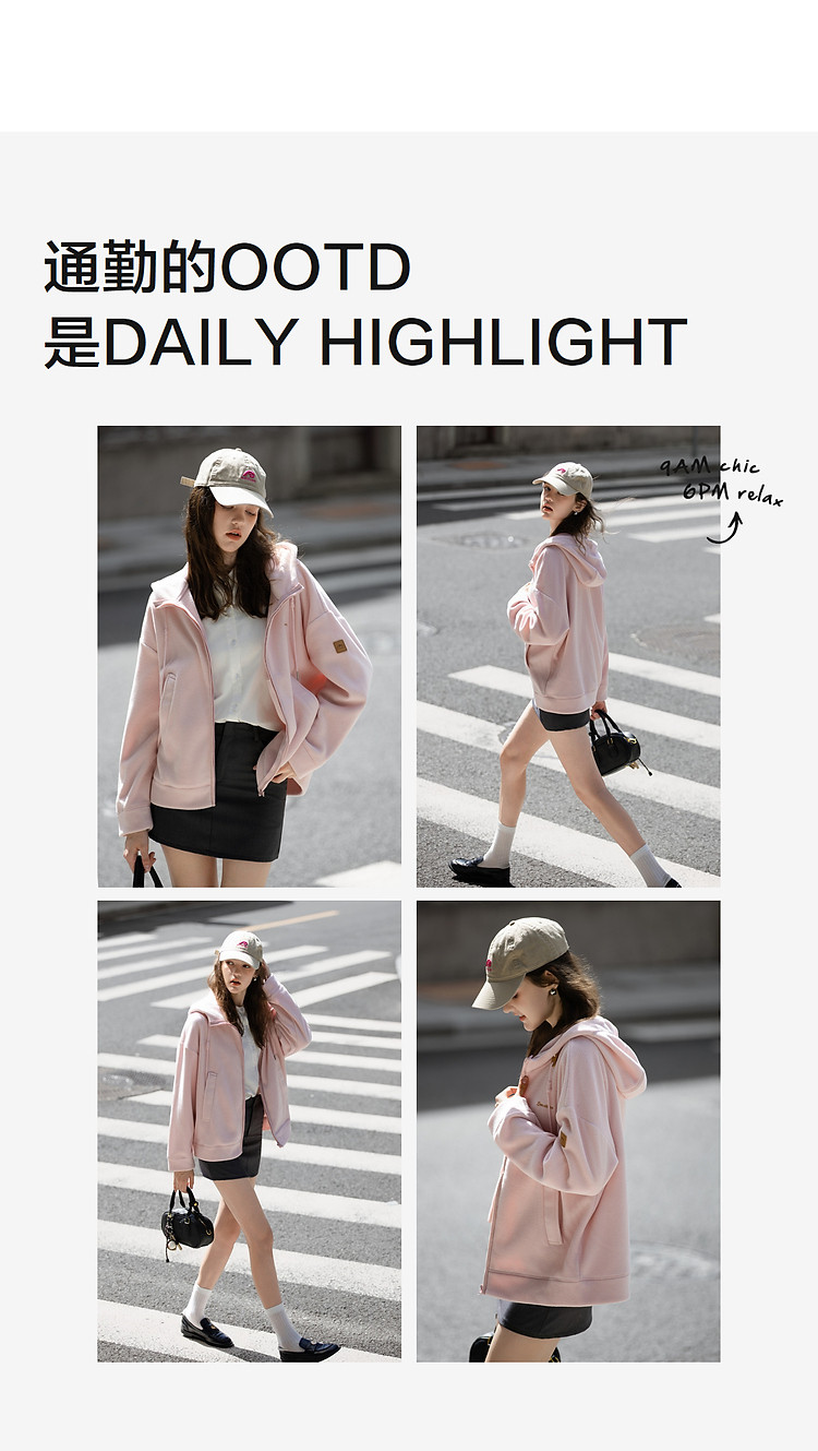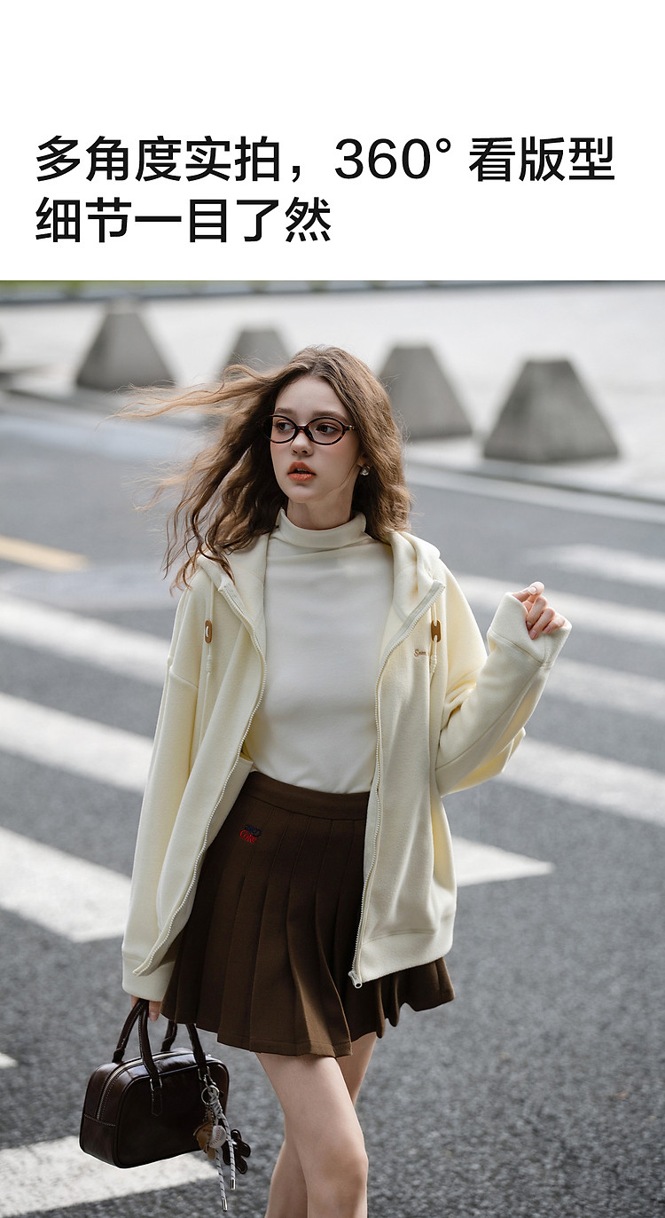 唐狮2026秋冬季外套女连帽净色简约风摇粒绒短款保暖外套设计百搭