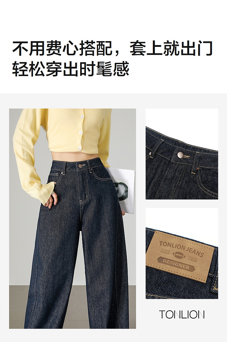 唐狮2026秋冬季女宽松牛仔长裤窄版直筒裤哈伦裤高级感春秋百搭