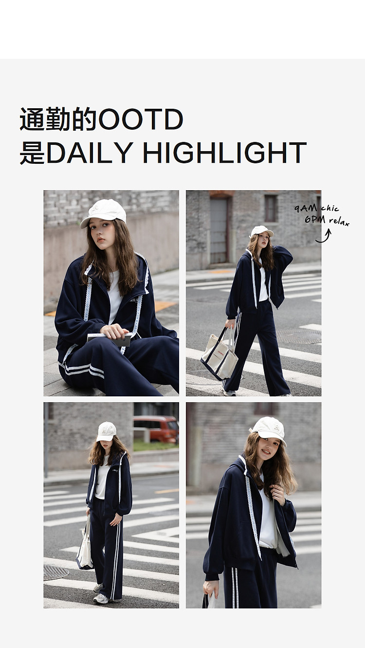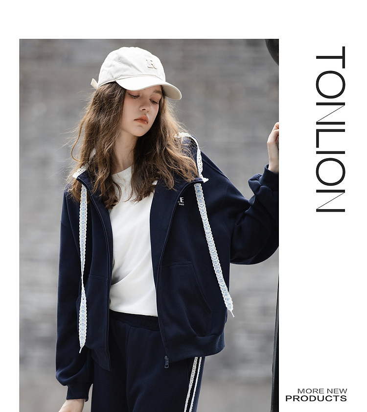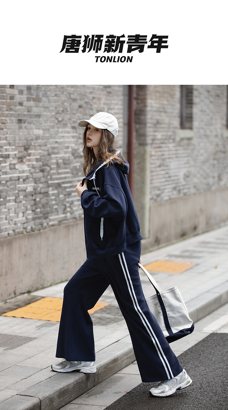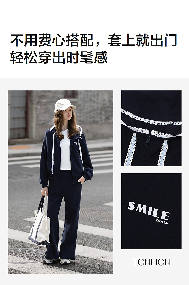 唐狮2026秋冬季套装女开衫连帽卫衣蕾丝设计感独特小众卫裤子套装