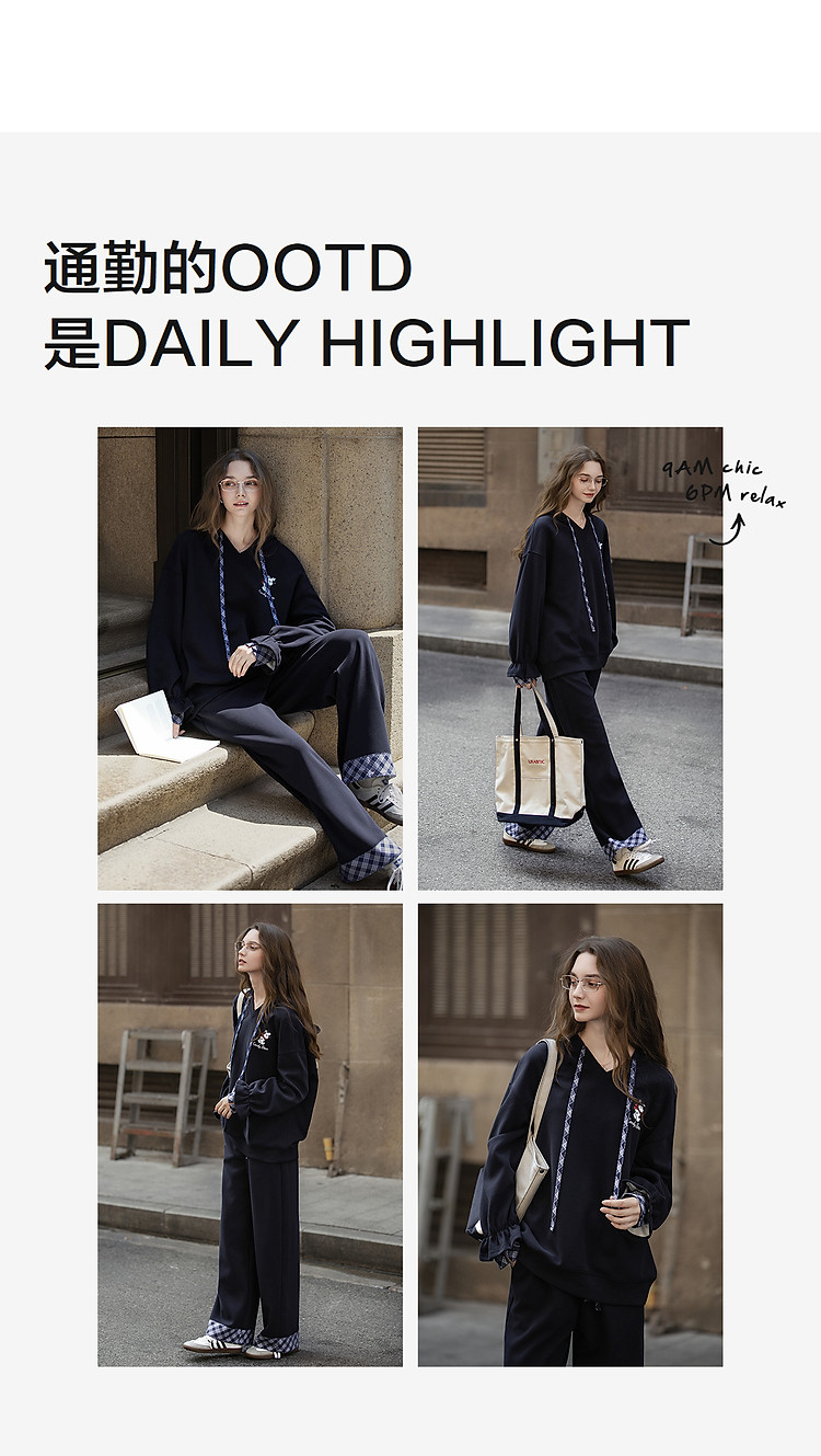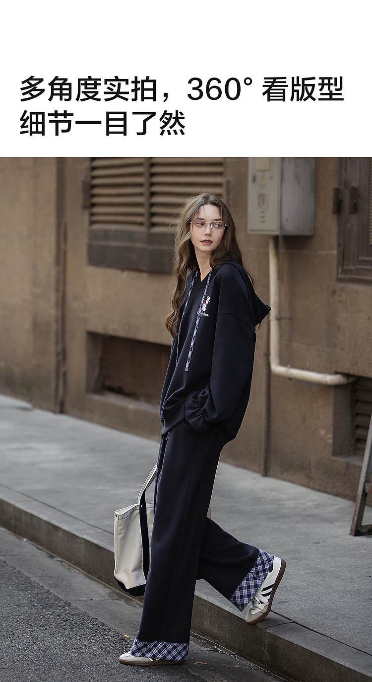 唐狮2026秋冬季女套装两件套卫衣女连帽v领印花裤子套装超好看