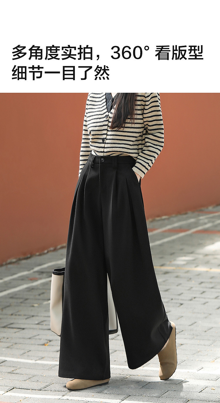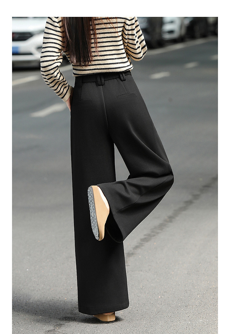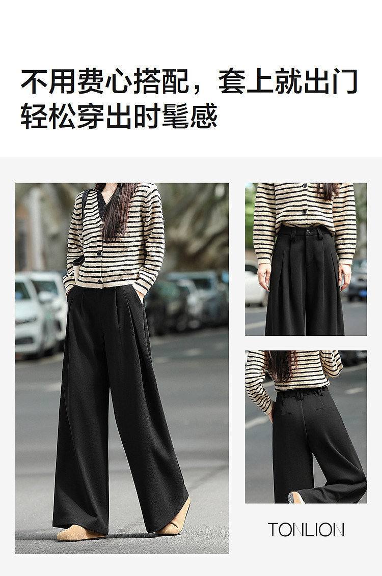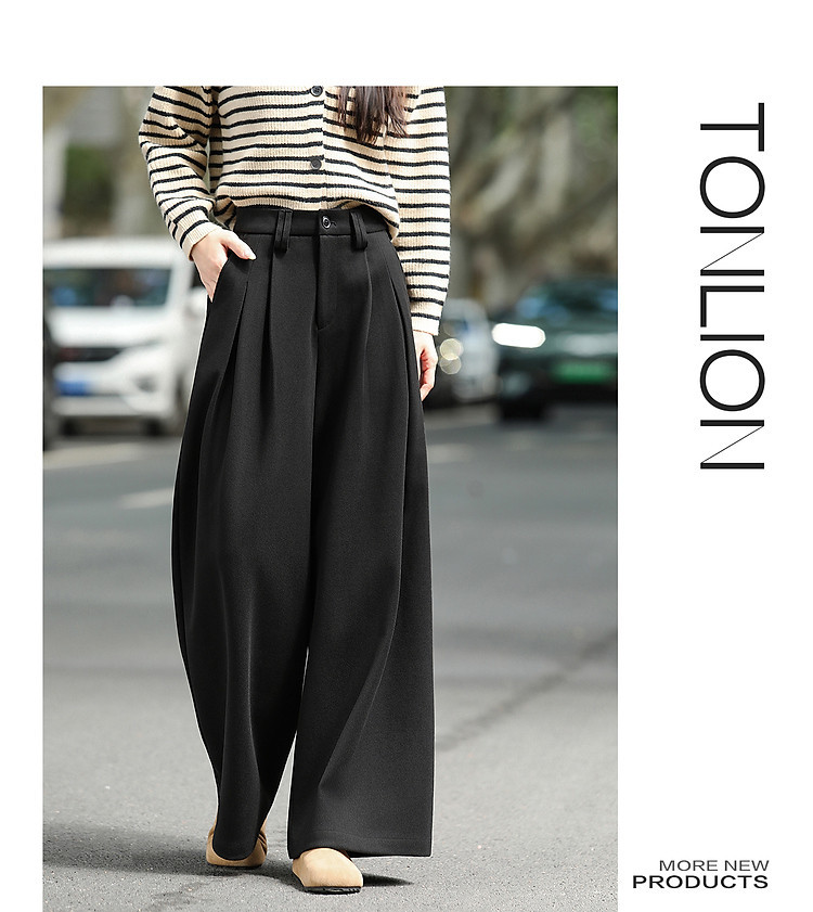 唐狮2026秋冬季女毛呢宽松休闲长裤直筒阔腿裤百搭潮流长裤女简约