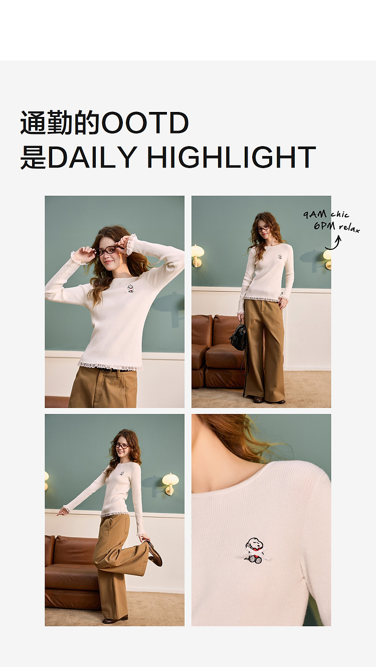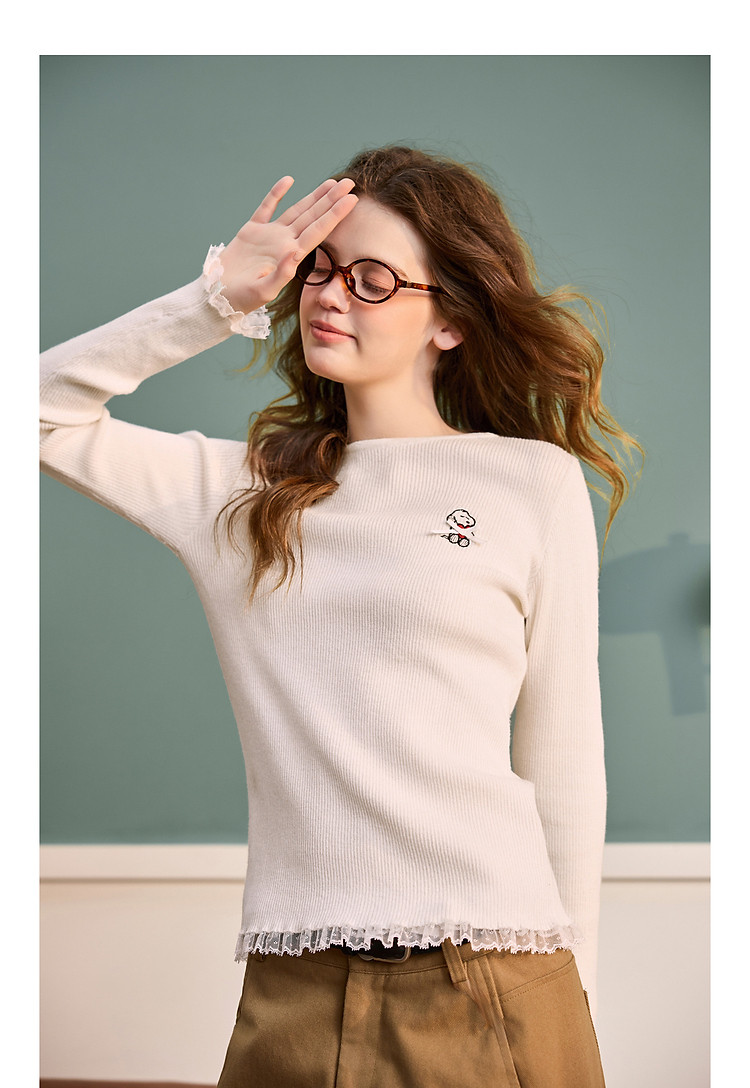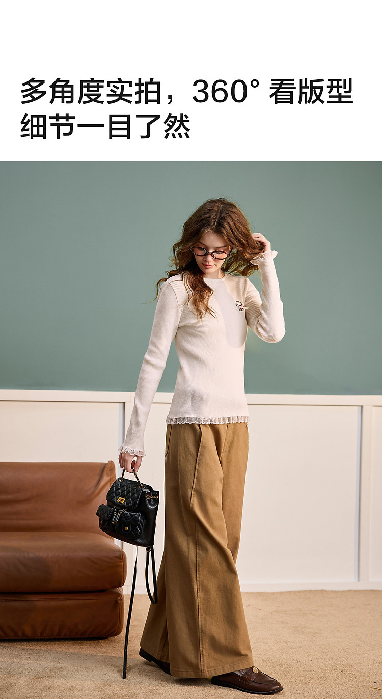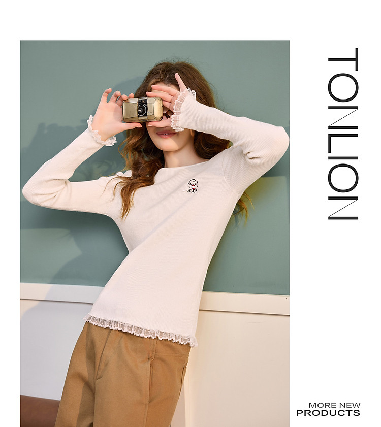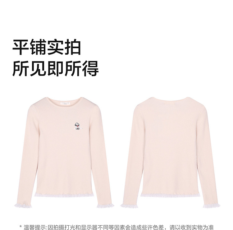 【史努比联名款】唐狮2025秋冬季打底衫女圆领蕾丝花边蝴蝶结打底