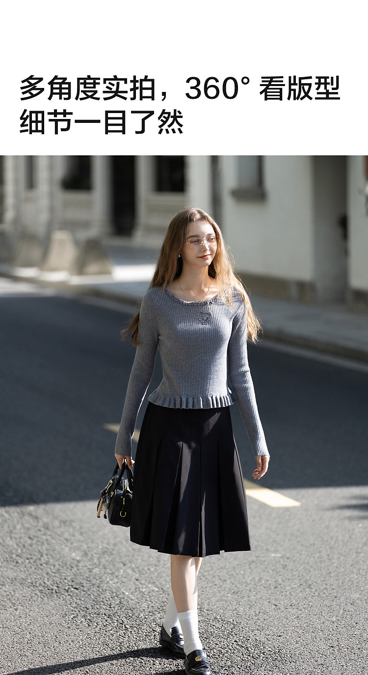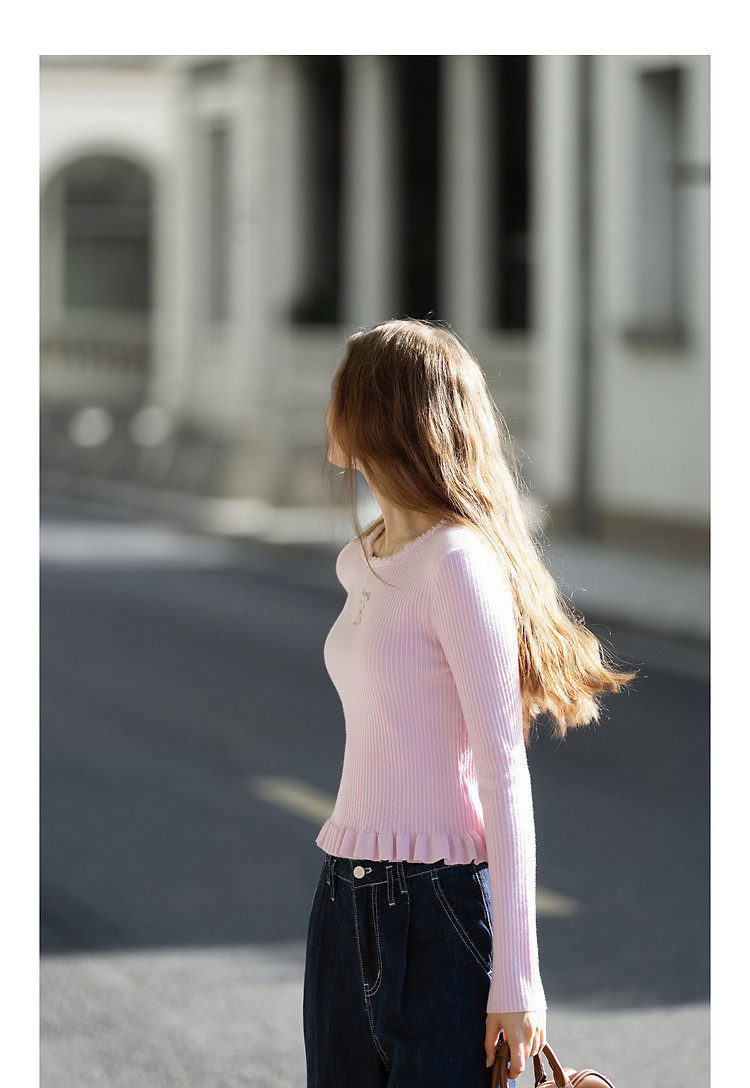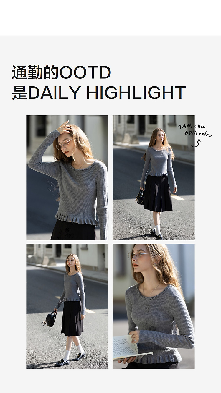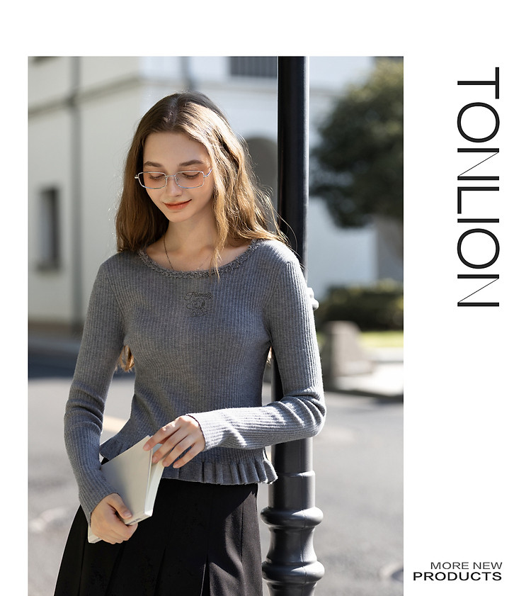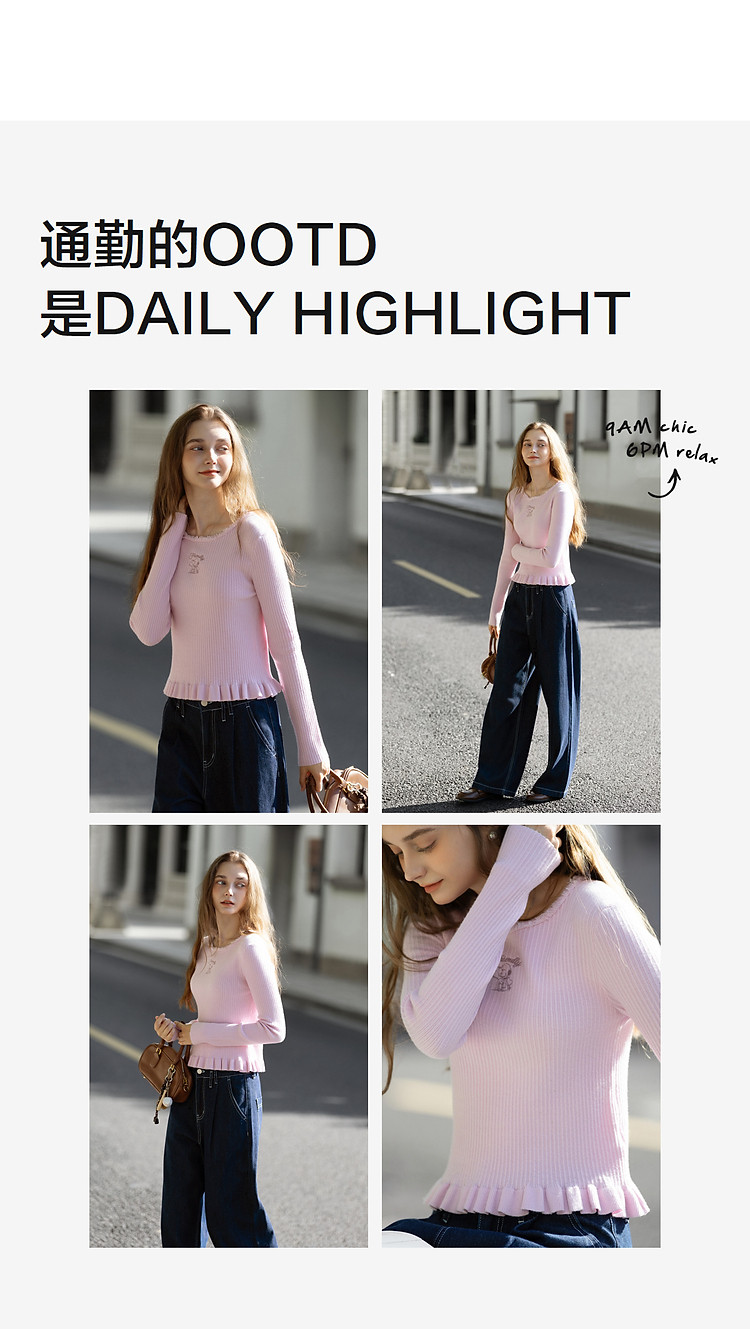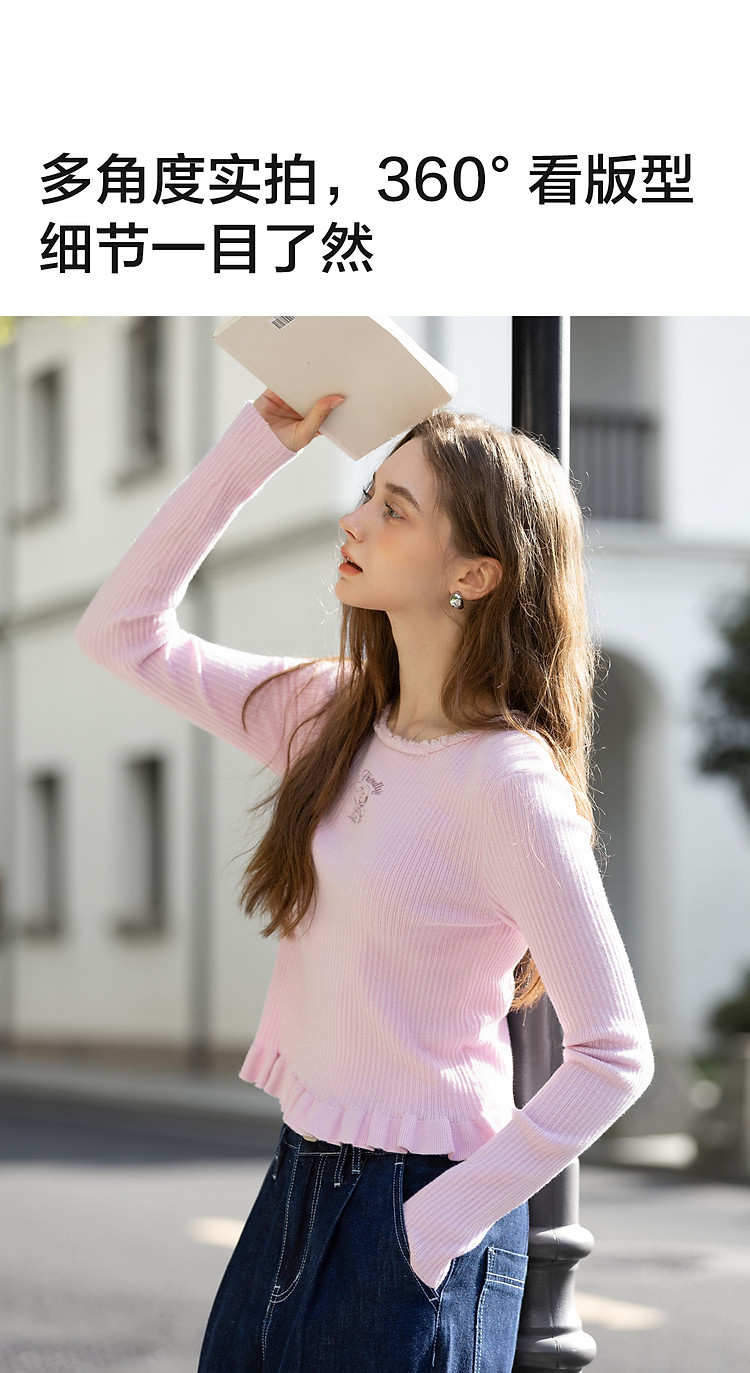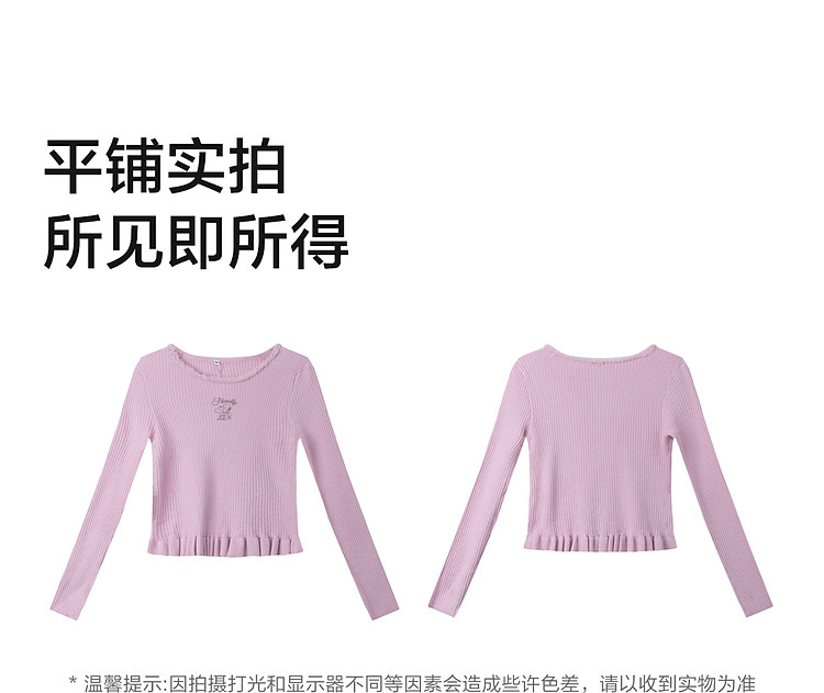 【史努比联名款】唐狮2026秋冬季打底衫女圆领木耳花边蝴蝶结修身