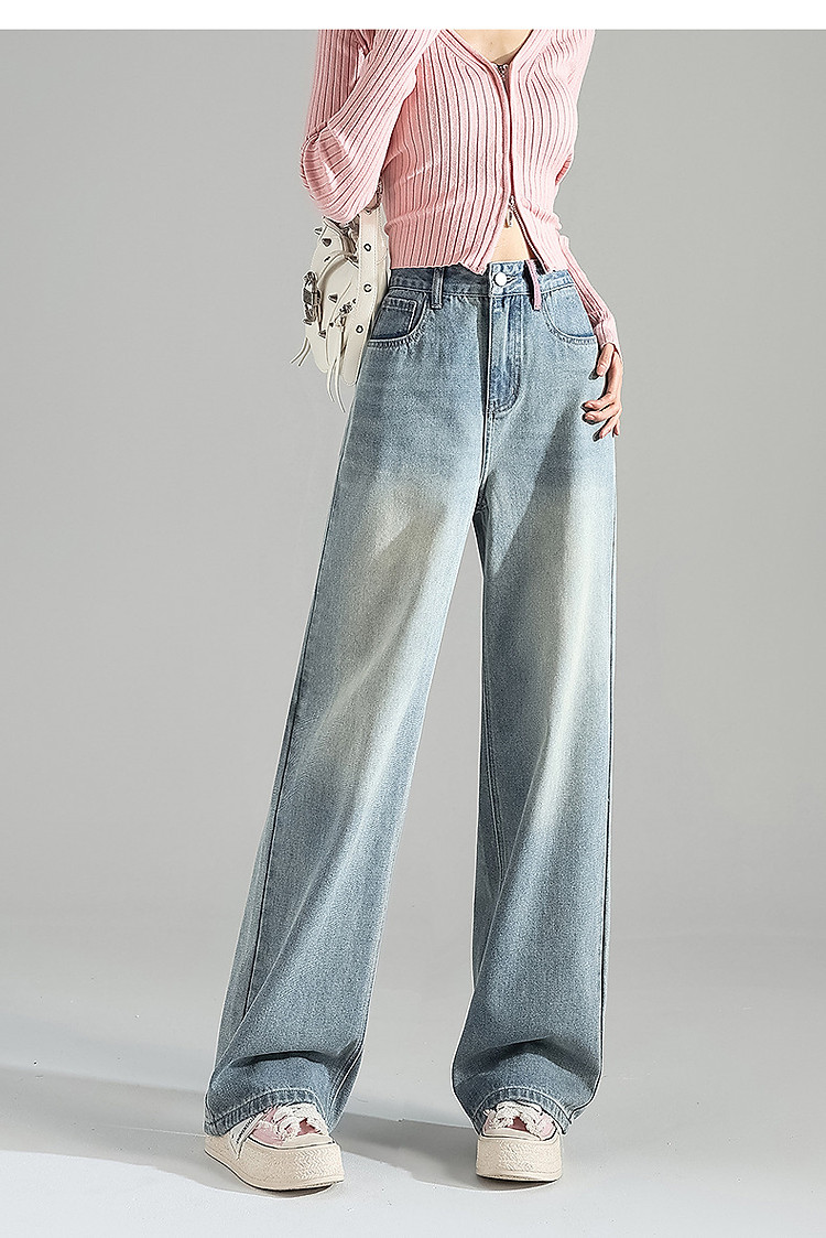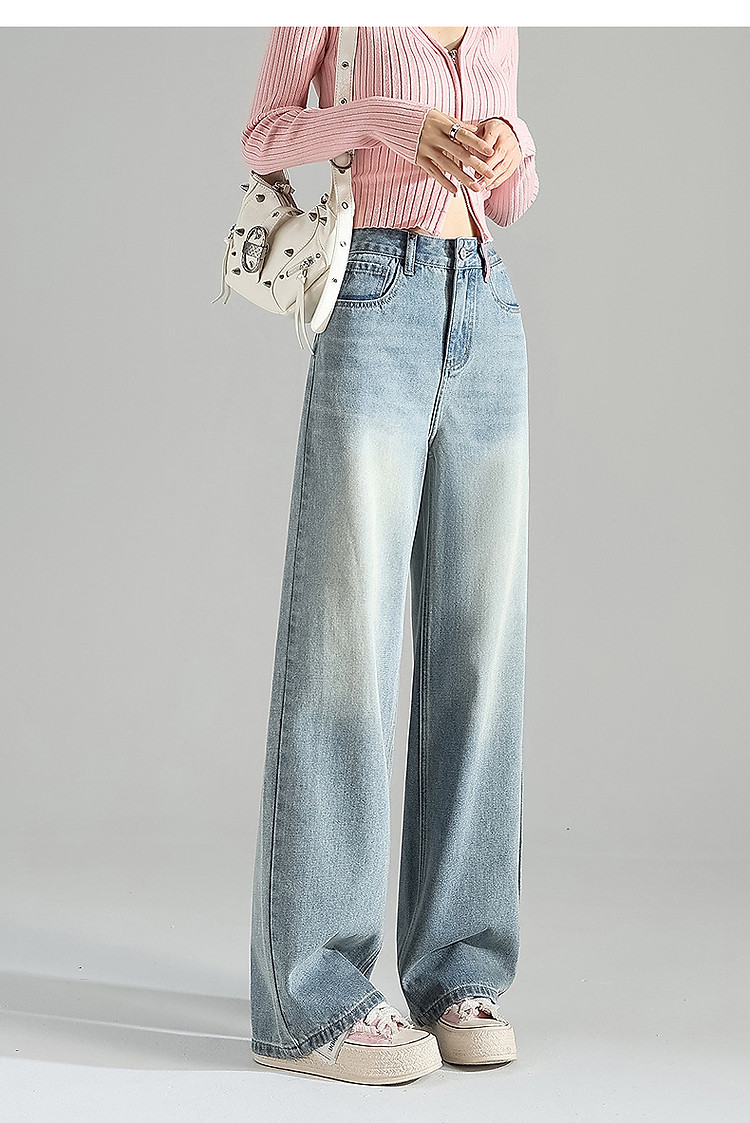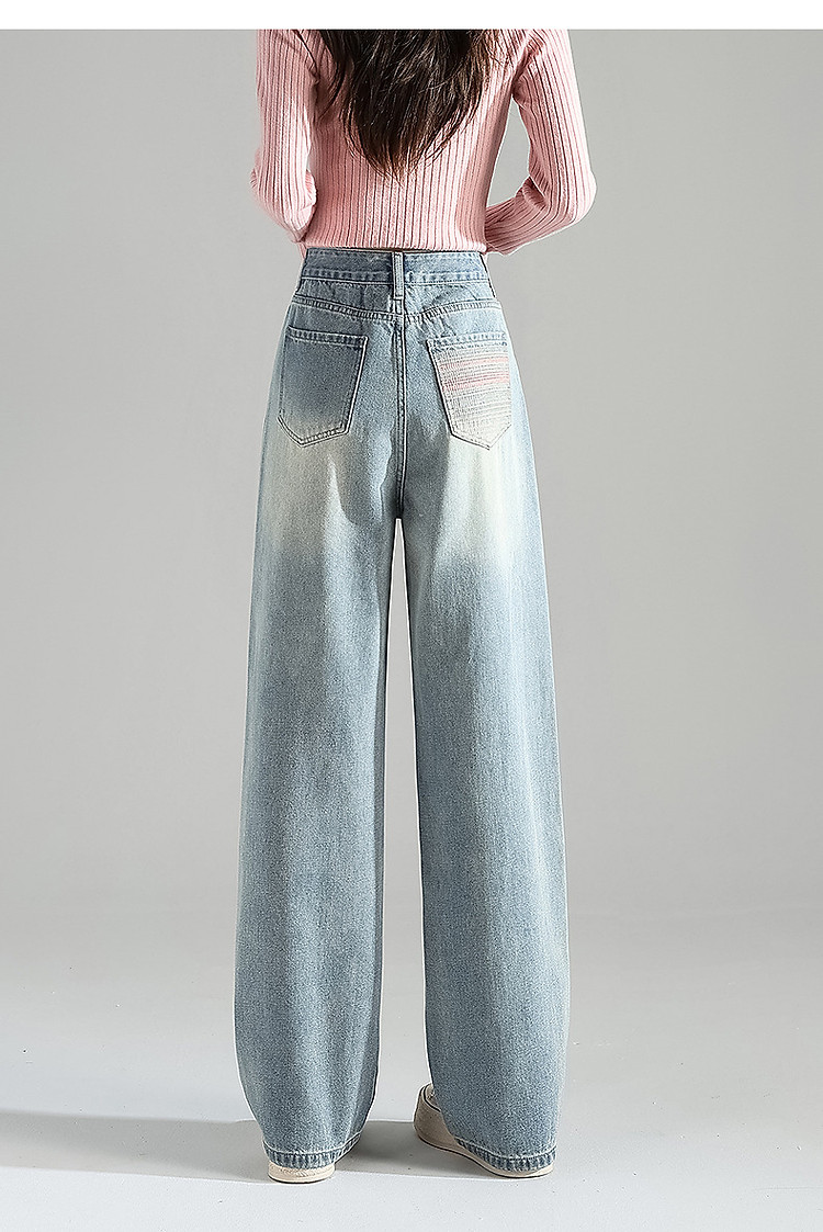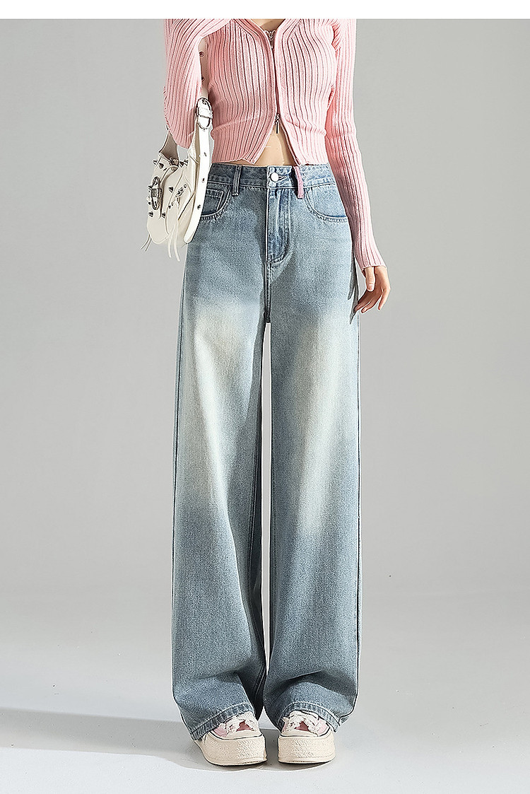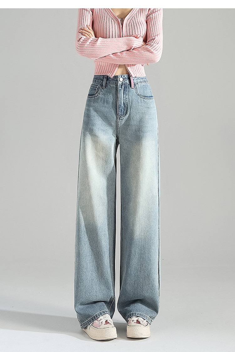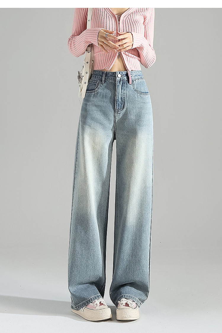 唐狮25秋冬新款女牛仔裤阔腿裤加绒宽松高腰复古裤个性时尚裤子女