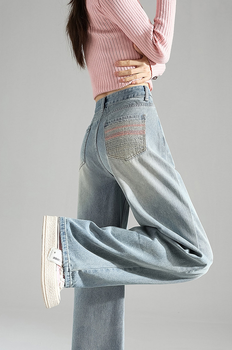 唐狮2026秋季新款女牛仔长裤宽松亮片装饰阔腿高腰显瘦裤子k1