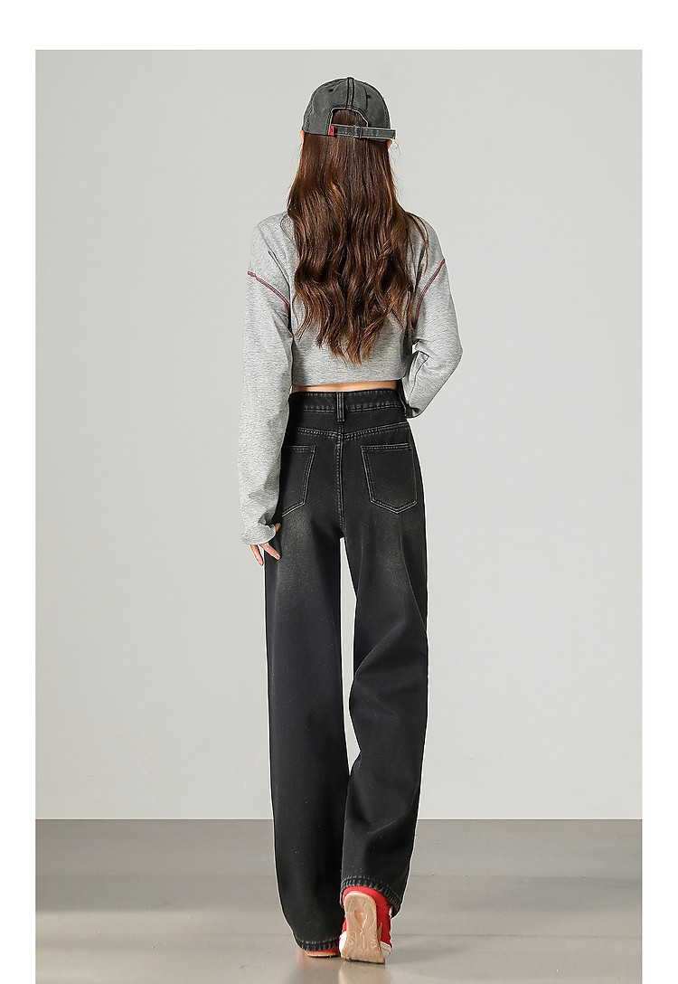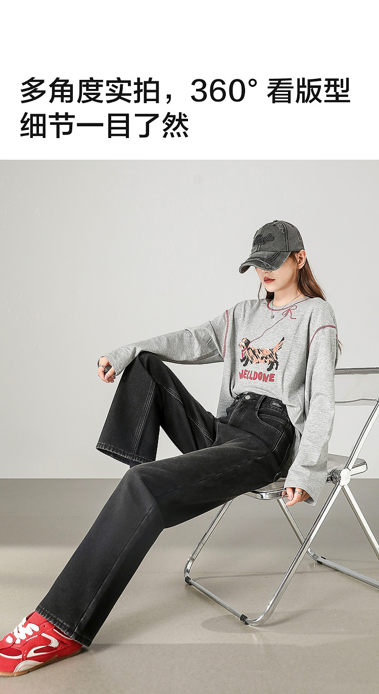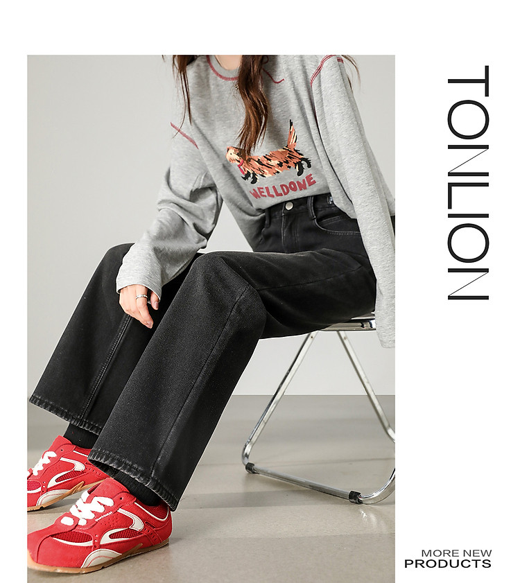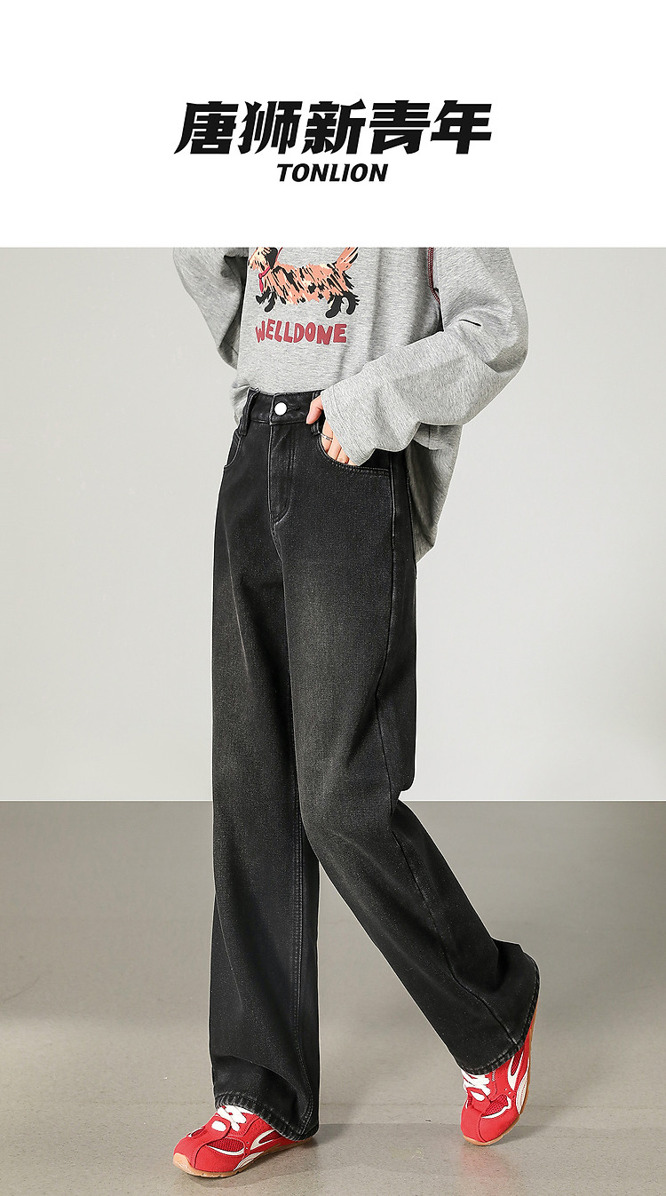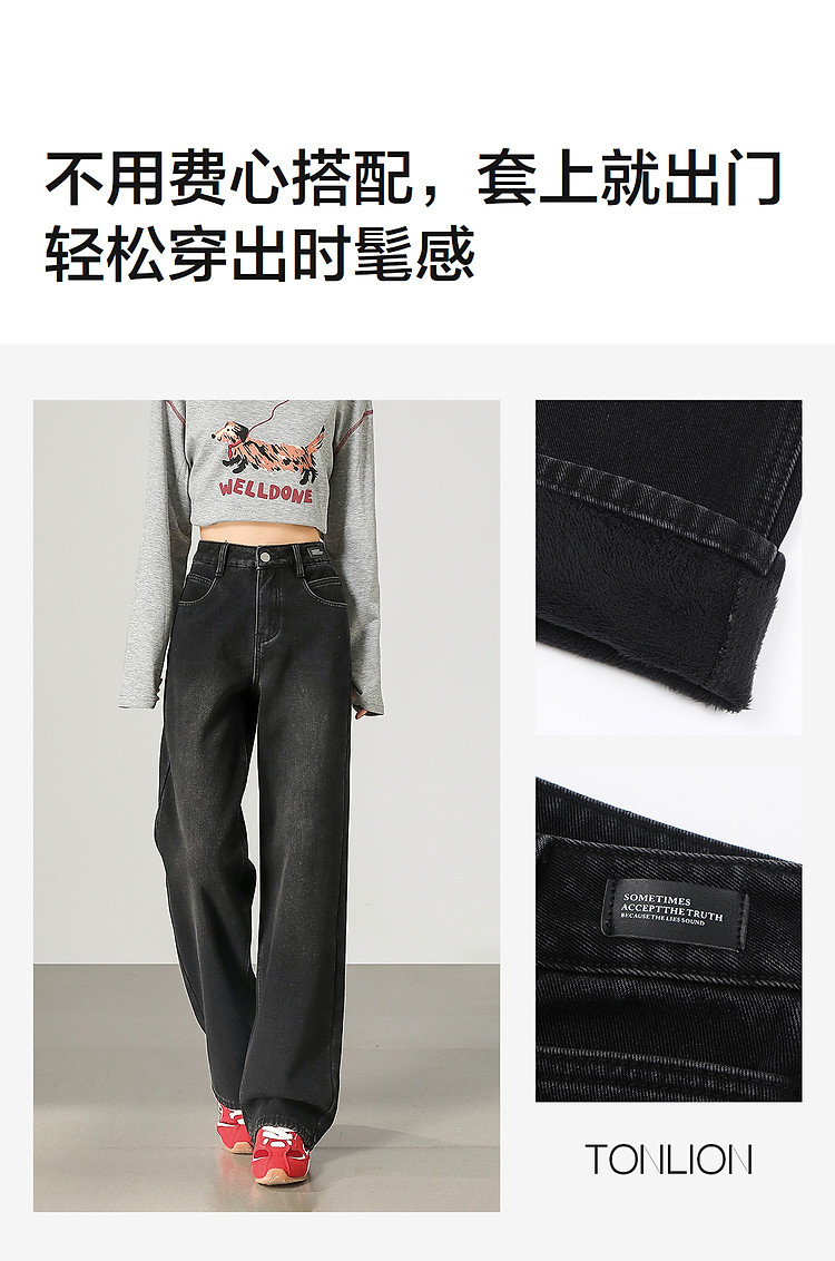 唐狮2026秋冬季直筒牛仔长裤女基础百搭加绒加厚显瘦碳黑色高级感
