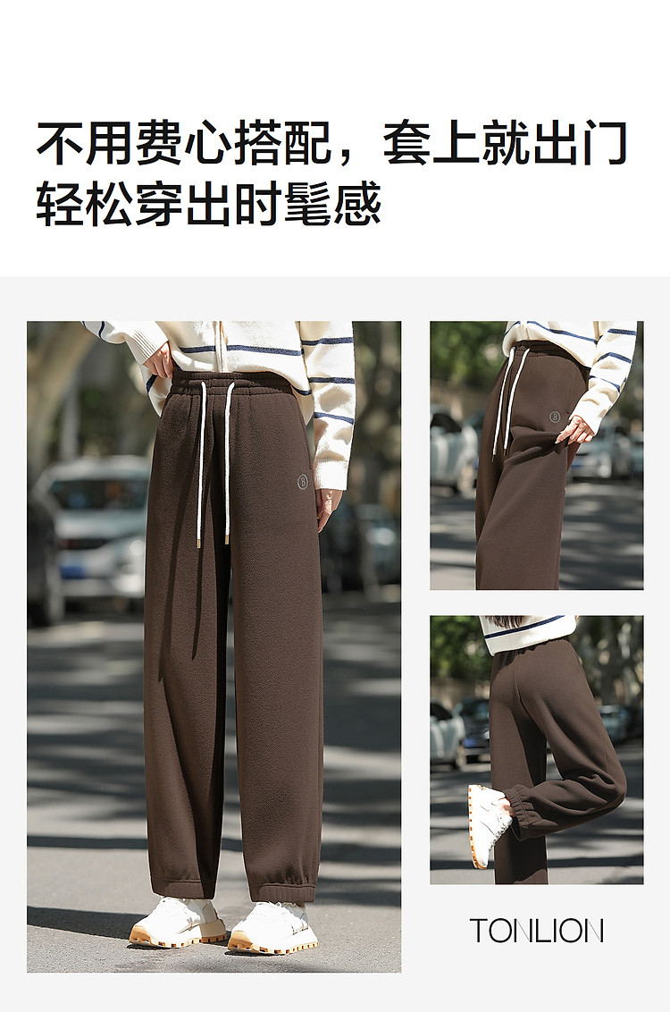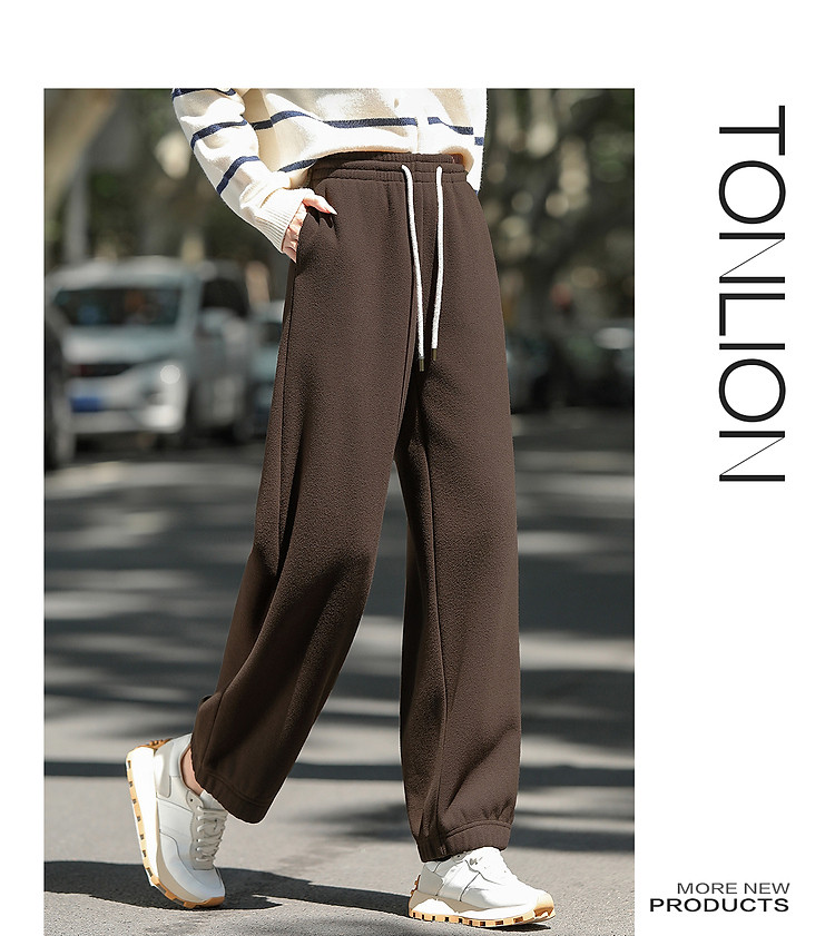 唐狮2026秋冬季女宽松休闲净色长裤加绒休闲裤直筒裤百搭女裤潮流