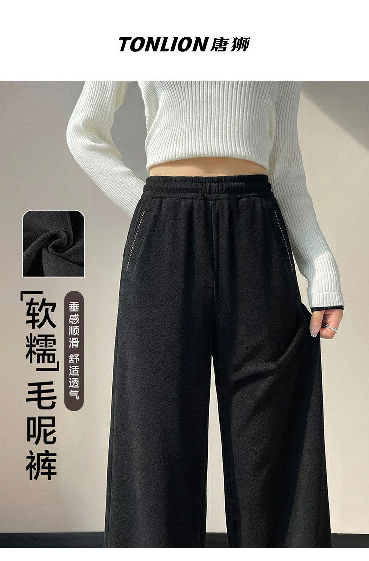 唐狮2026秋冬裤子女休闲长裤毛呢裤女秋冬高级感百搭宽松直筒裤
