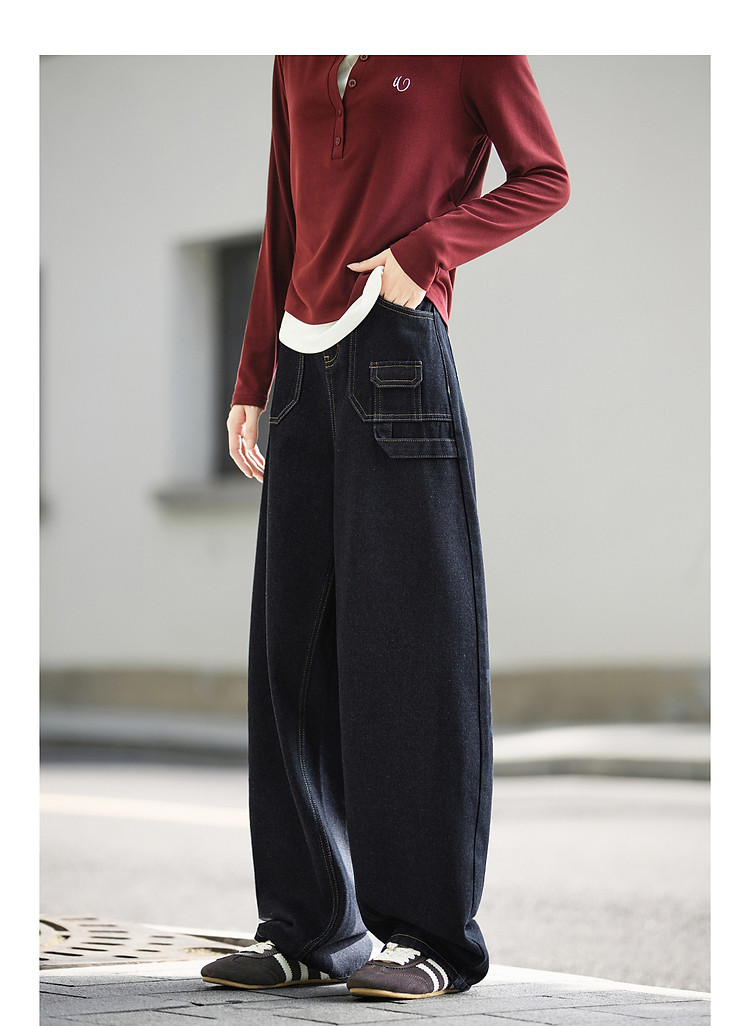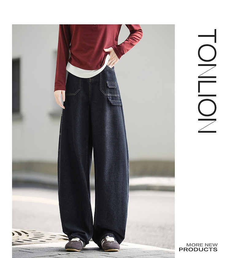 唐狮2026秋冬季女阔腿牛仔长裤宽松直筒休闲长裤百搭高级感女裤