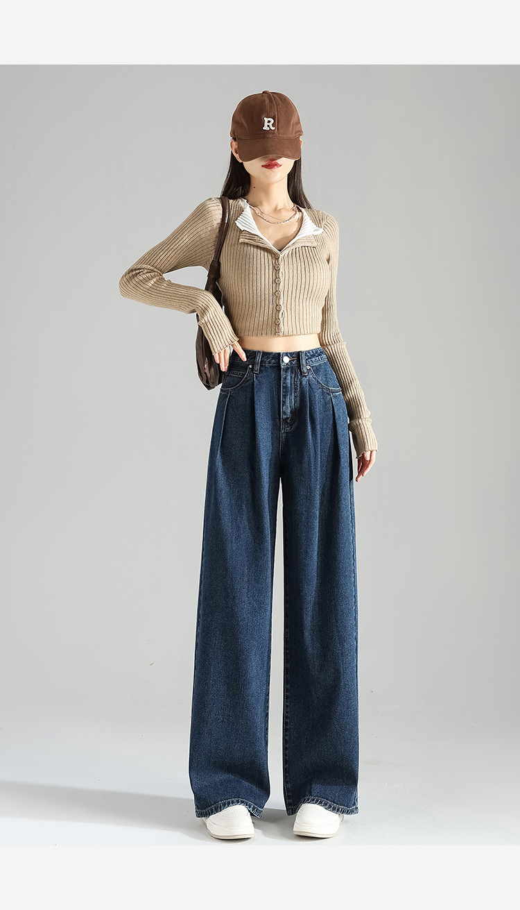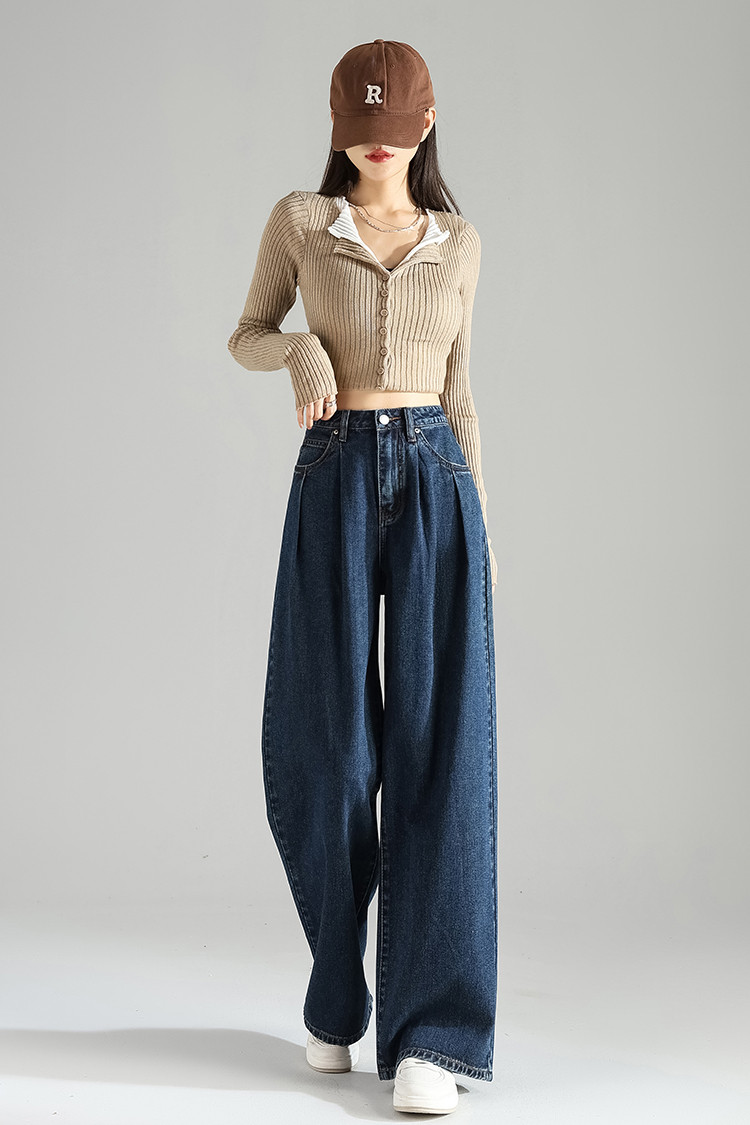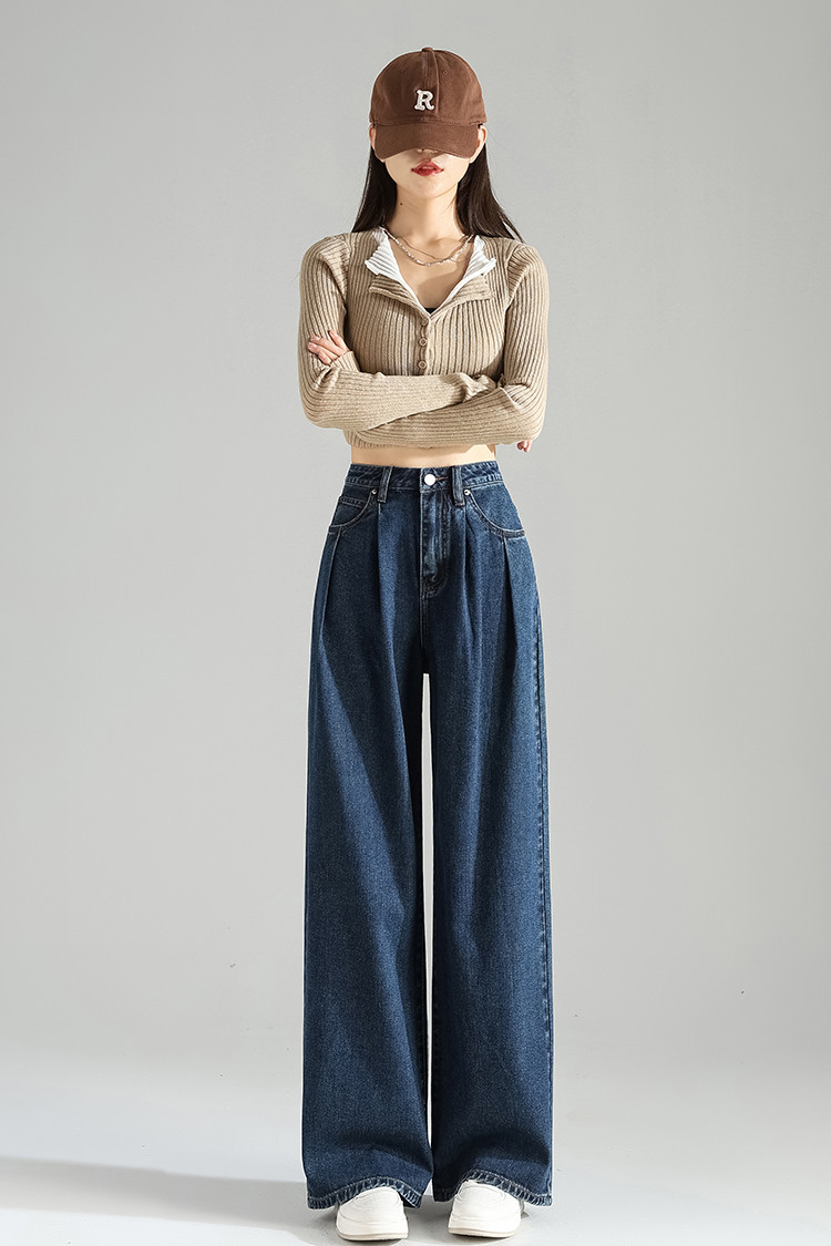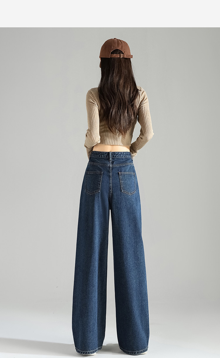 唐狮2026秋冬季女加绒阔腿牛仔裤宽松直筒牛仔长裤百搭休闲裤女裤