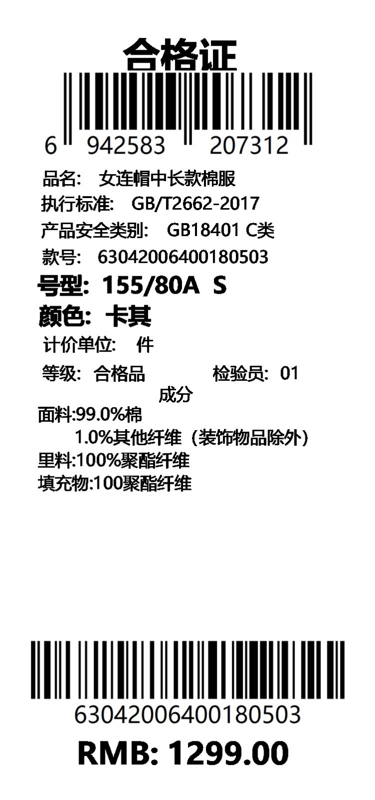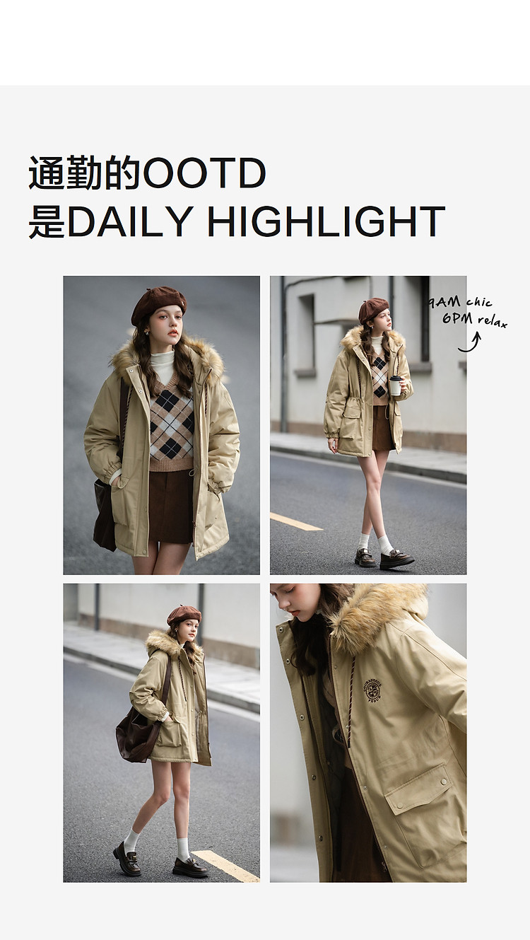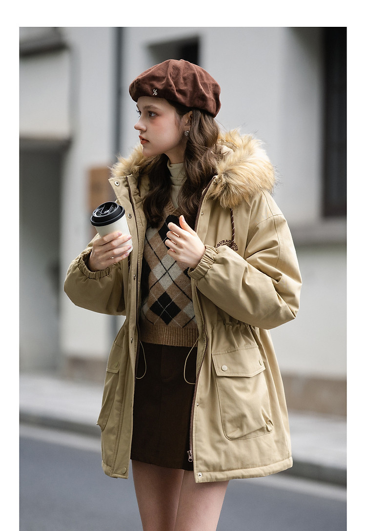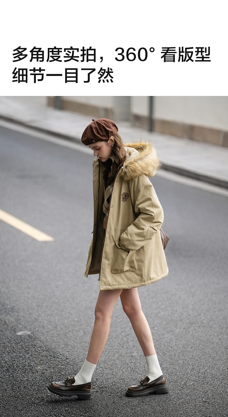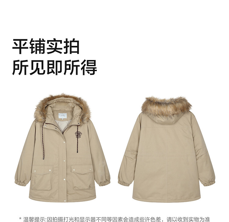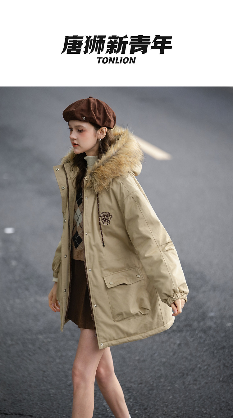 唐狮2026冬季女连帽中长款棉服卡其潮流时尚气质风衣学院风休闲