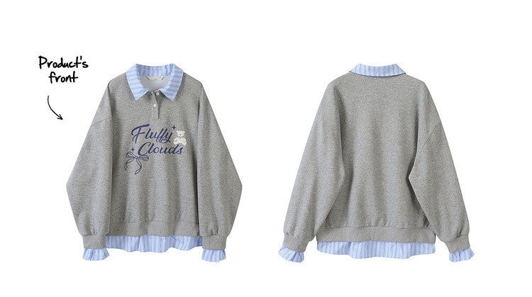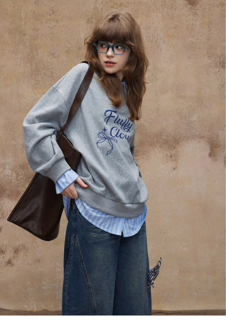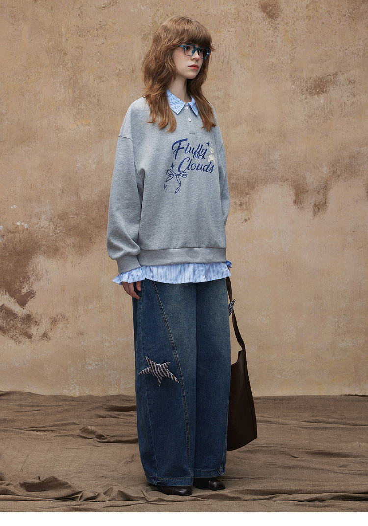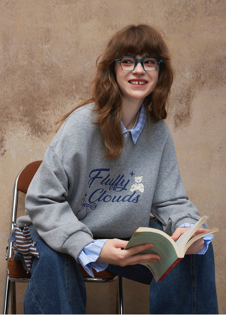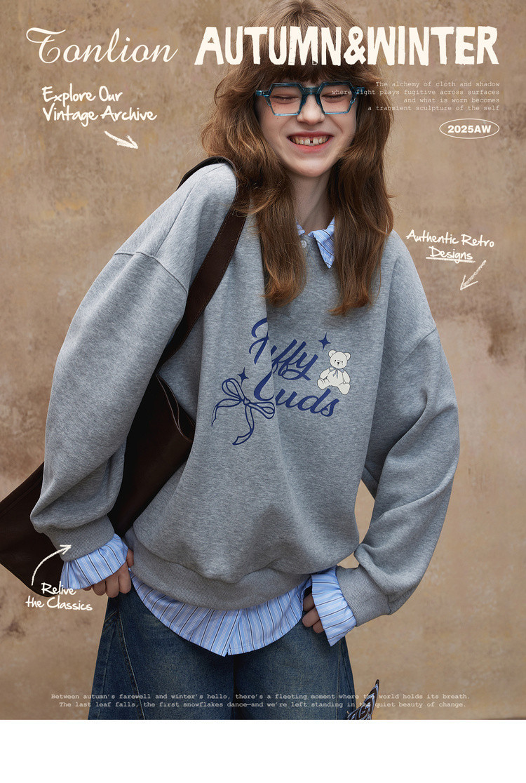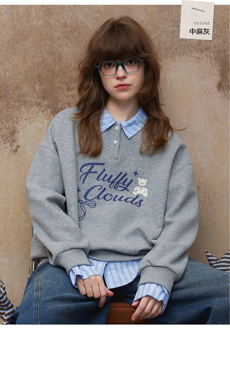 唐狮2026秋冬季卫衣女假两件翻领字母印花美式潮流时尚学生超好看