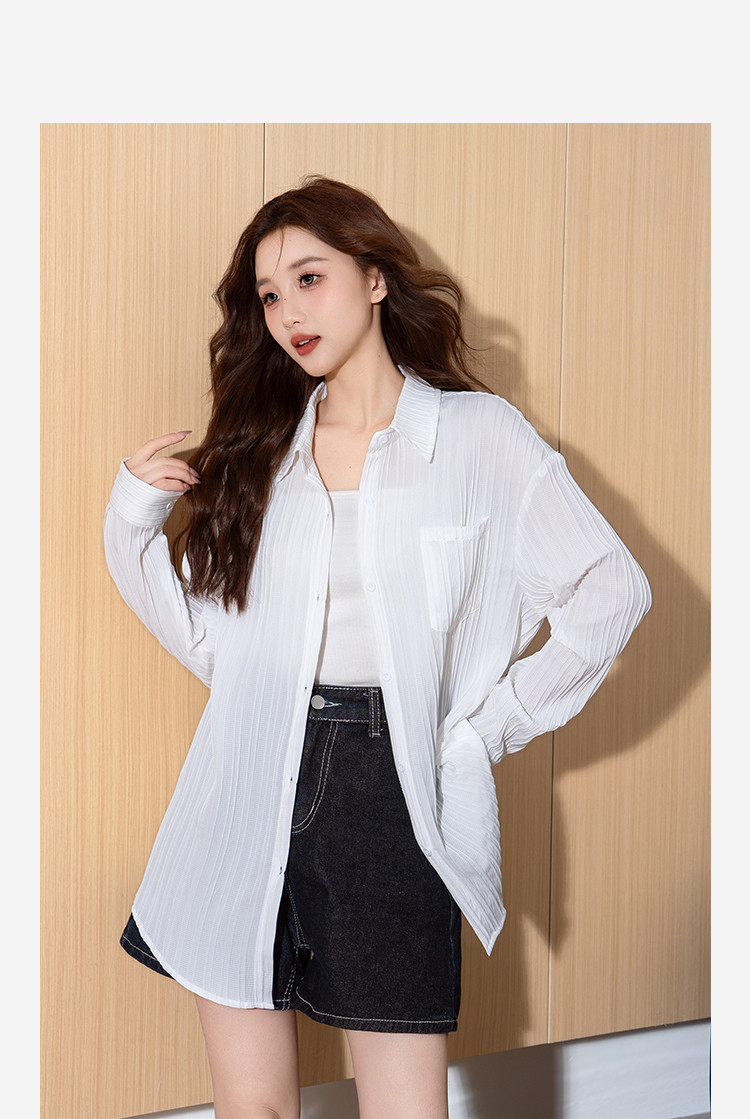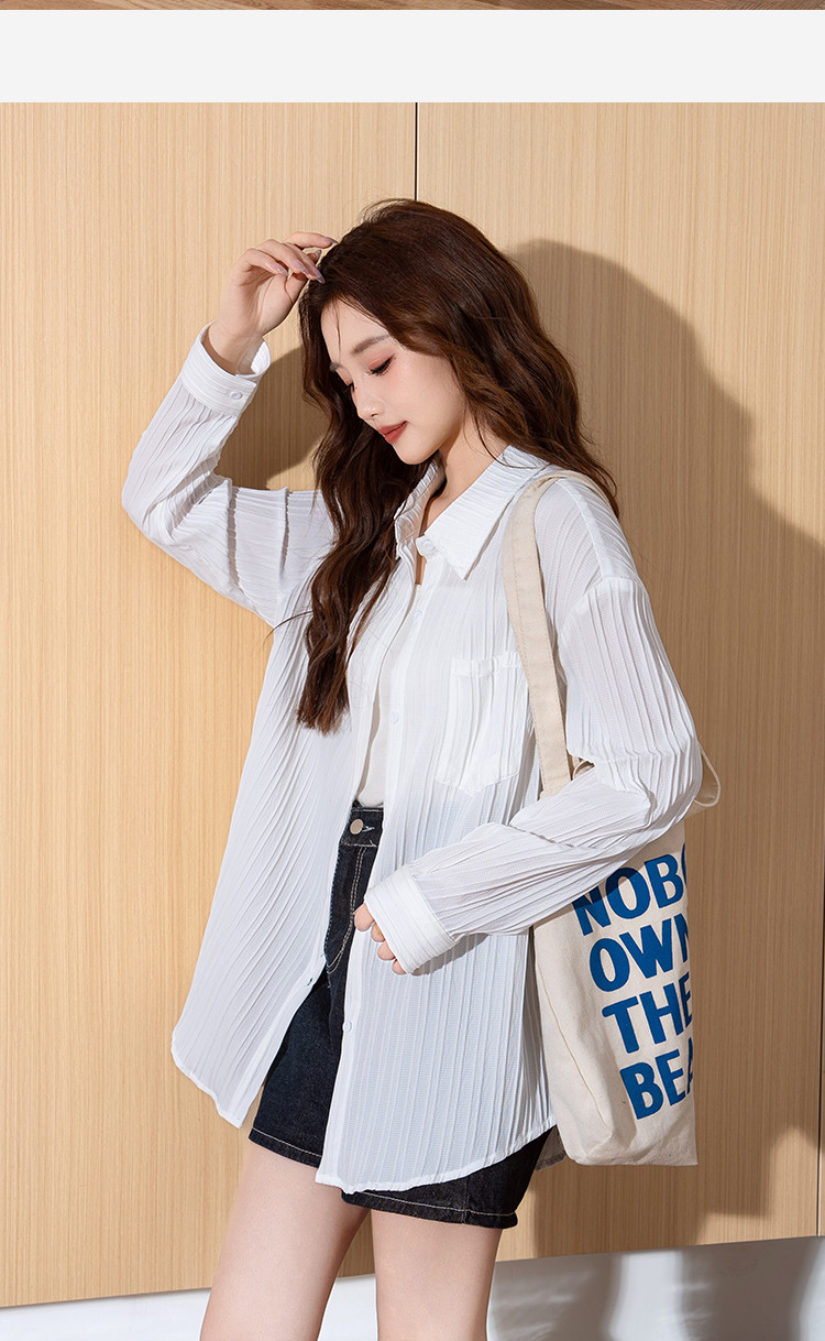 唐狮2025春季新款女长袖衬衫白色轻薄简约时尚高级感上衣宽松衬衣