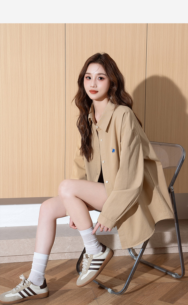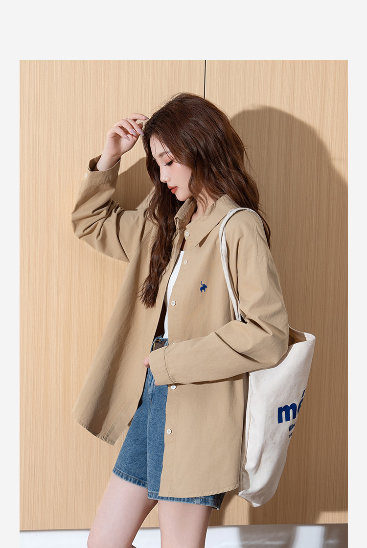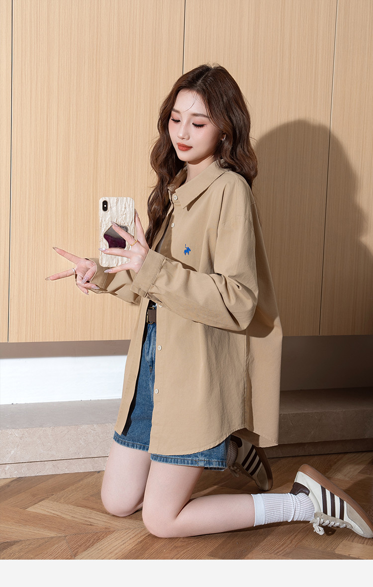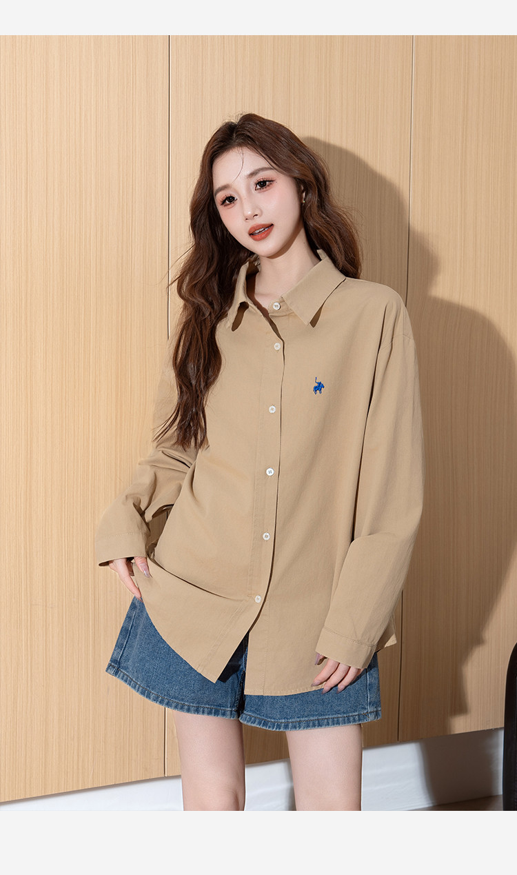 唐狮2026春季新款翻领左胸刺绣长袖衬衫女百搭休闲上衣时尚通勤