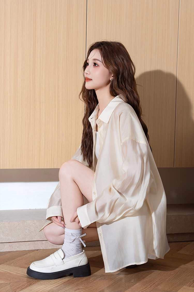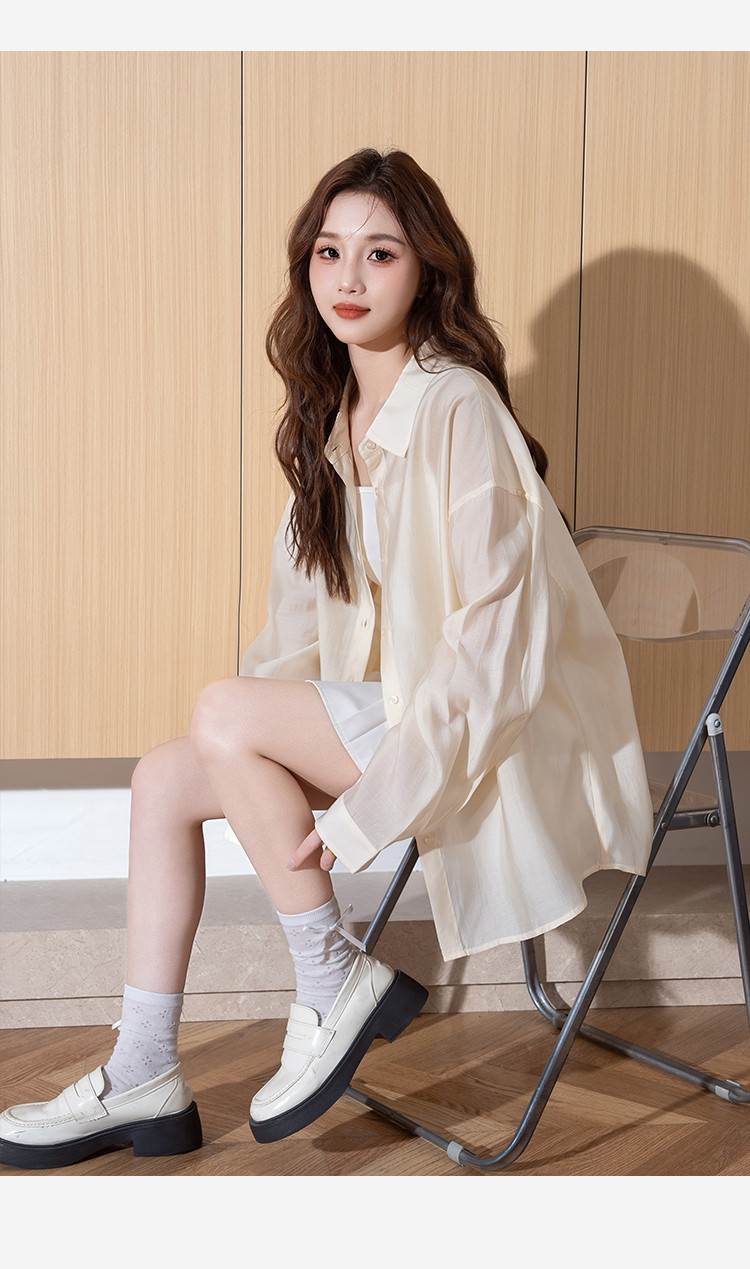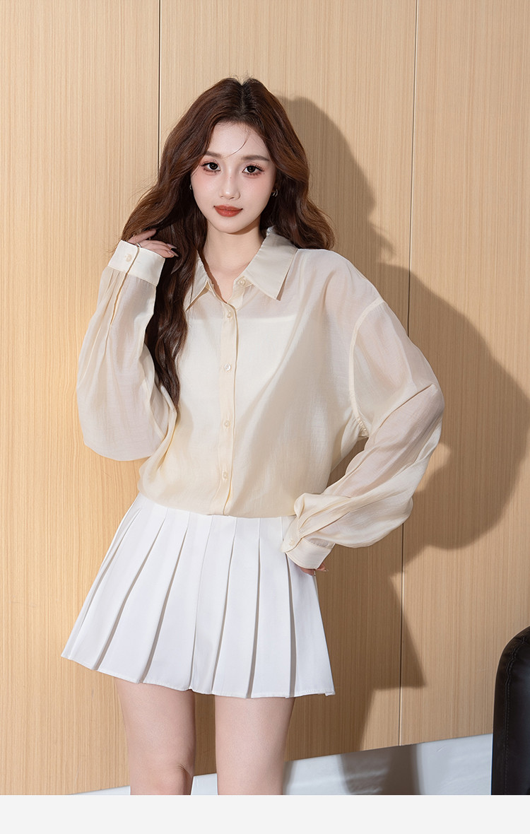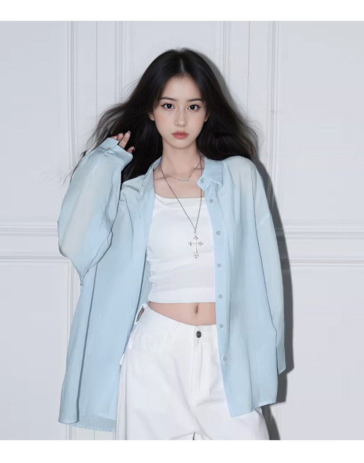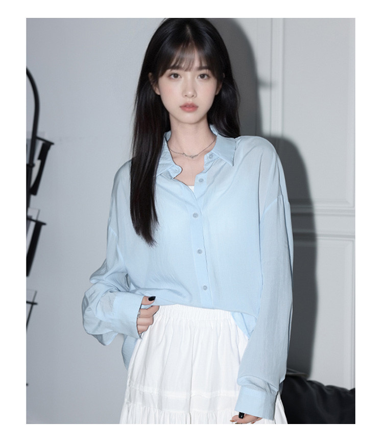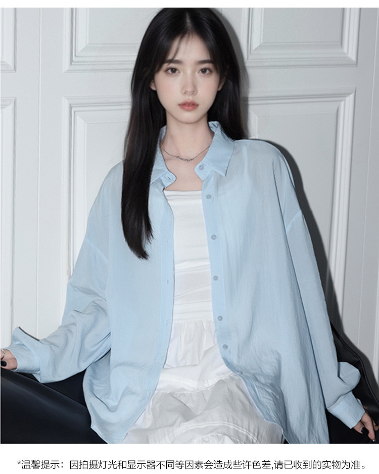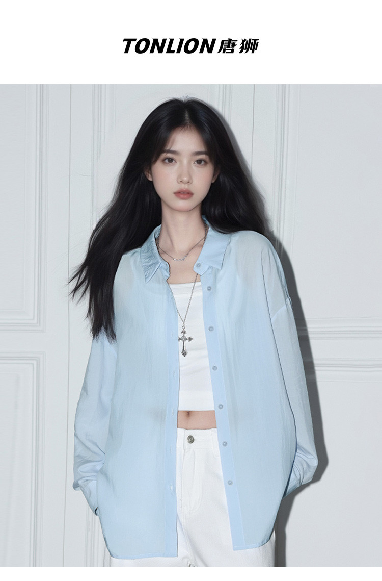唐狮2025夏季新款女翻领净色纽扣单排扣宽松韩系长袖衬衫时尚休闲