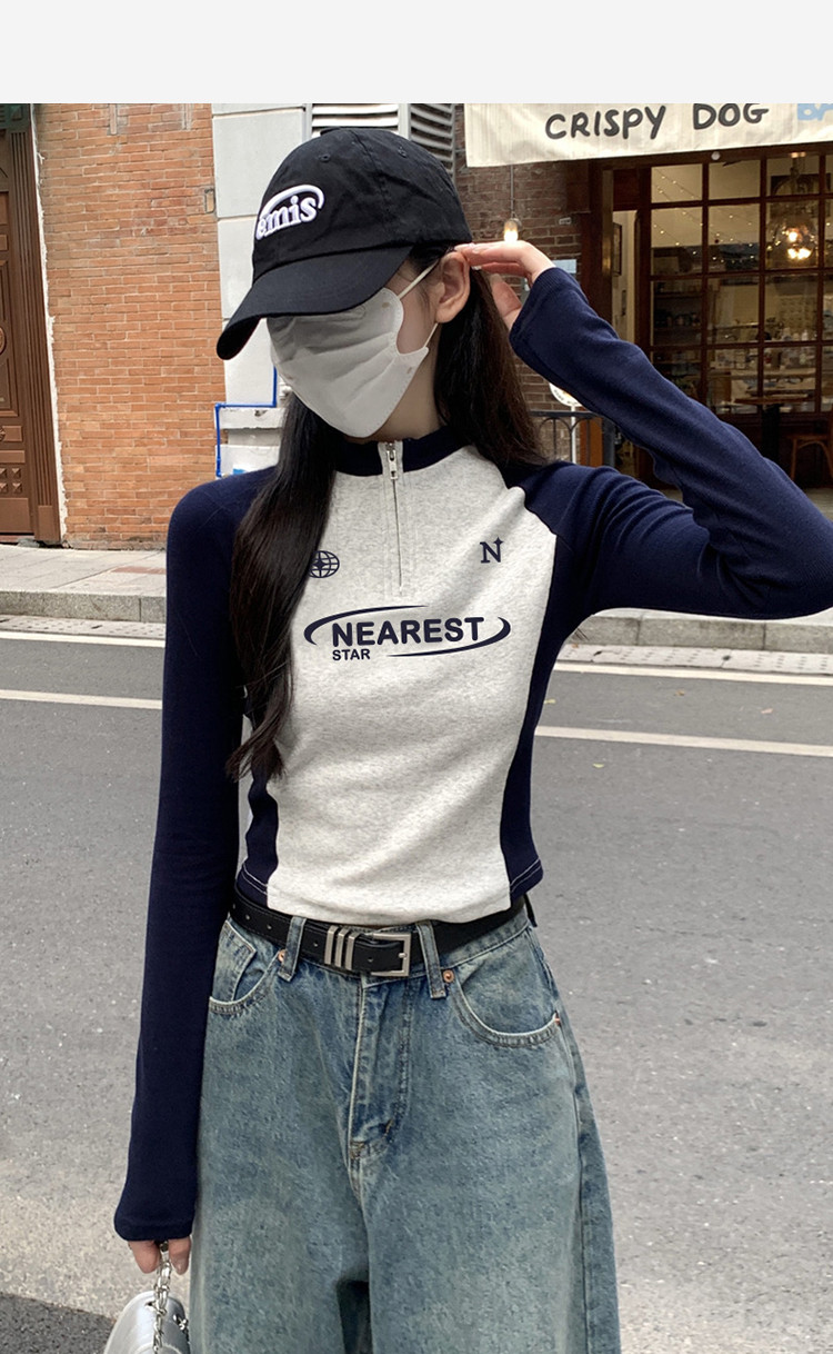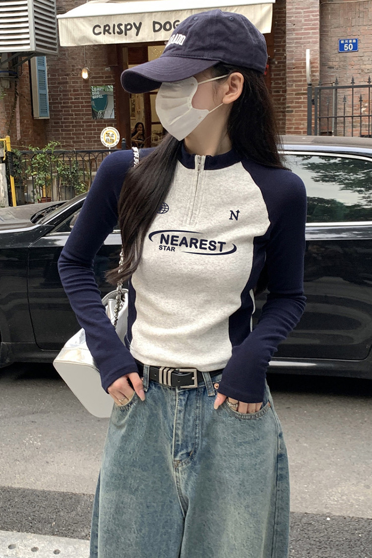 唐狮2026春季长袖T恤女立领拉链袖子拼接美式复古休闲气质高级感