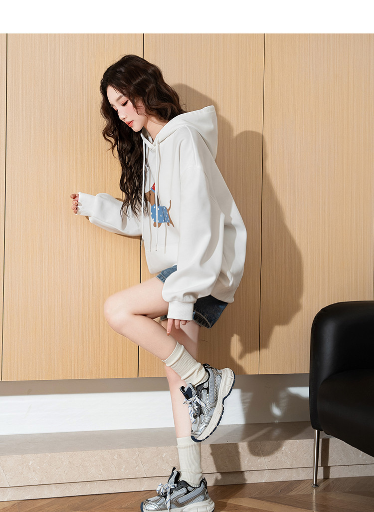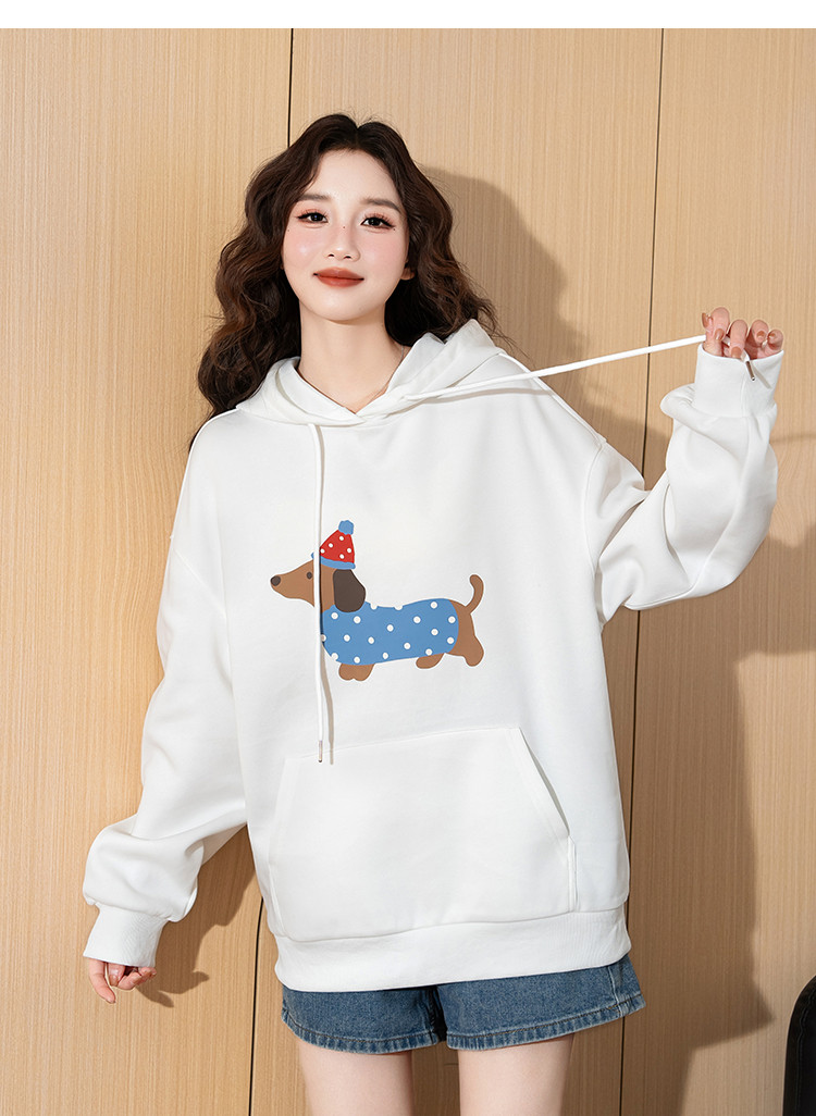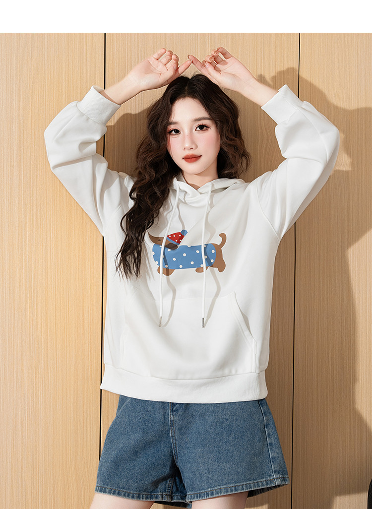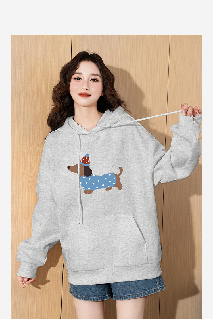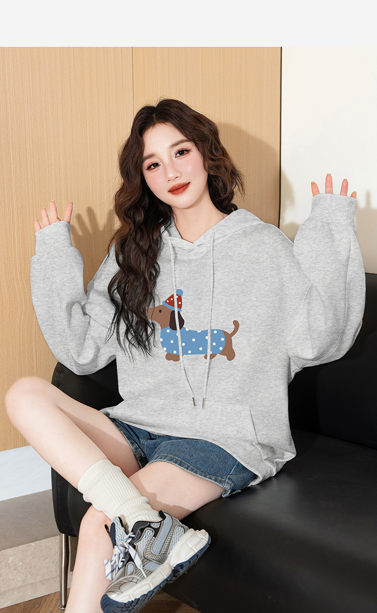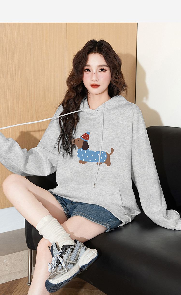 唐狮2025新款春季女连帽卫衣可爱减龄慵懒风腊肠狗休闲百搭潮流wp