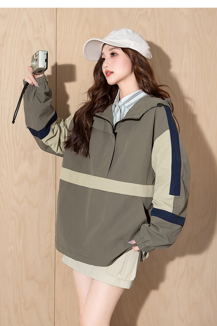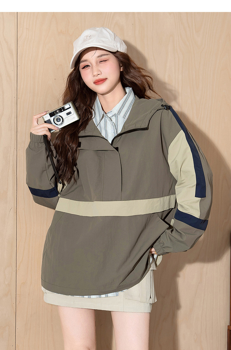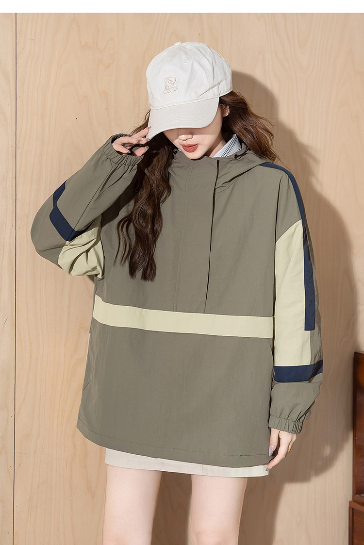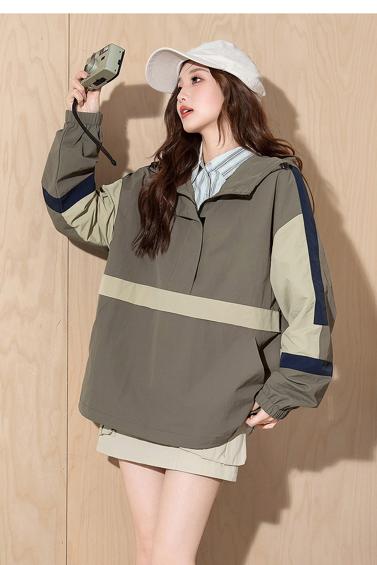 唐狮早春新款外套女连帽工装港风上衣chic撞色冲锋少年休闲k