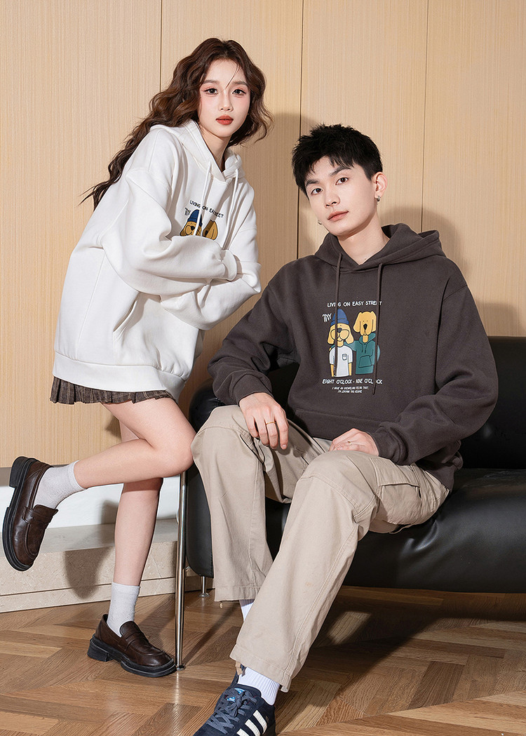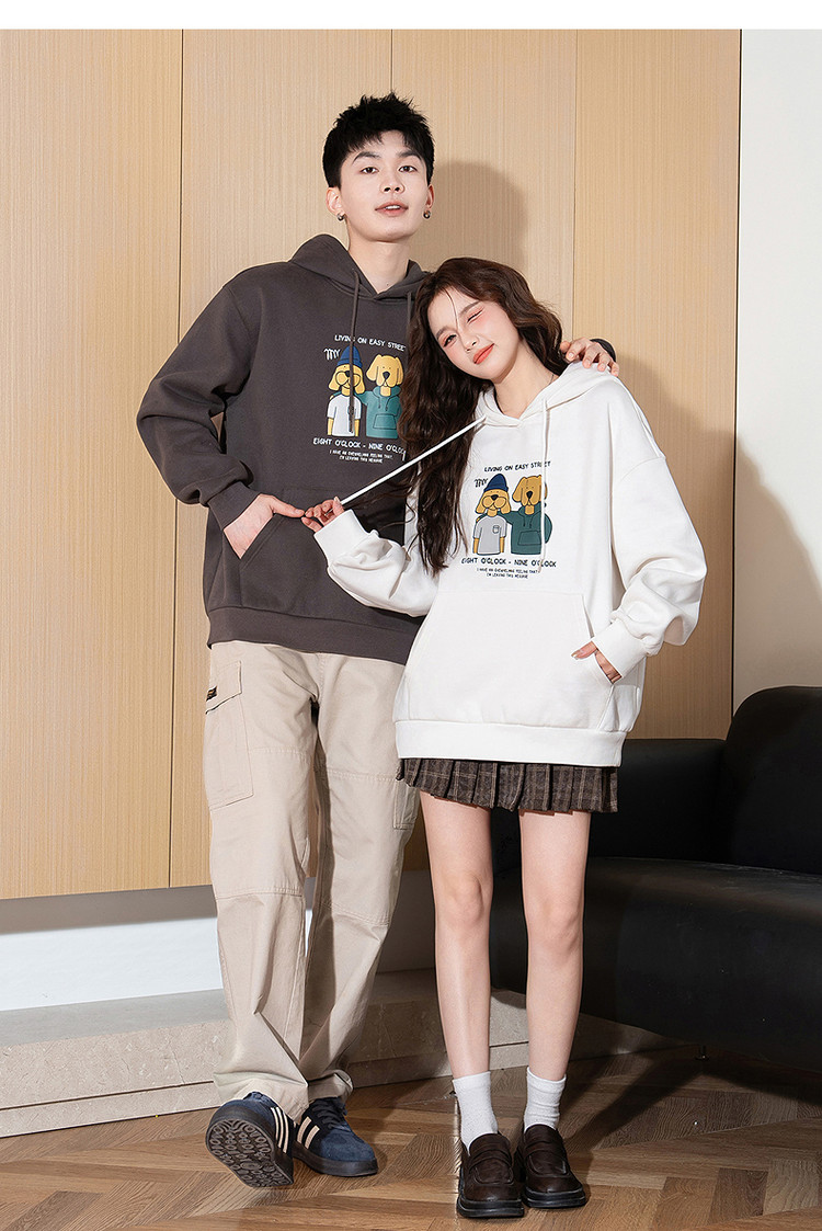 唐狮秋冬新款情侣卫衣外套保暖青少年宽松上衣连帽衫好看百搭
