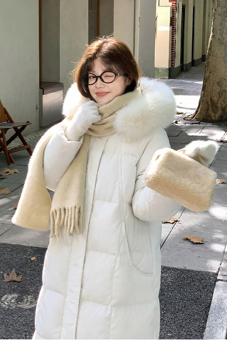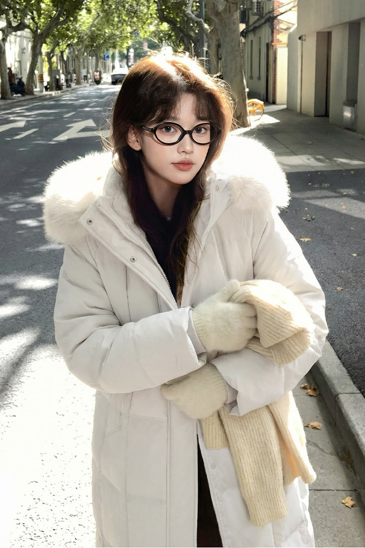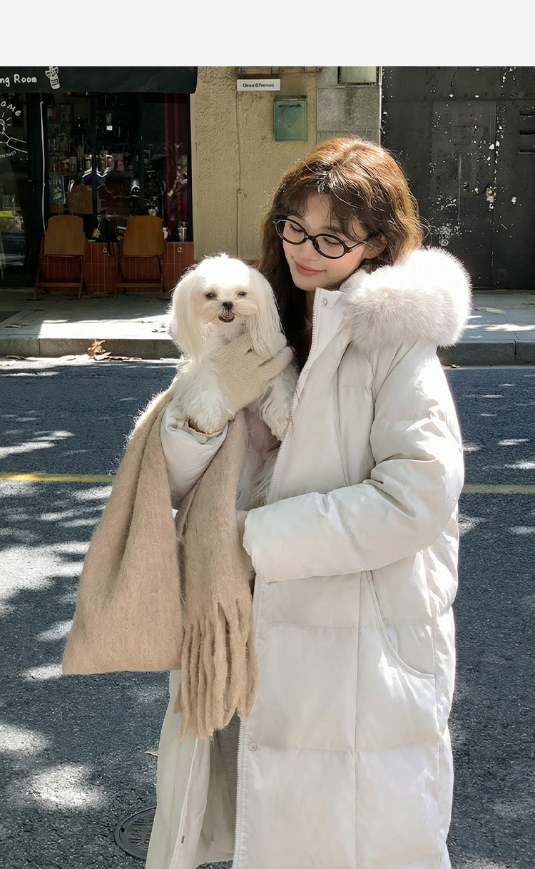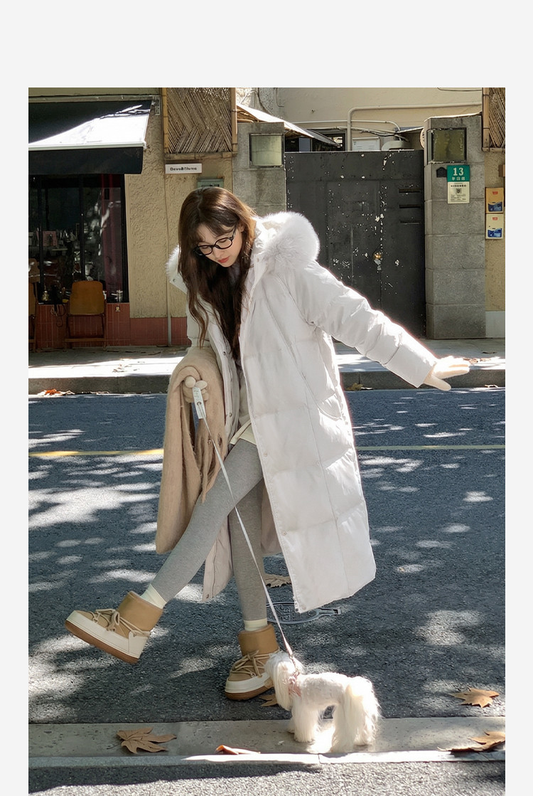 唐狮2026冬季羽绒服女长款连帽可拆卸仿真毛加厚羽绒外套温柔气质