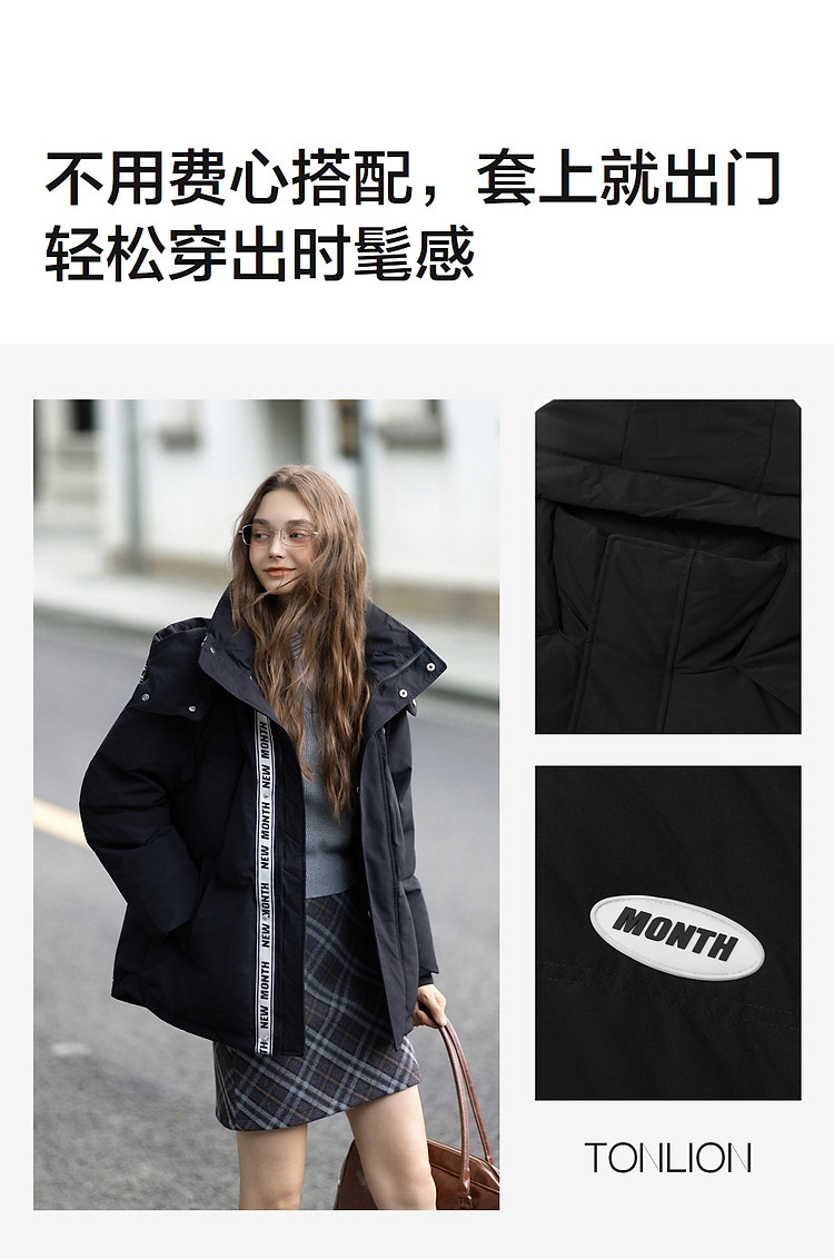 唐狮2026冬装新款女羽绒服连帽小众设计感休闲宽松短款羽绒外套