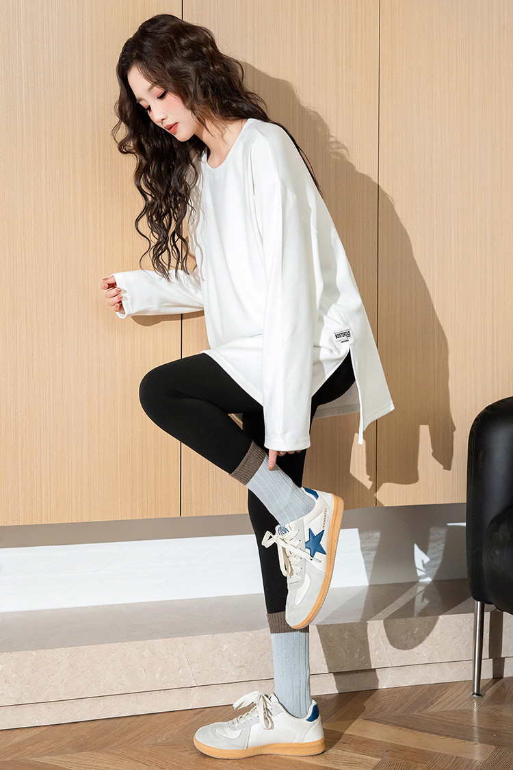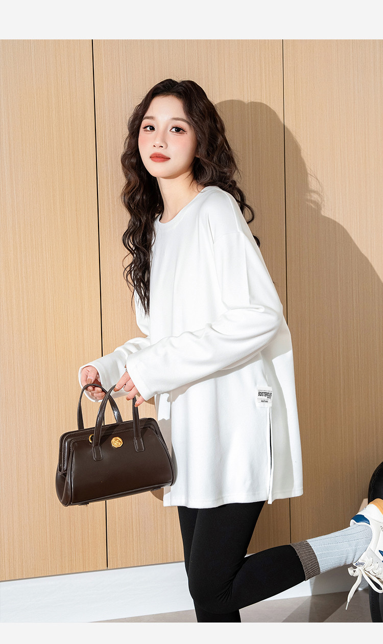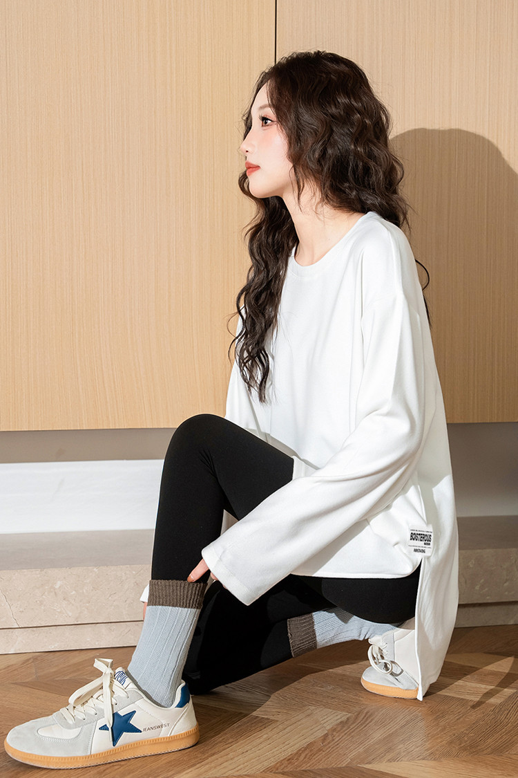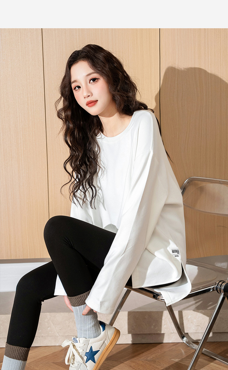 唐狮2026春秋女简约下摆开叉长袖打底衫百搭净色简约内搭高级感