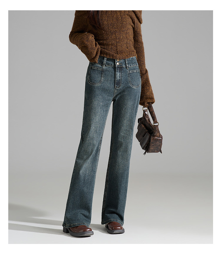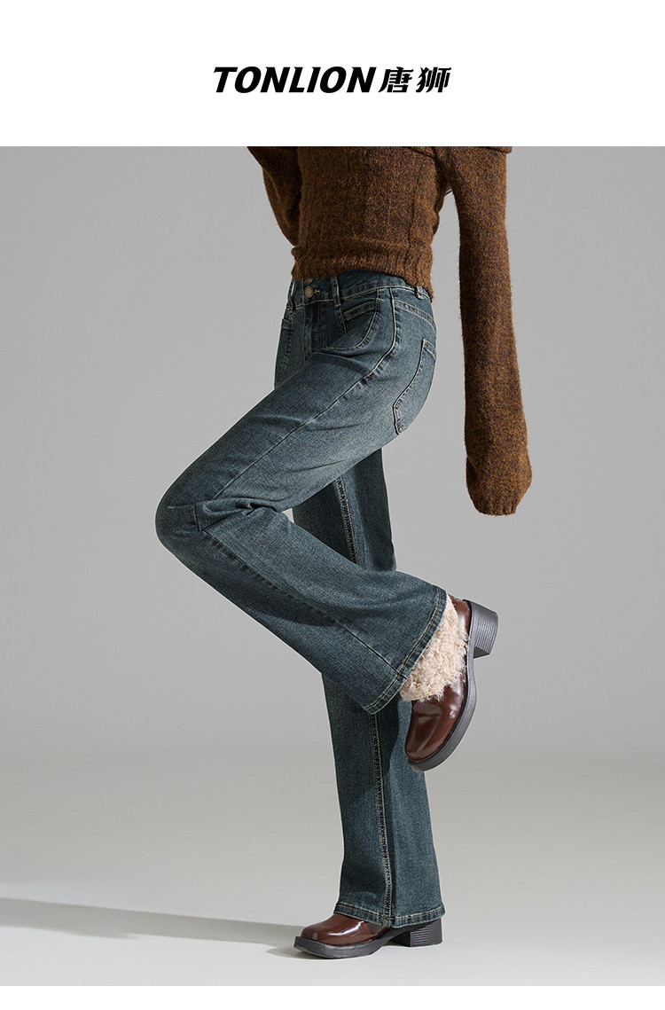 唐狮2026秋季新款女牛仔裤遮肉显瘦高腰微喇叭裤减龄韩版拖地裤