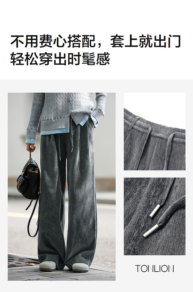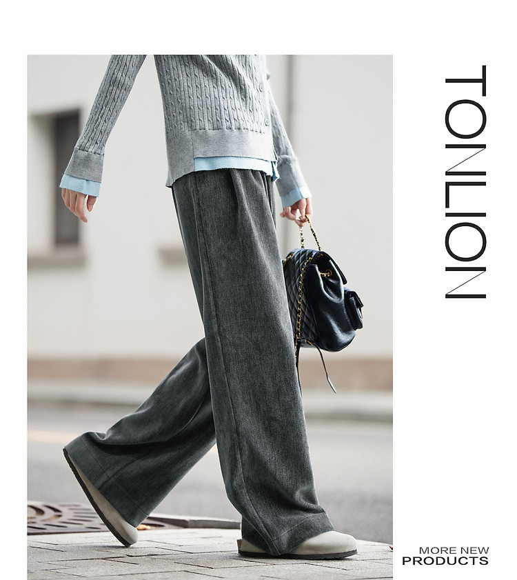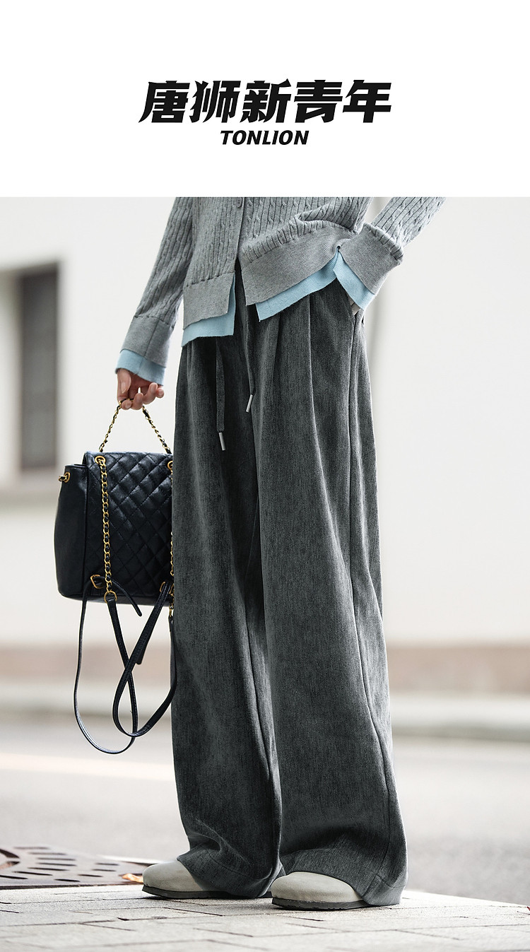 唐狮2026秋冬季休闲长裤女渐变丝绒长裤阔腿直筒裤百搭宽松休闲
