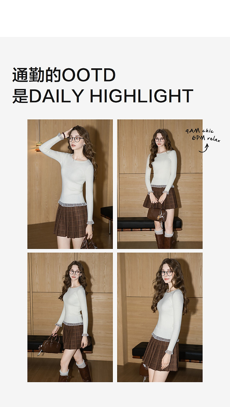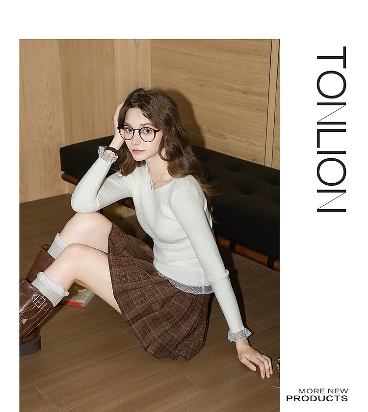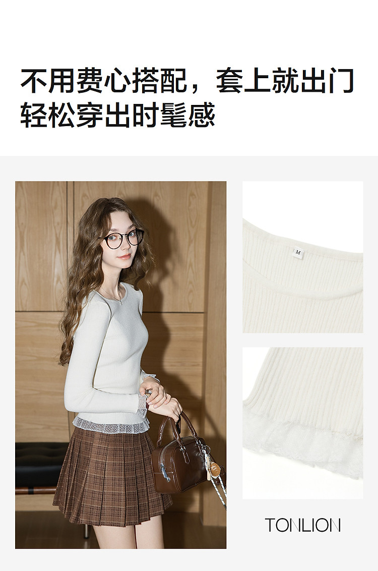 唐狮2026秋冬毛织打底衫女女圆领净色蕾丝秋冬可外穿高级感洋气