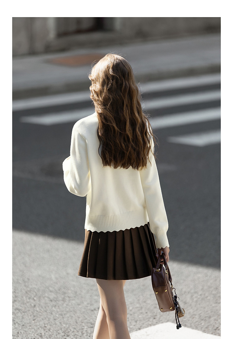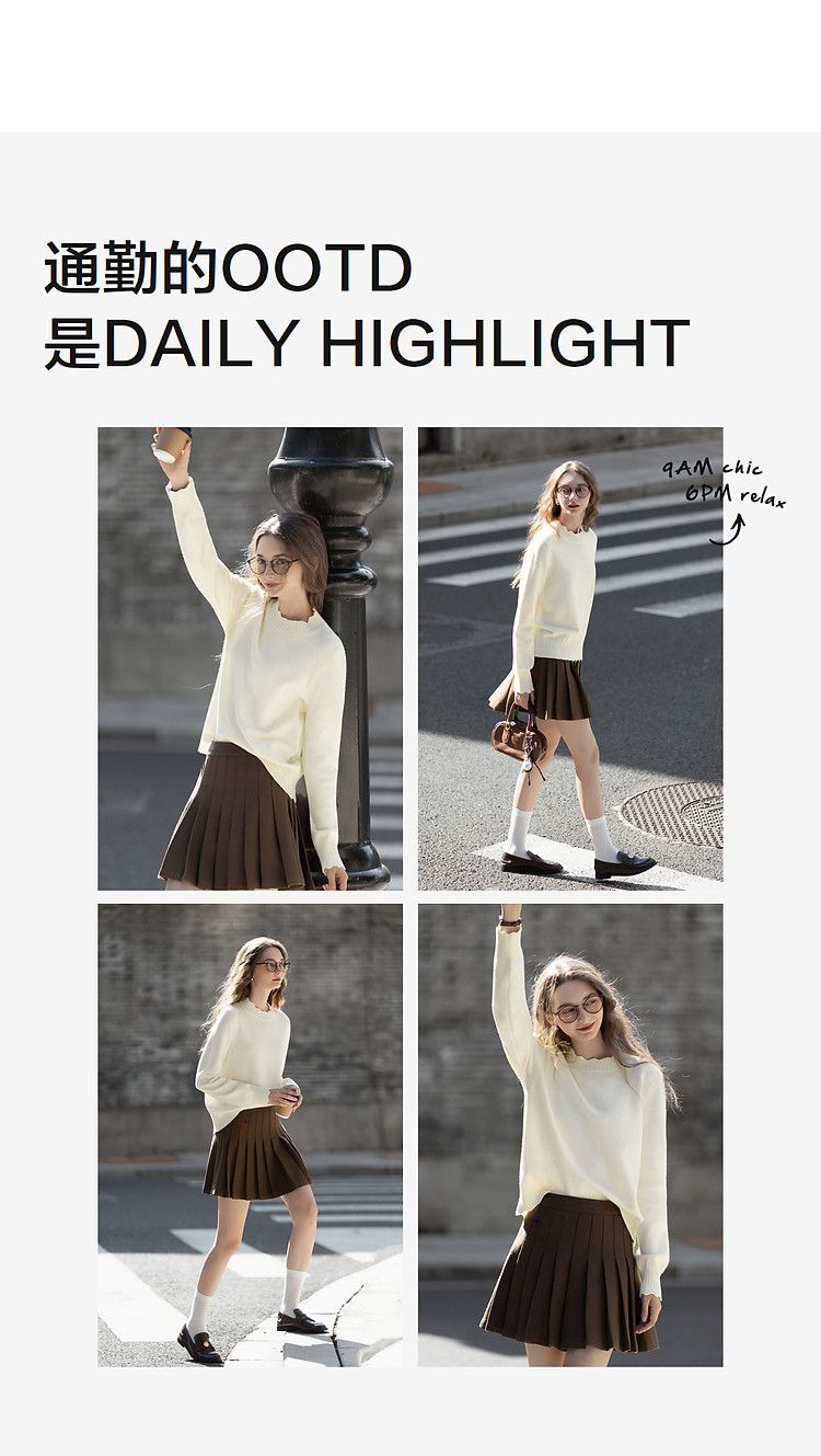 【关晓彤同款】唐狮2026秋冬舒适精致女木耳花边长袖短款连衣裙
